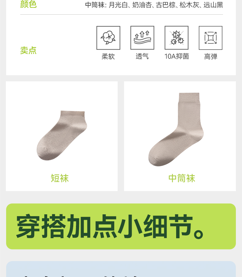 「棉的美学」 10A抗菌防臭男款袜子~四季款长\短袜棉质吸汗运动