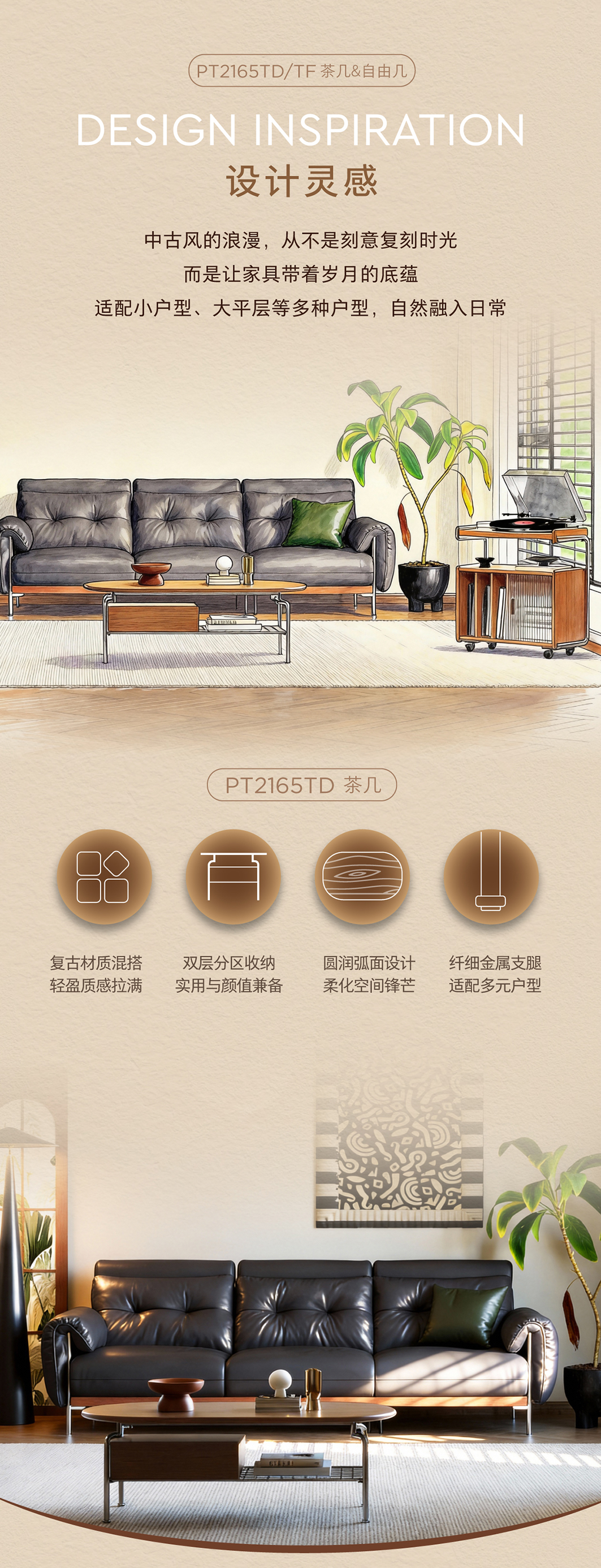 顾家家居整装 中古风 茶几自由几PT2165TD/TF