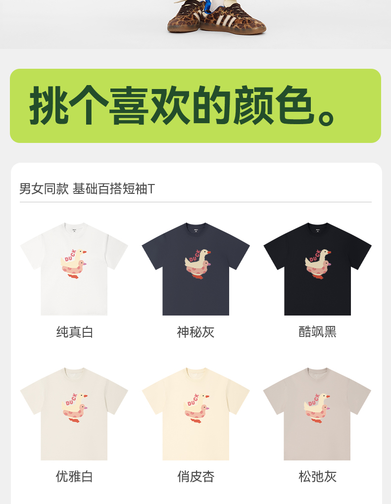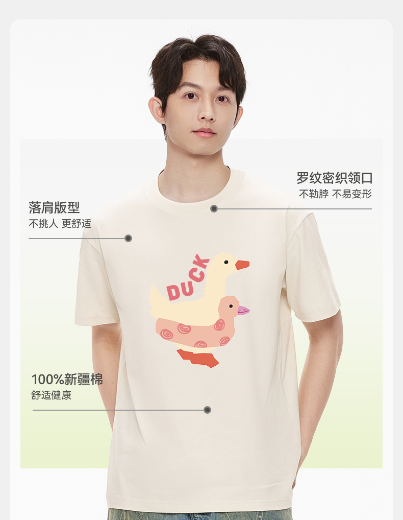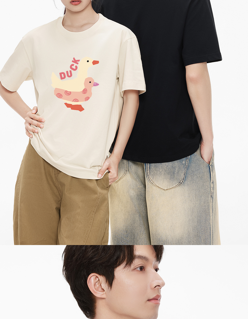 「棉的美学」趣味小鸭子印花短袖T恤230纯棉小众百搭休闲潮流上衣