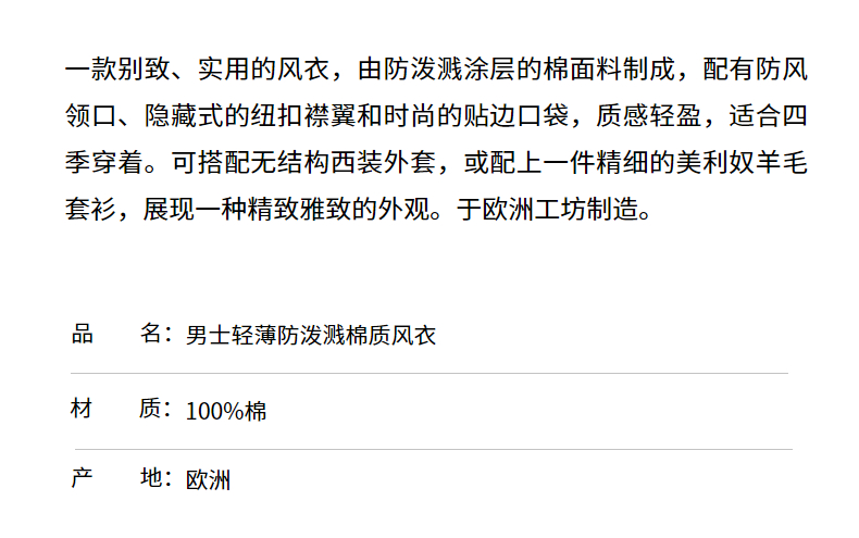 SUNSPEL男士秋冬经典款棉质风衣英伦外套