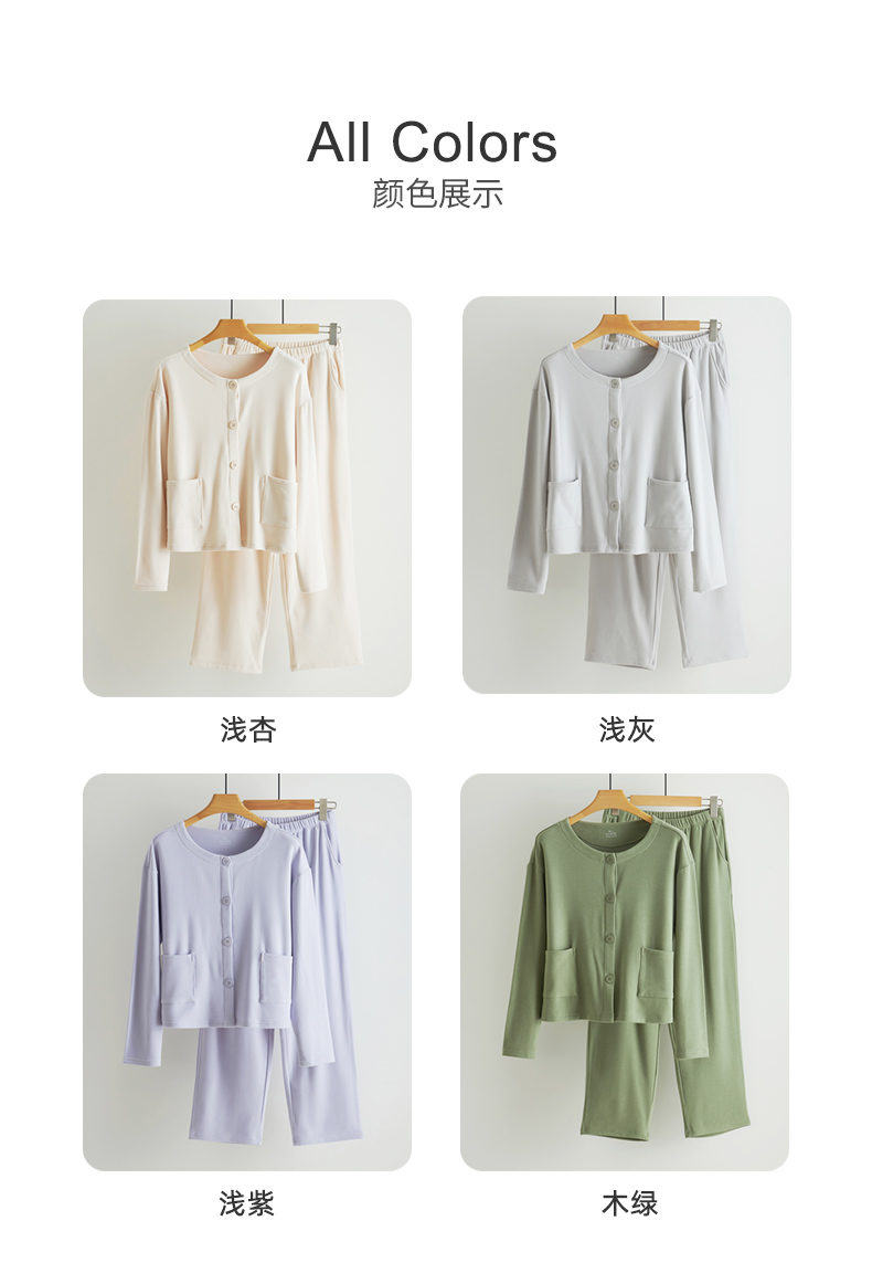 女牙签条系扣圆领家居服舒适秋季睡衣套装 A09703 商品图4