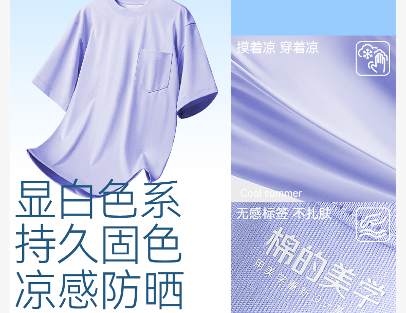 「棉的美学」口袋款宽松冰感防晒短袖t恤女夏季舒适休闲百搭上衣