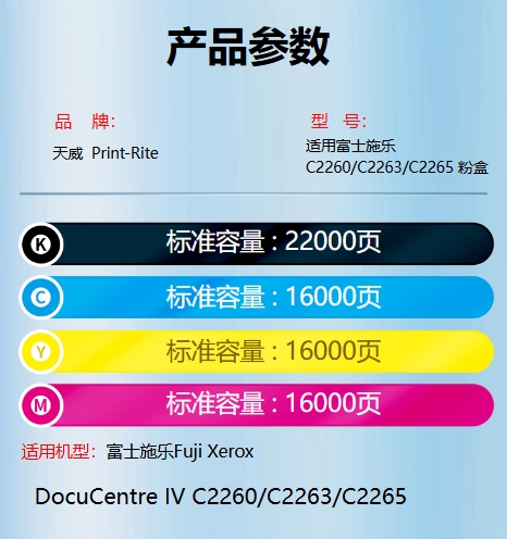 天威 C2260粉盒 适用富士施乐XEROX C2260墨盒 施乐四代IV C2263 C2265复印机墨粉 粉盒