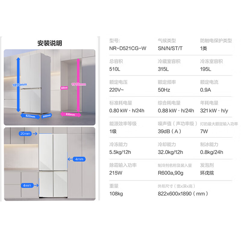 【限天津区域】松下/冰箱/NR-D521CG-W