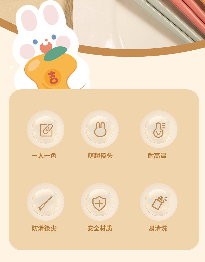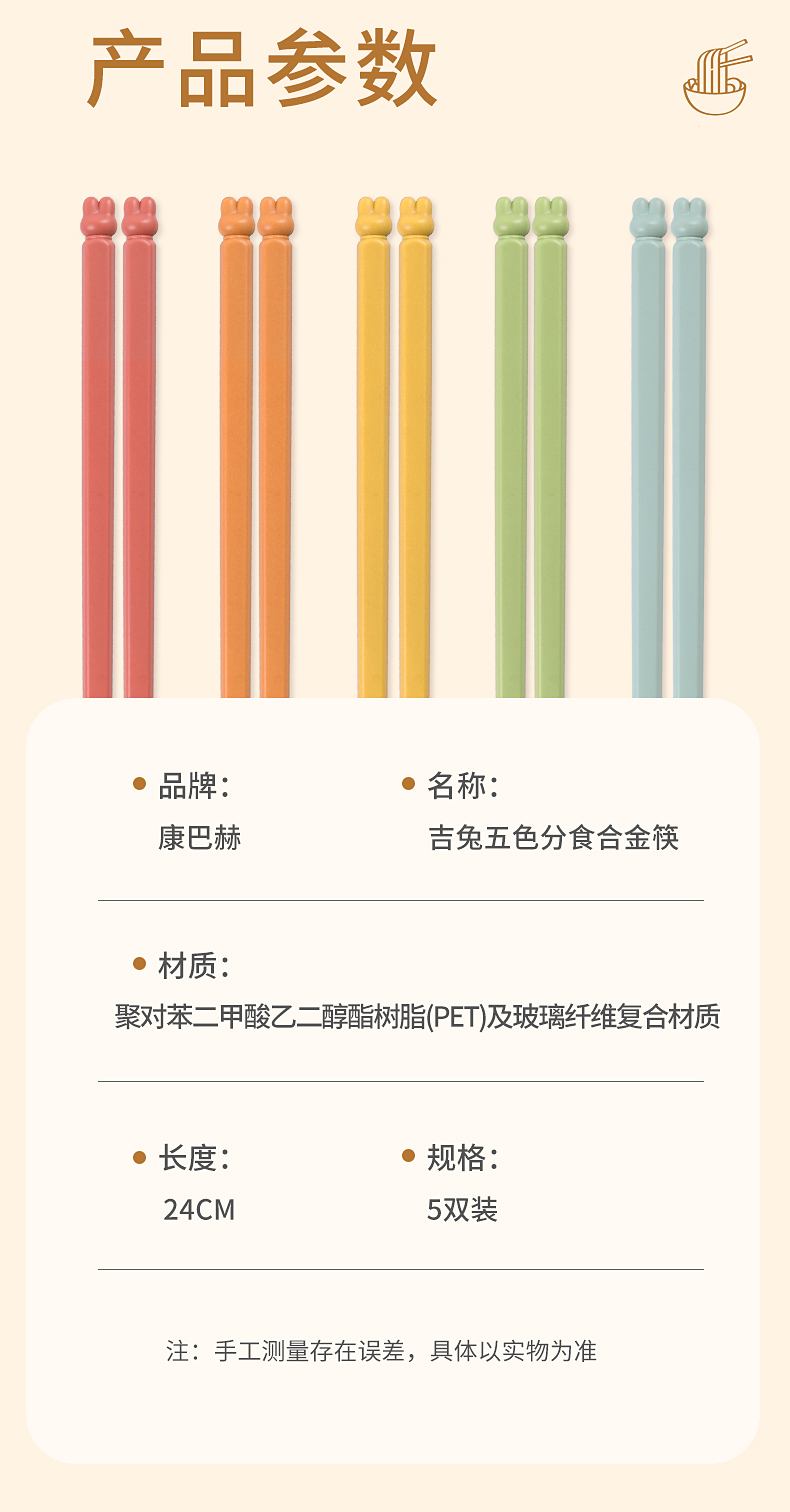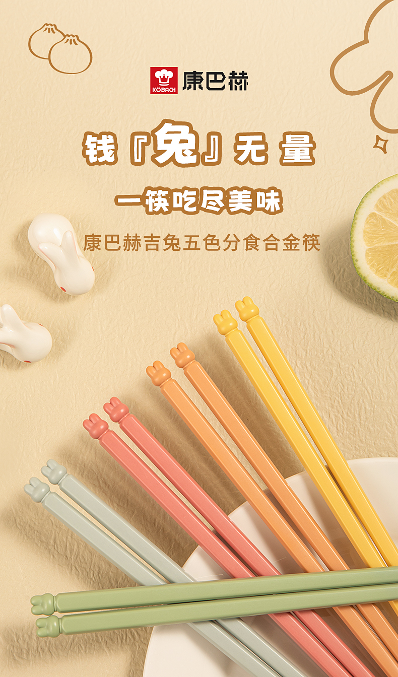 康巴赫 吉兔五色分食合金筷(5双装)KH-JKJT01 KH-JKJT01