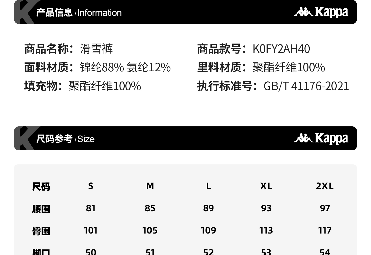 Kappa 2025新款冬季户外滑雪裤 保暖弹力直筒裤 男女款K0FY2AH40