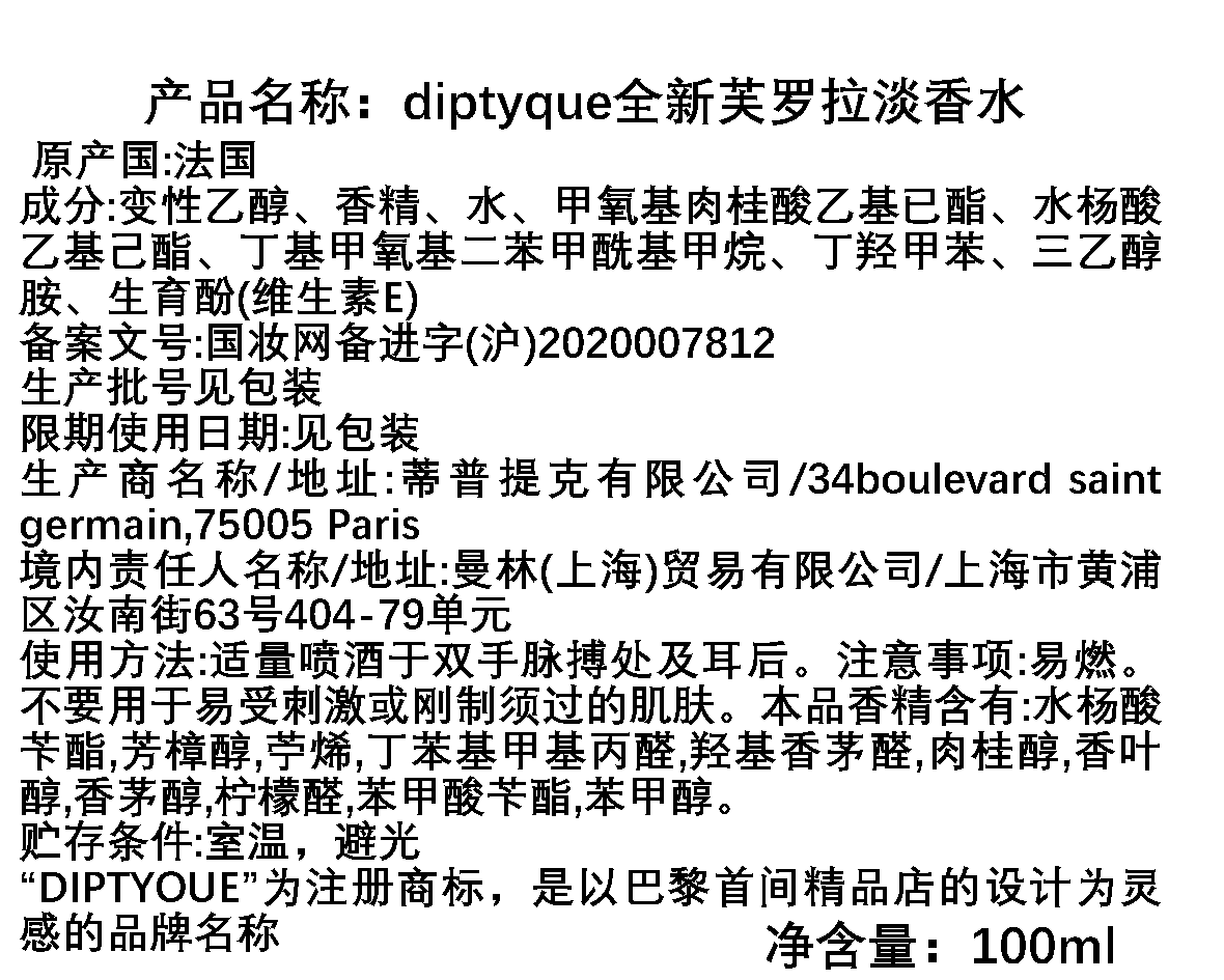 Diptyque蒂普(菩)提克 Florabellio苹果花香水(芙罗拉)(绝版/停产/收藏级)