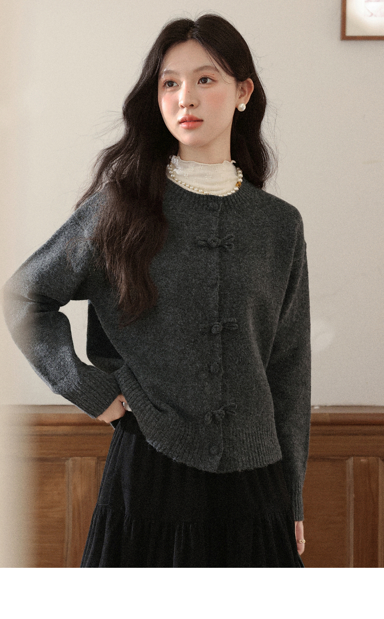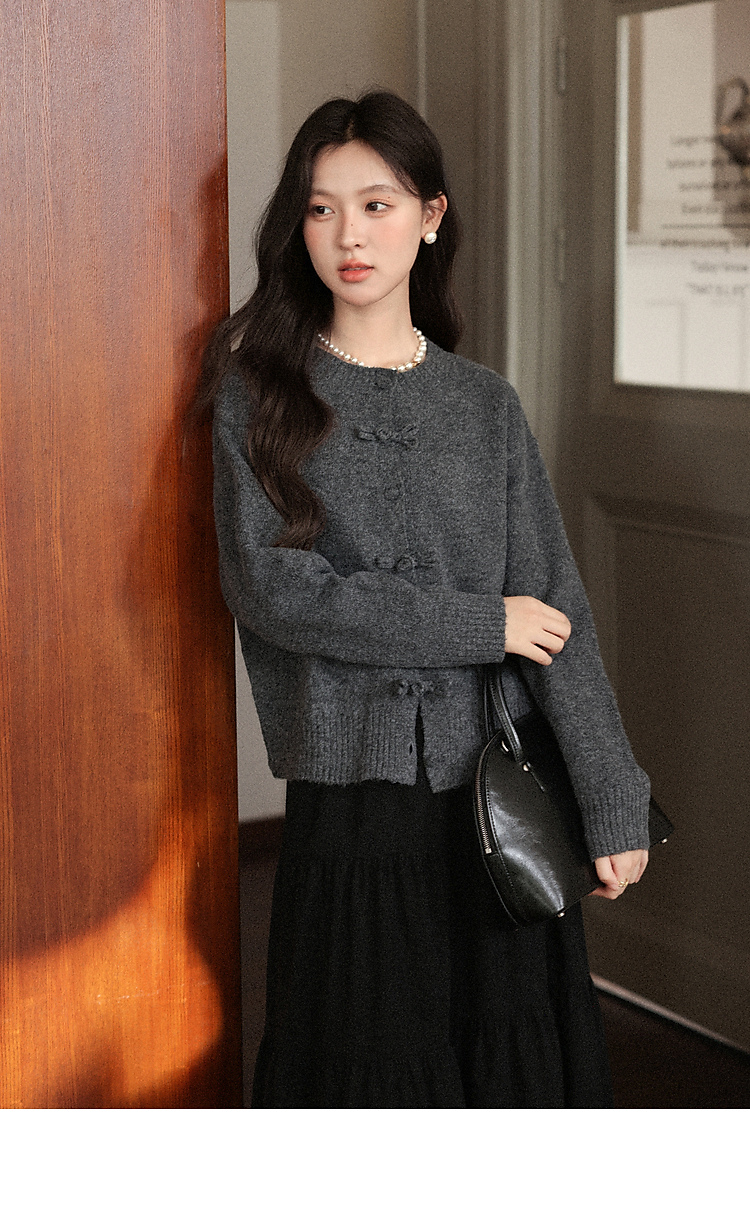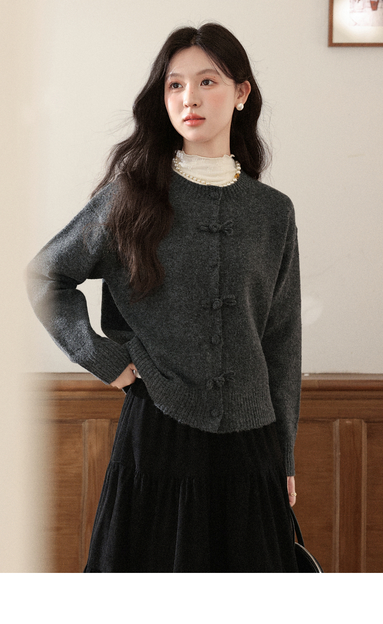 鹿向南「崧灰雾色」小众灰色圆领宽松毛衣女秋慵懒风长袖针织开衫