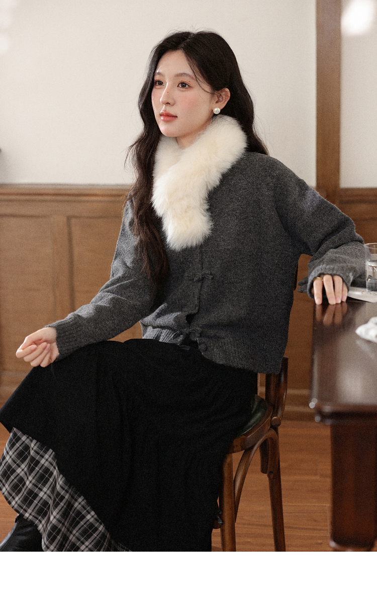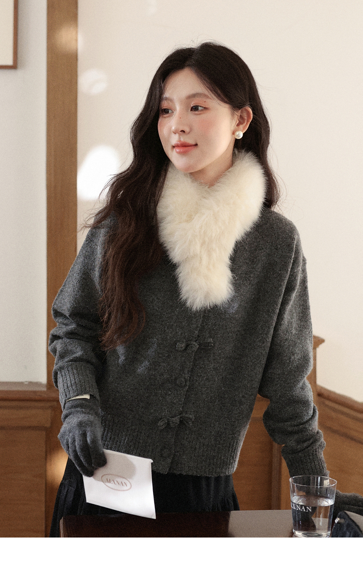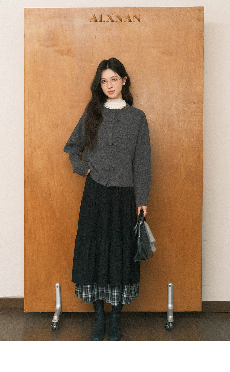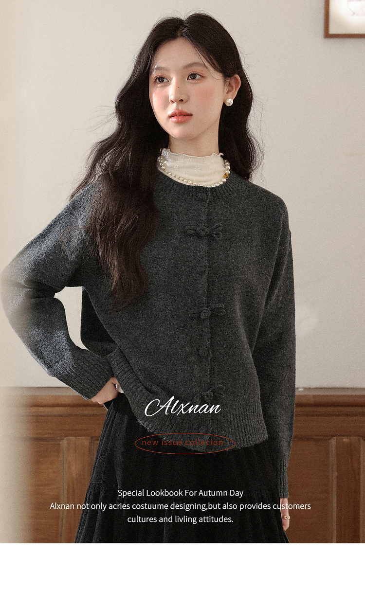 鹿向南「崧灰雾色」小众灰色圆领宽松毛衣女秋慵懒风长袖针织开衫