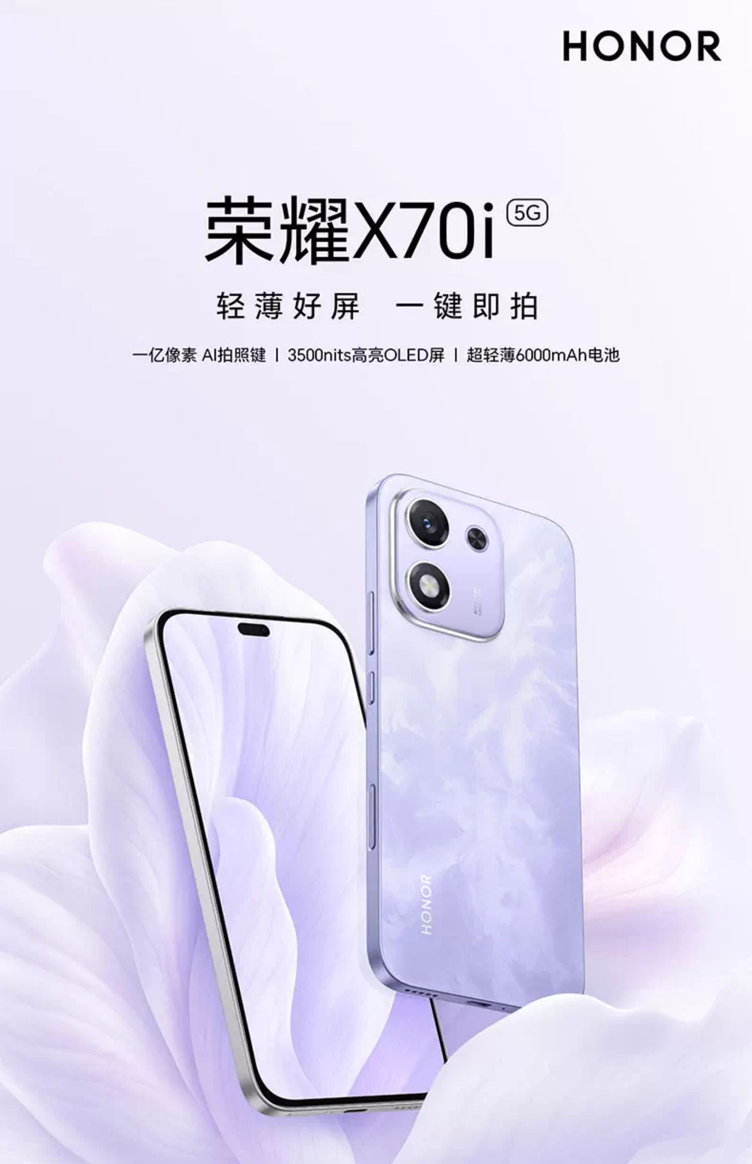 荣耀 X70i 一亿像素 AI拍照键 大屏AI 高亮OLED护眼屏 超轻薄 5G手机