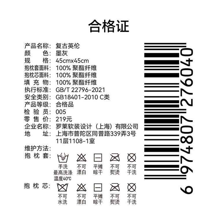 罗莱T 卢卡夫妇 全棉四件套 灰色