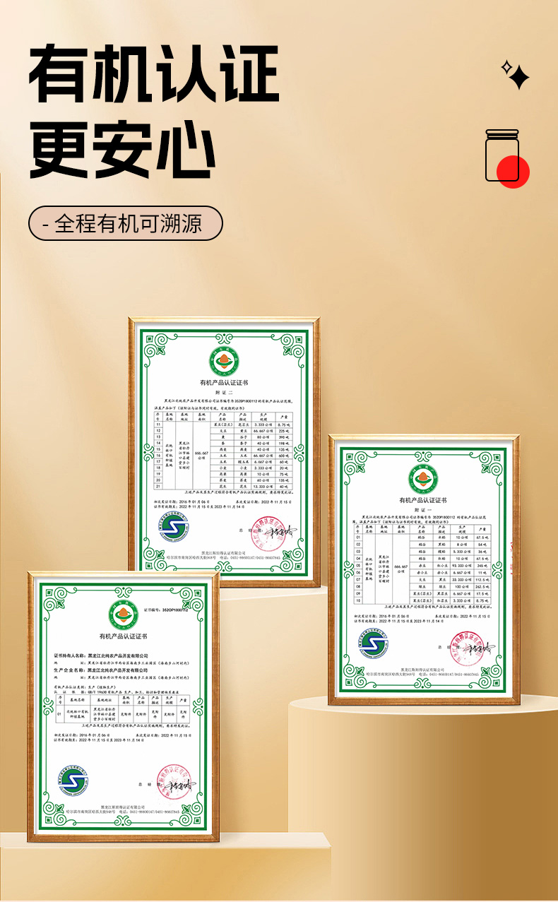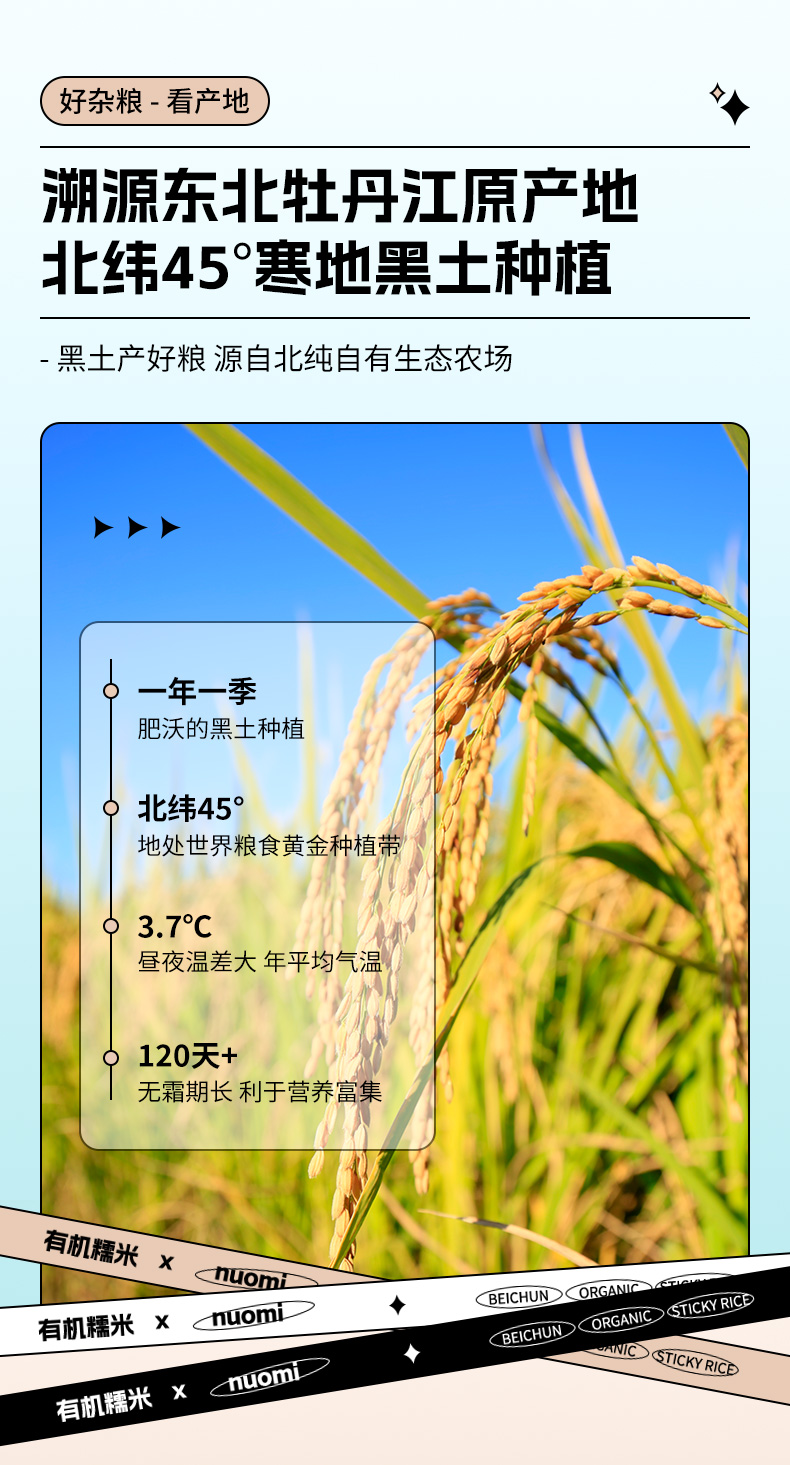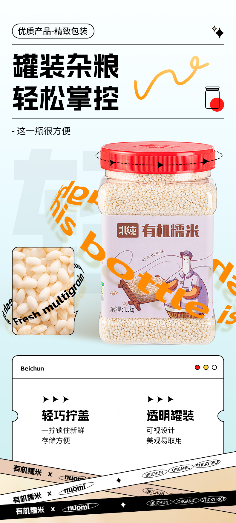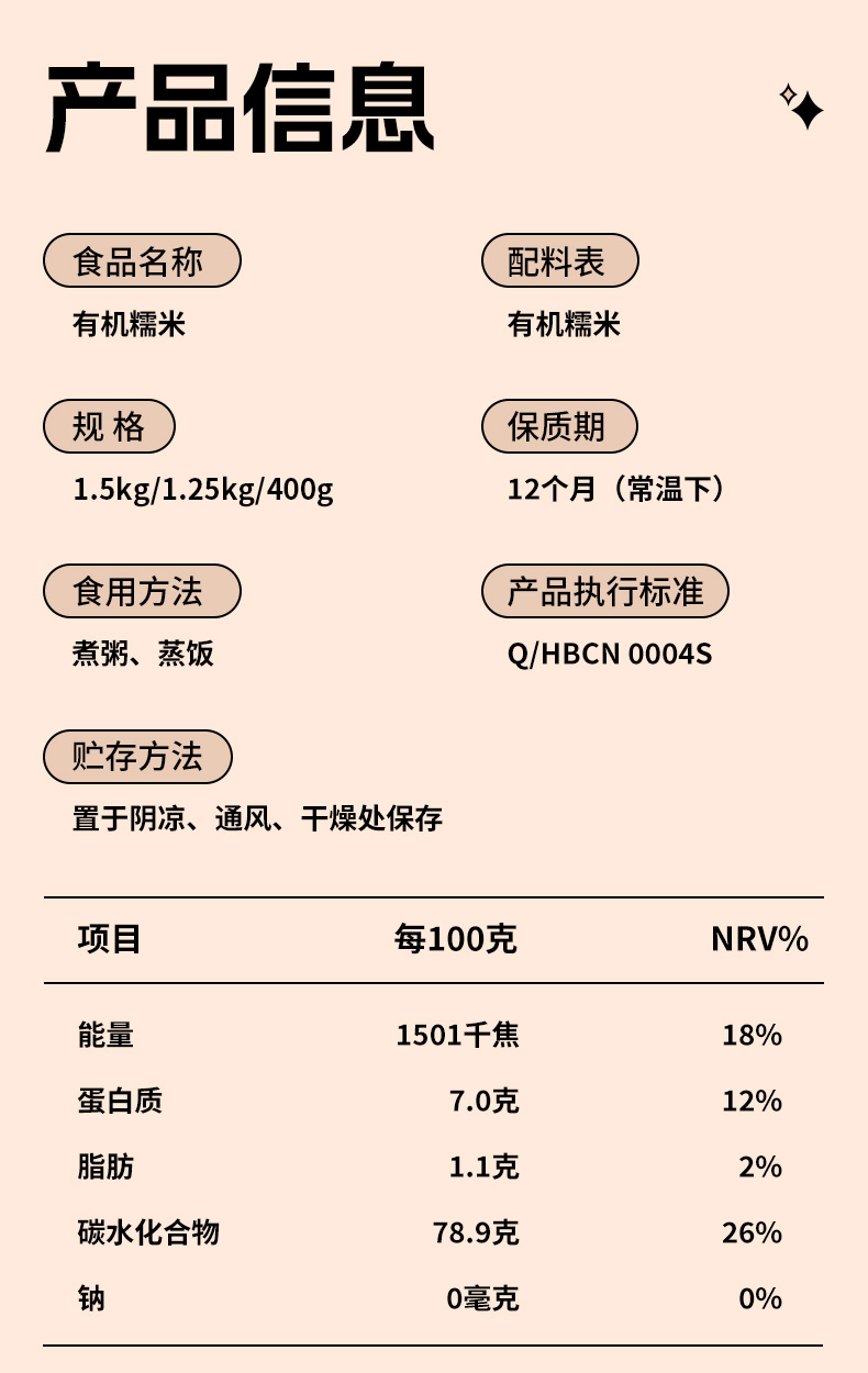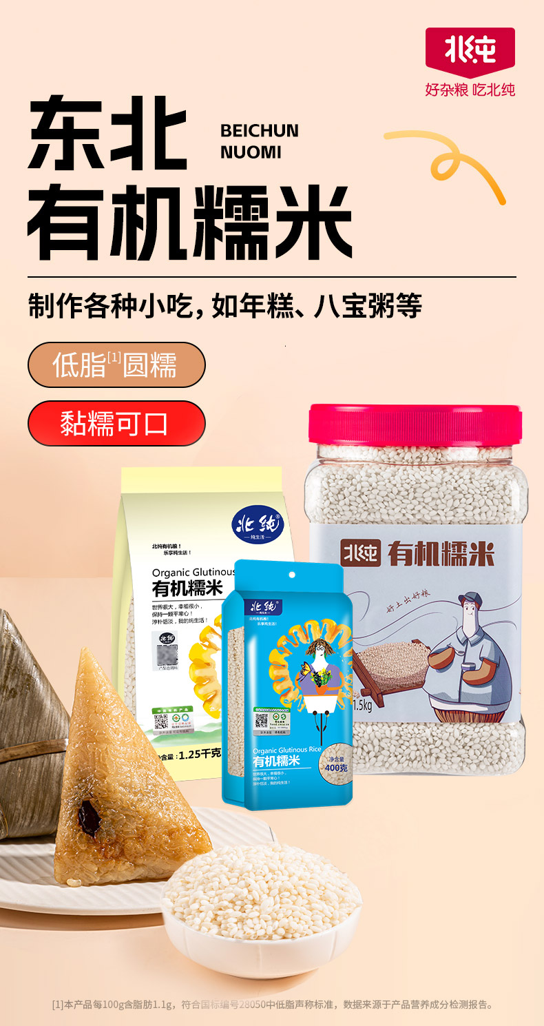 【北纯】有机糯米 1.5kg(江米 黏米 粽子米 粗粮 五谷 杂粮 可溯源)罐装