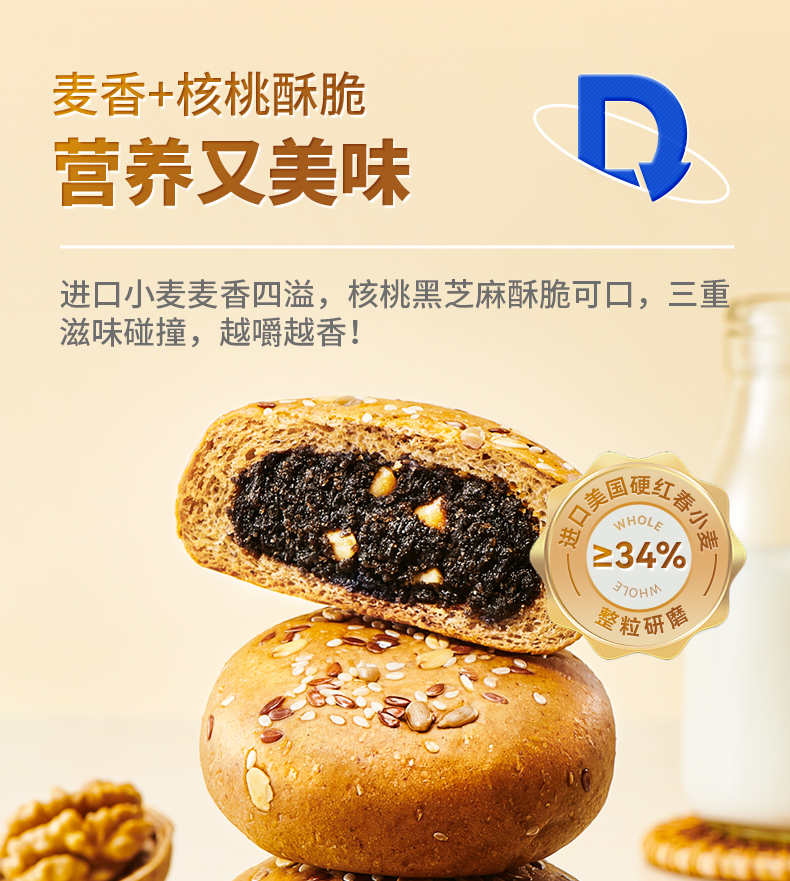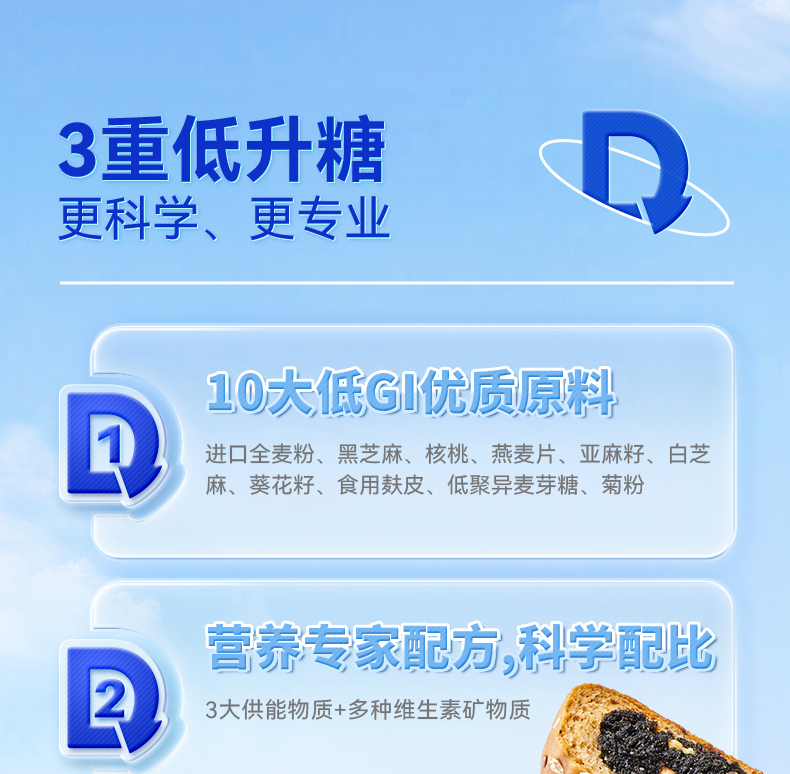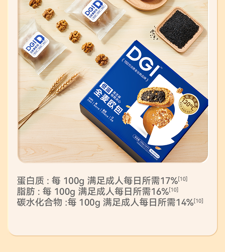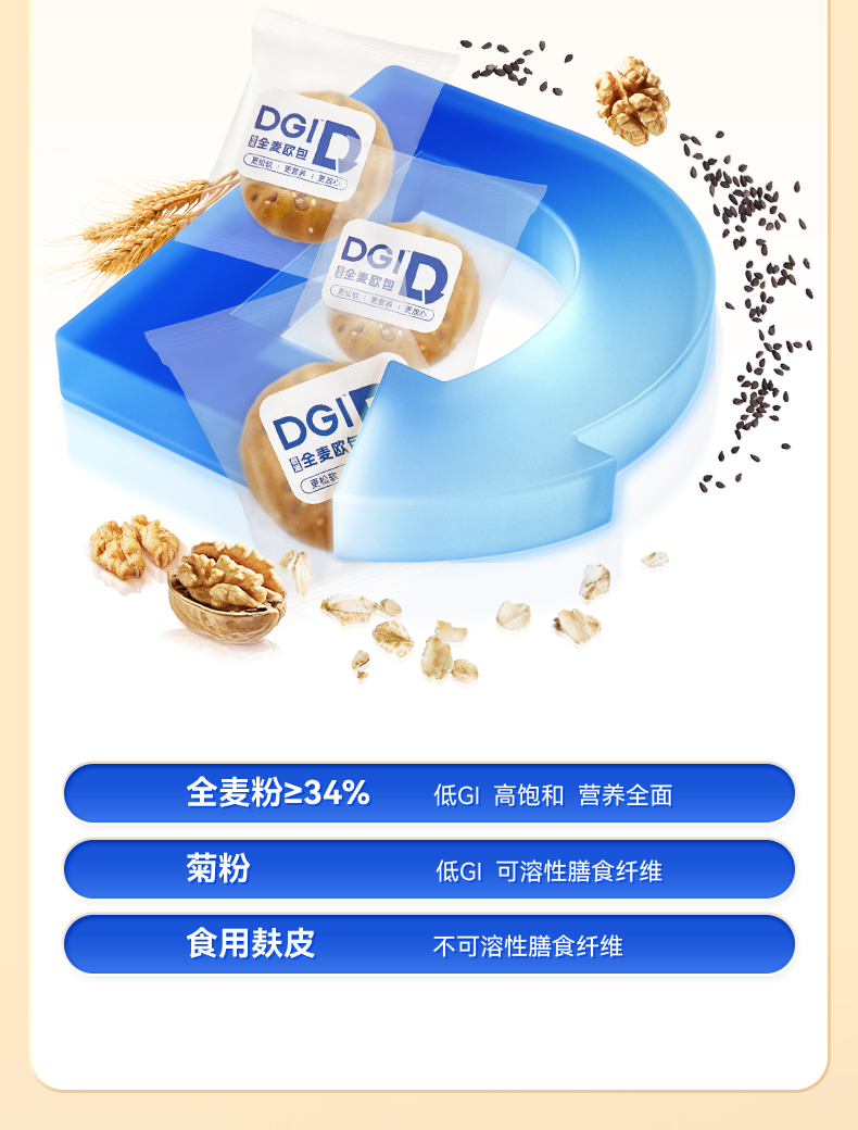 【DGI】低GI夹心欧包非全麦无糖精糖友健康代餐营养早餐孕妇零食面包330g