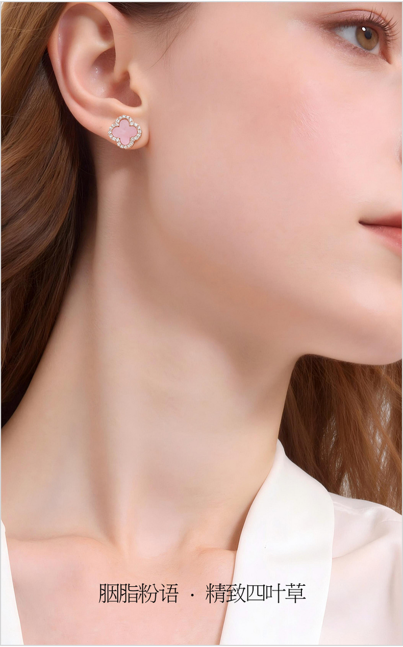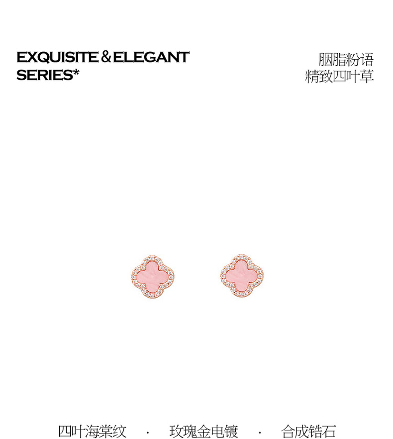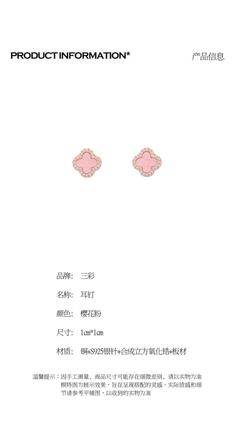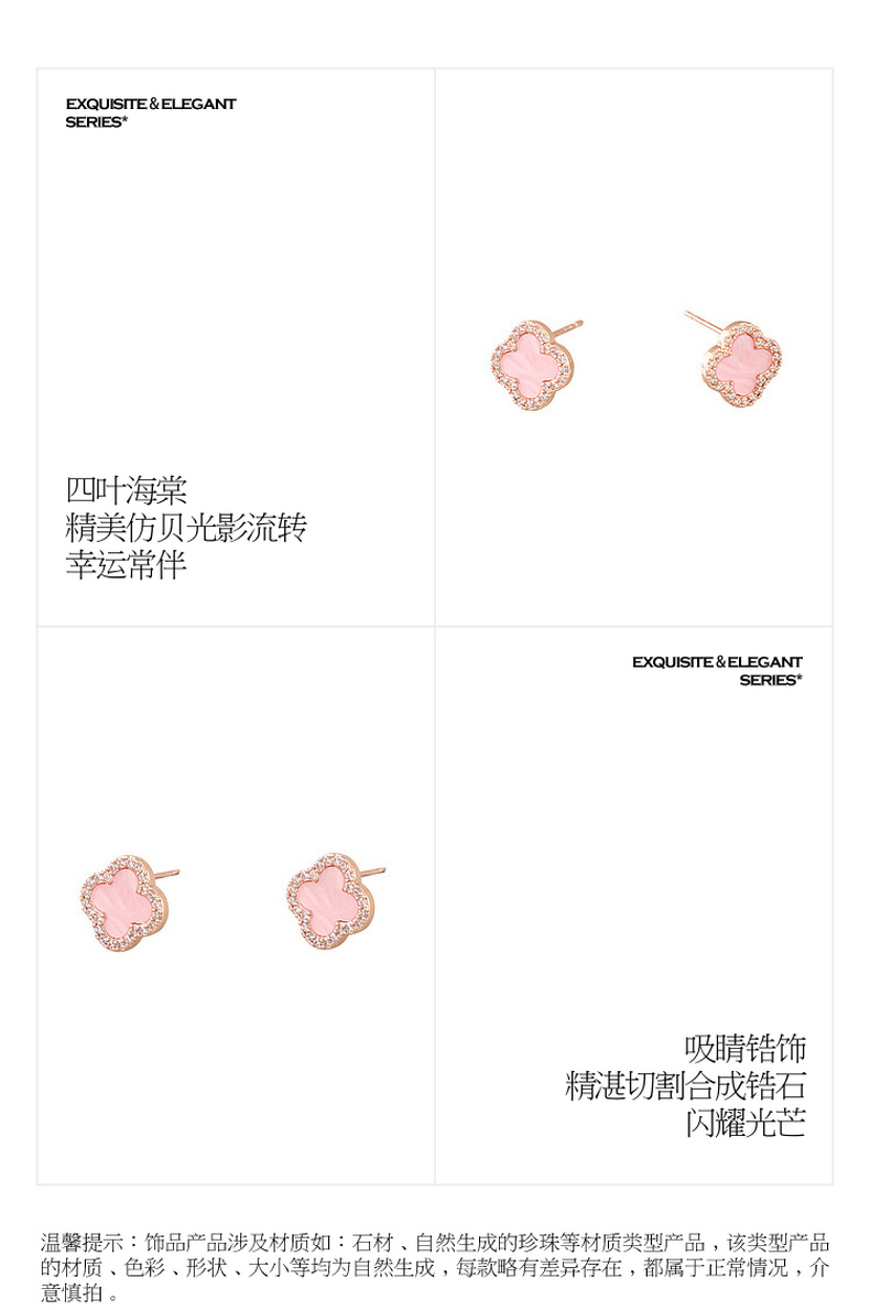 三彩2026新款玫瑰金四叶草海棠纹耳钉轻奢锆石幸运小众甜美气质女