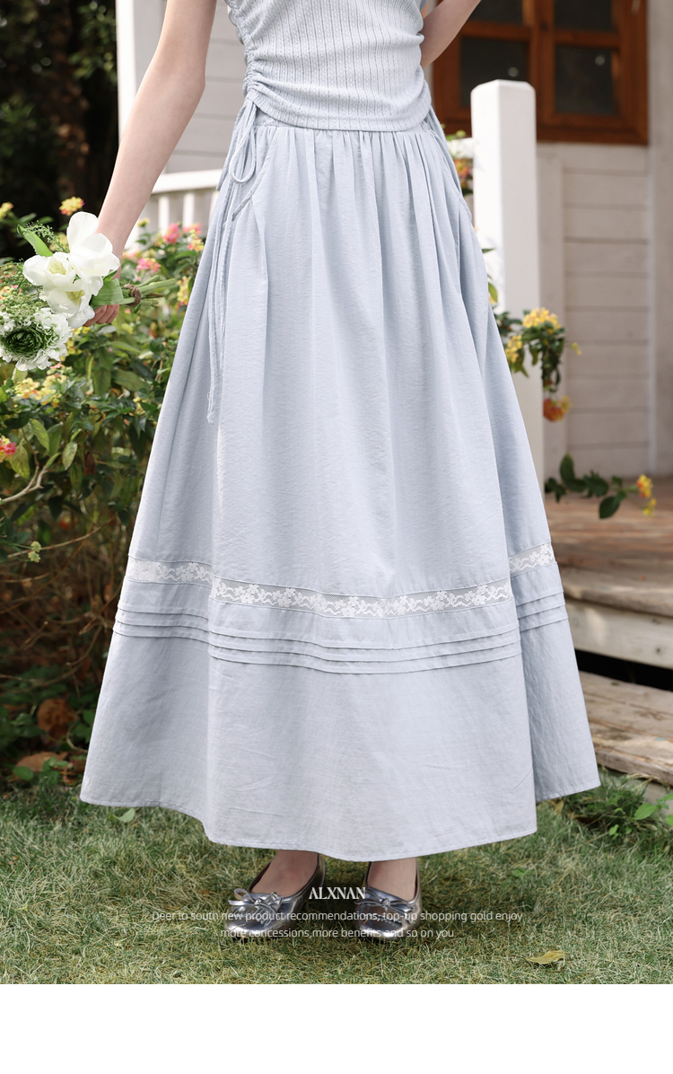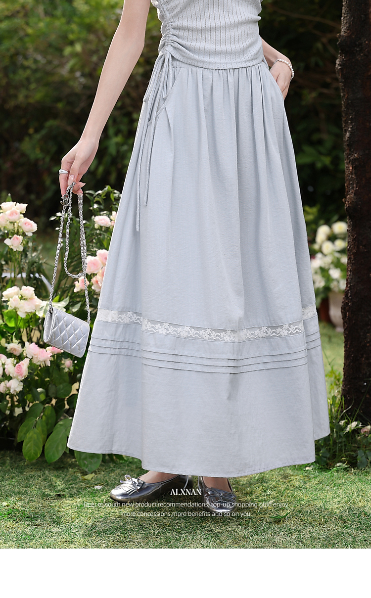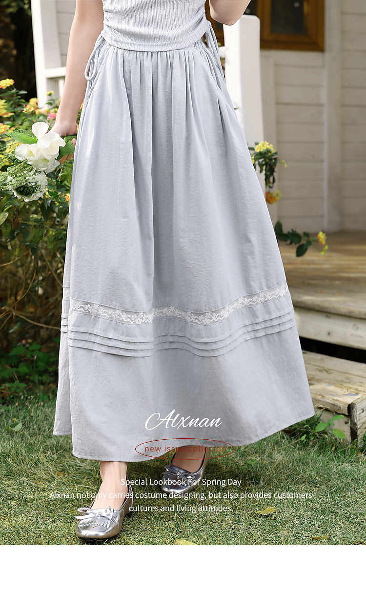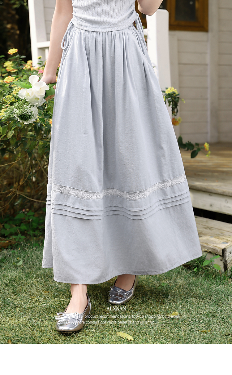 鹿向南「静美时光」雾霾蓝半身裙女春季高级感度假风高腰A字长裙