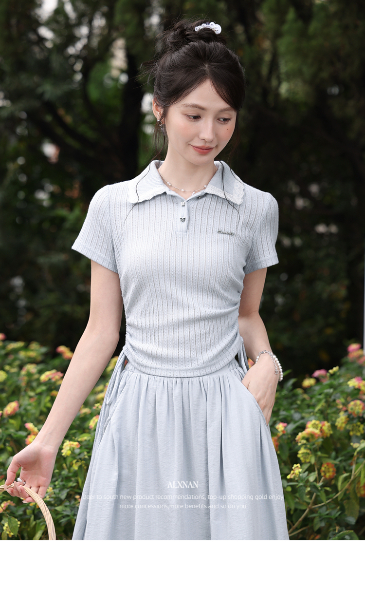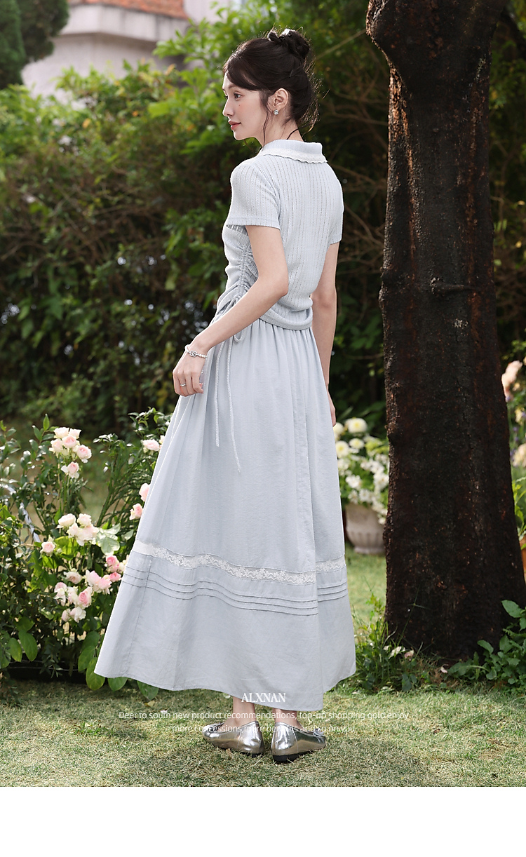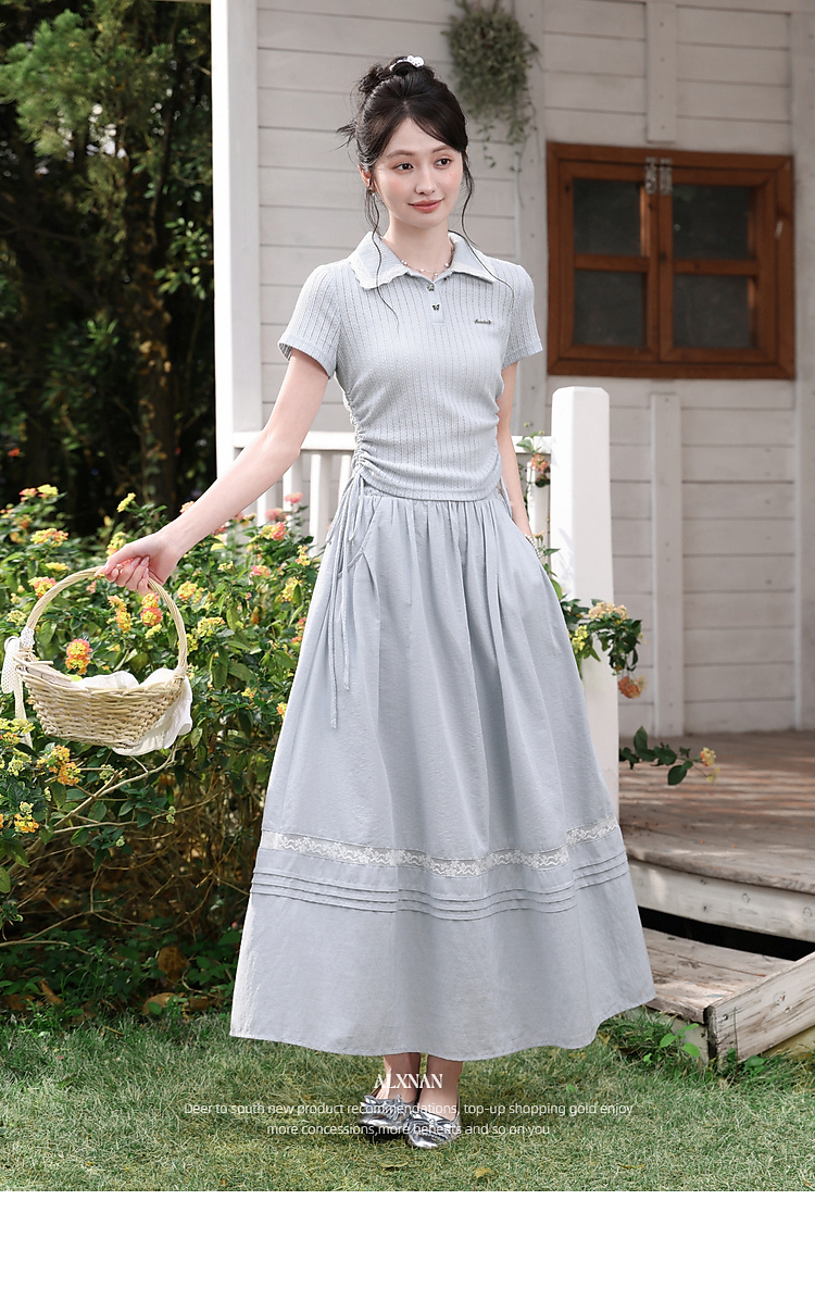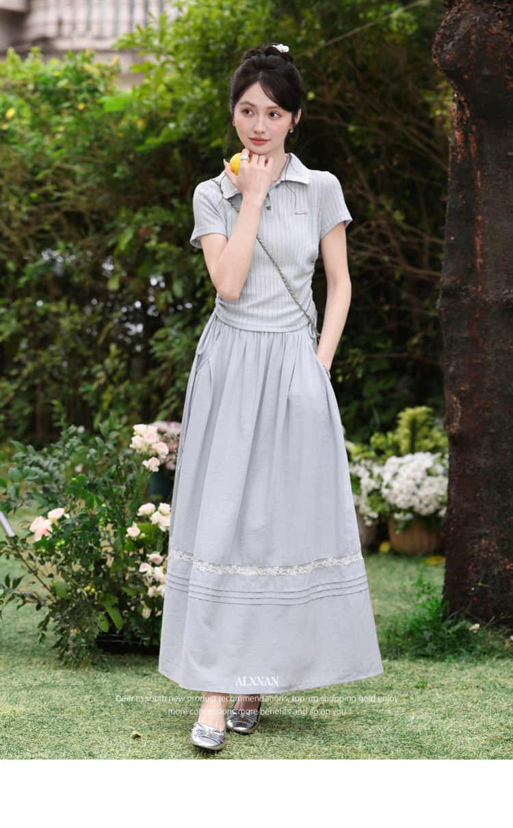鹿向南「静美时光」雾霾蓝半身裙女春季高级感度假风高腰A字长裙