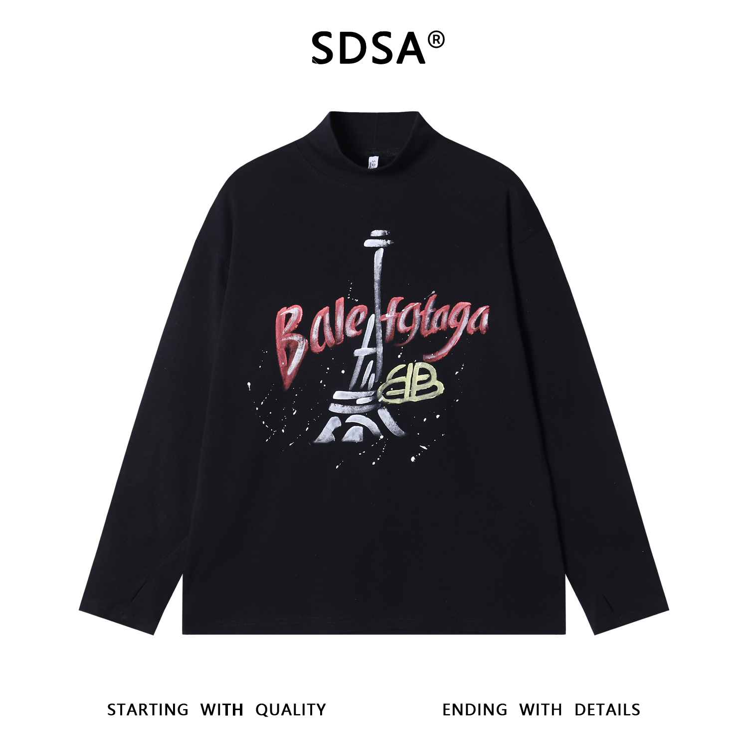 T4989SDSA男士秋冬新款痞帅男装简约美式手绘字母印花半高领长袖T恤潮