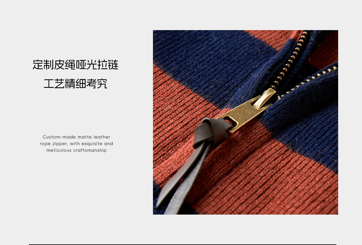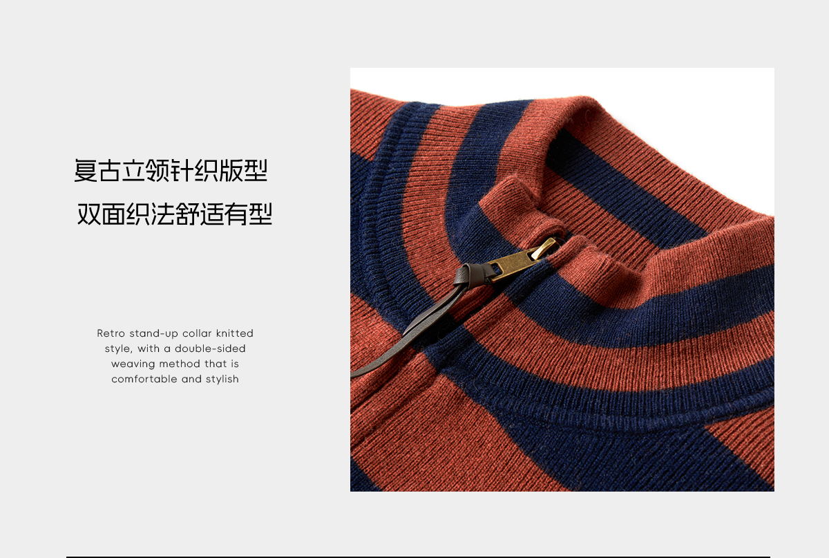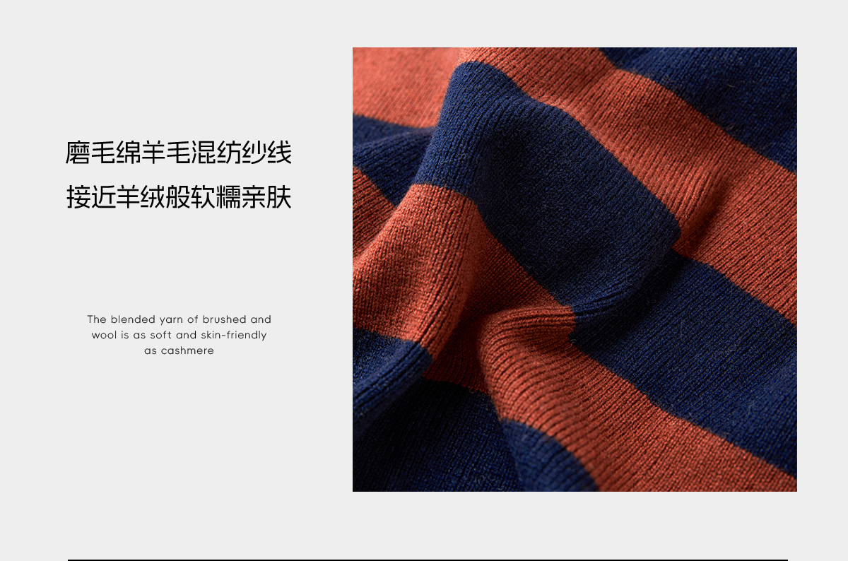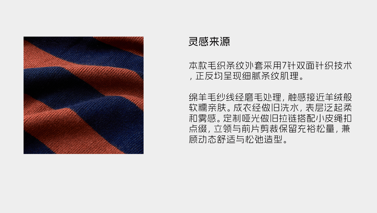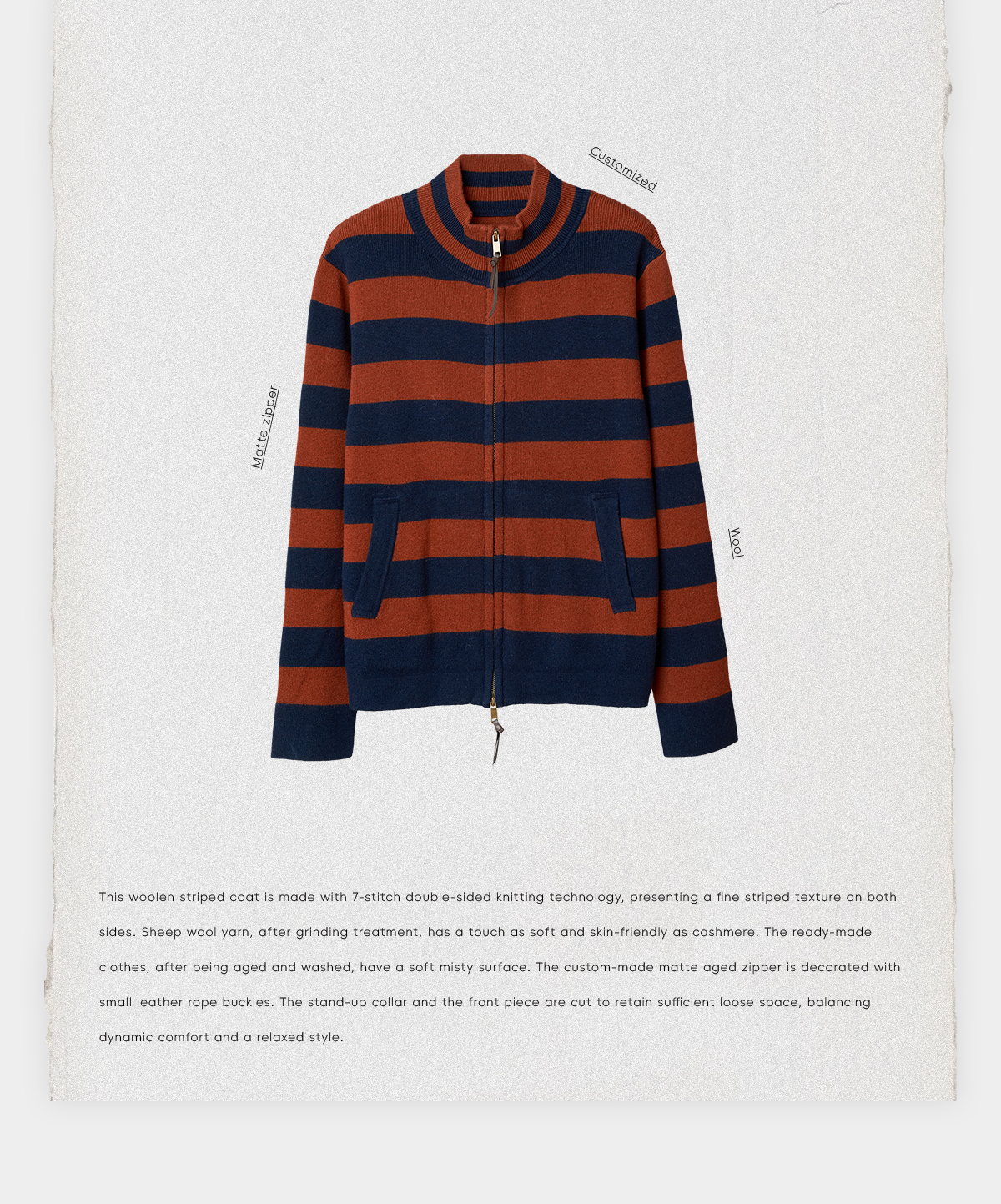 ROMI STUDIO“秋日絮语”7针绵羊毛双面条纹橙蓝毛织外套RWCASY5940