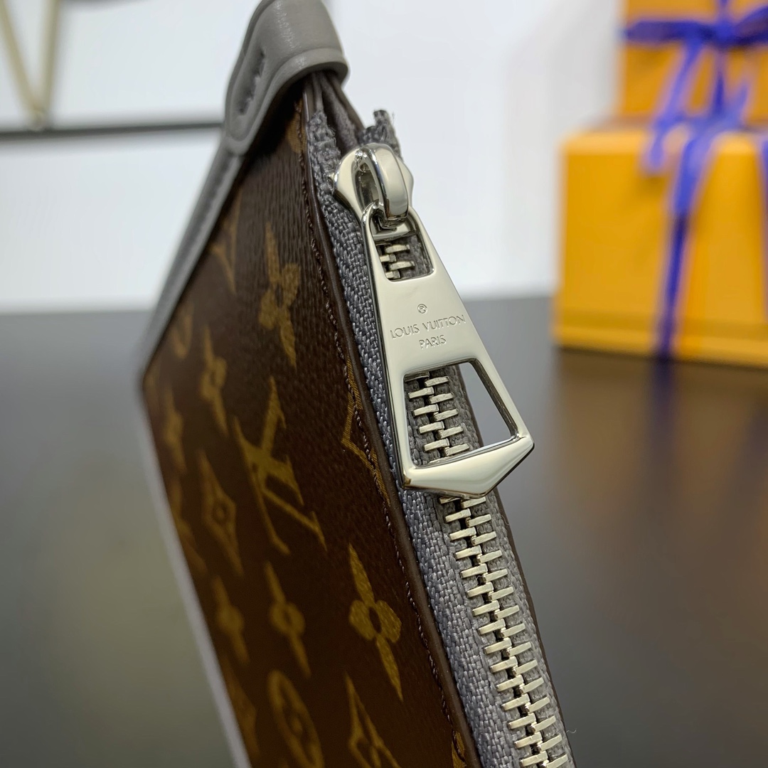 驴家M47123 Pochette Tirette拉链开合 帆布 手提单肩包 棕色