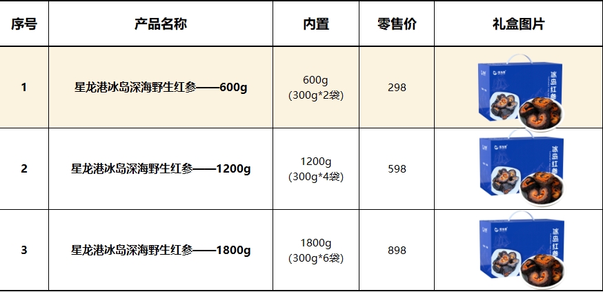星龙港北极冰岛深海野生红参礼盒多规格可选