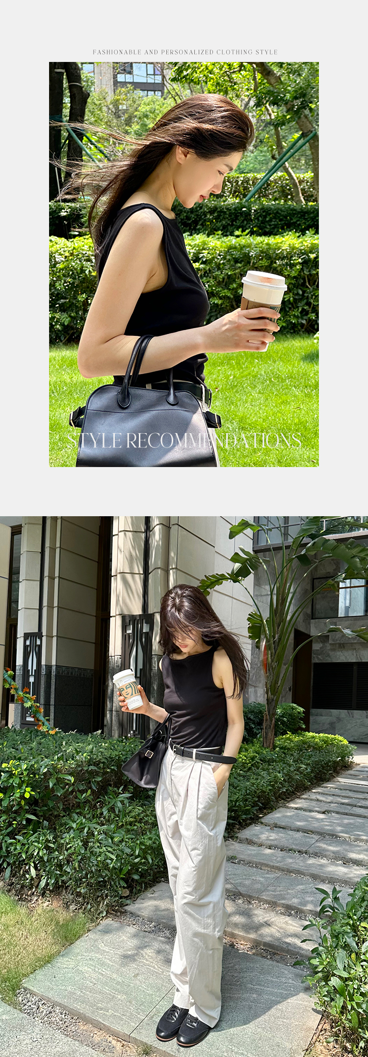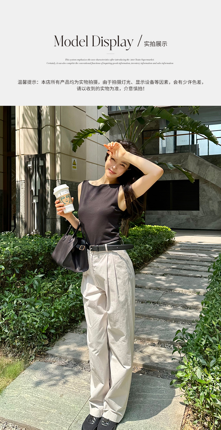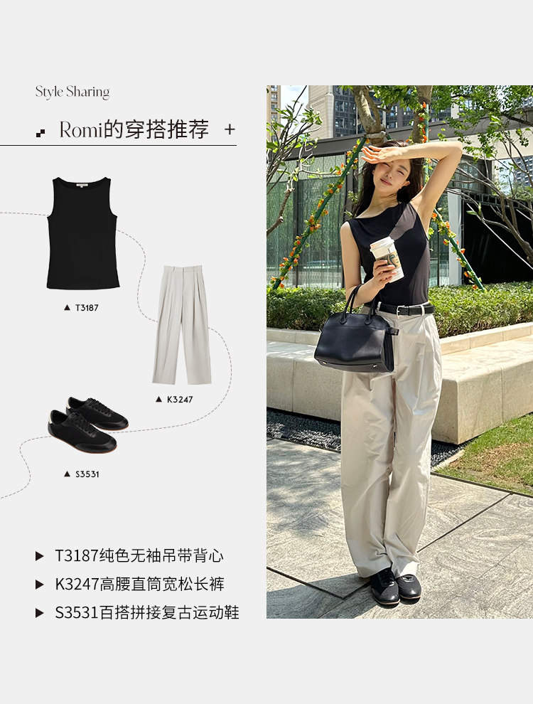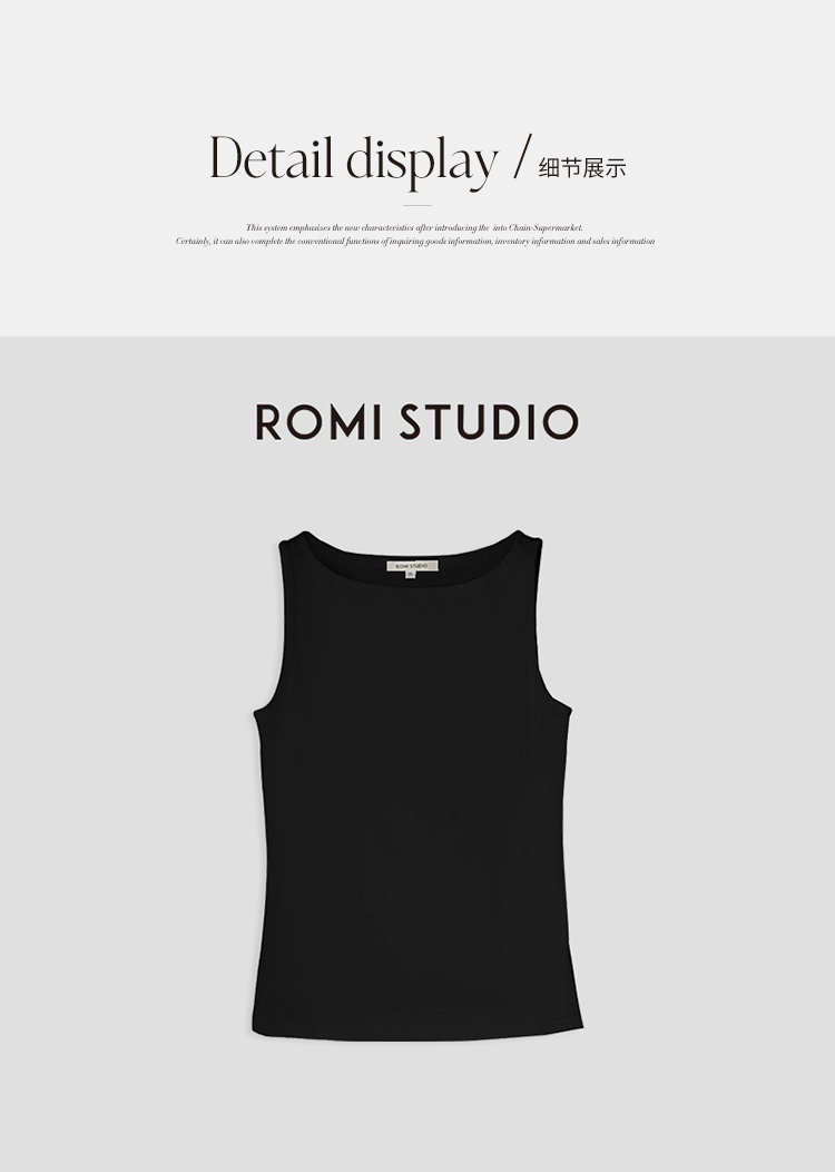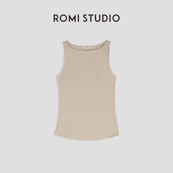 ROMI STUDIO【高品质】简约百搭纯色修身无袖一字领吊带背心T3187