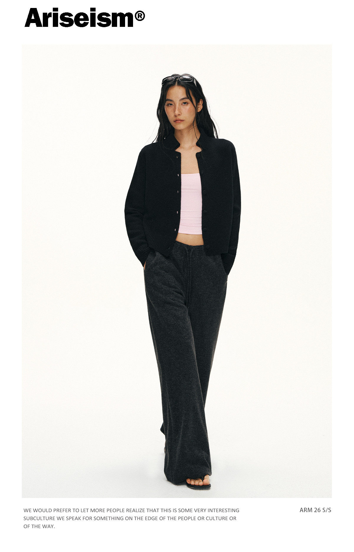 Ariseism黑标 羊毛混纺毛织休闲裤女春季新款长裤子