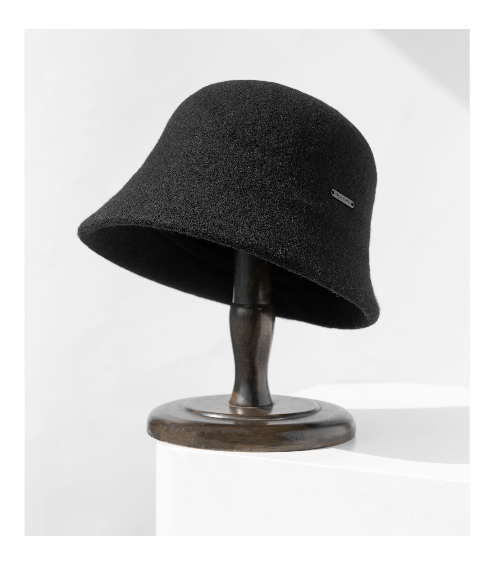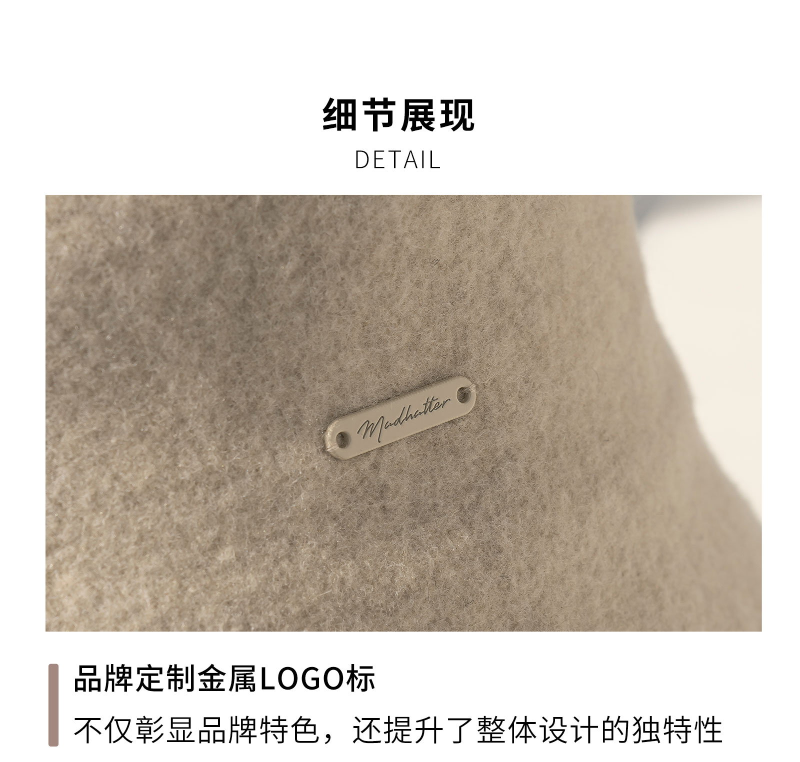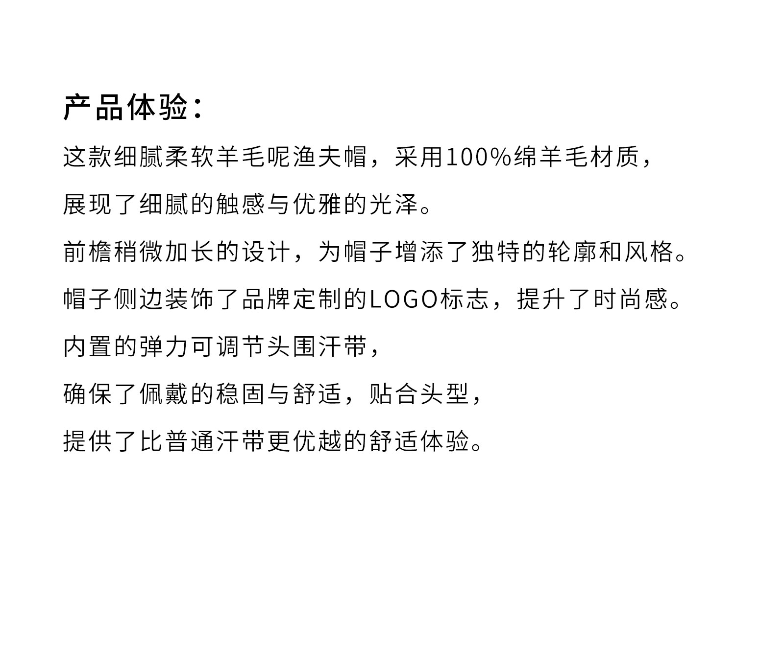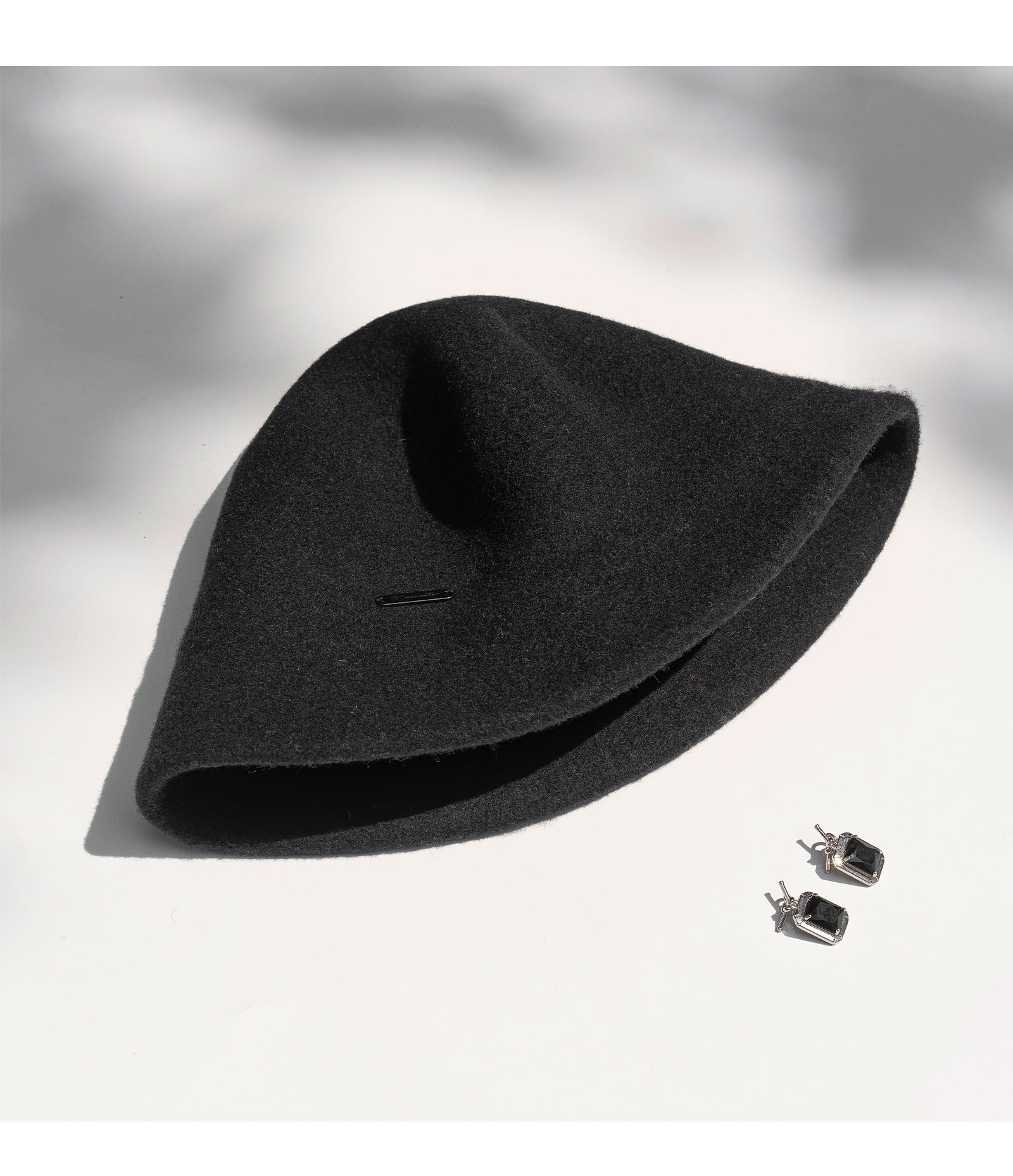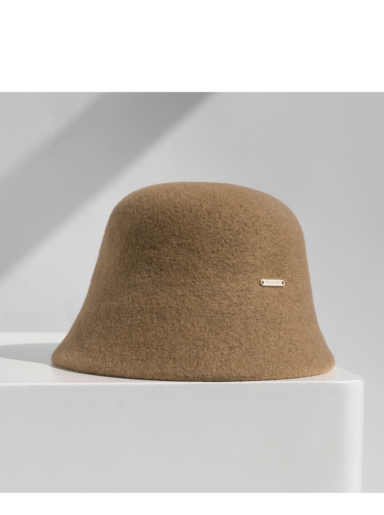 疯帽子 前长后短纯羊毛渔夫帽子女 秋冬小头保暖百搭纯色盆帽