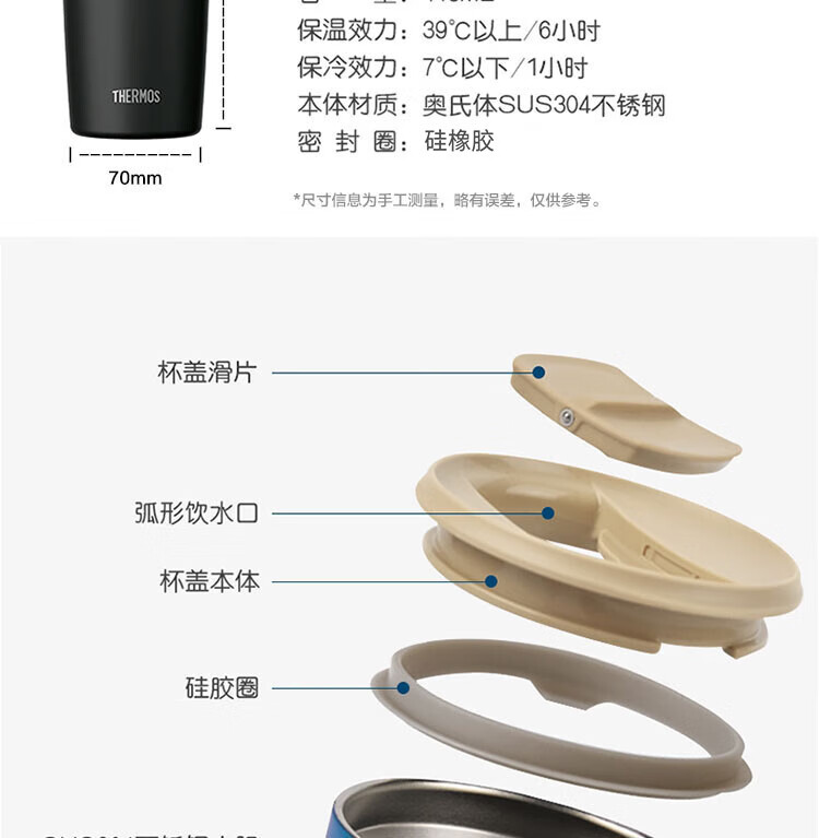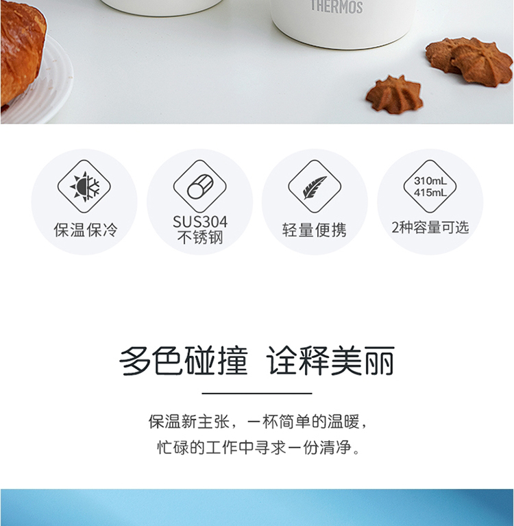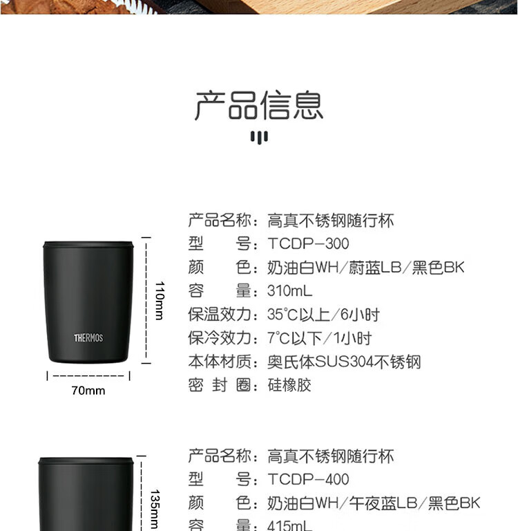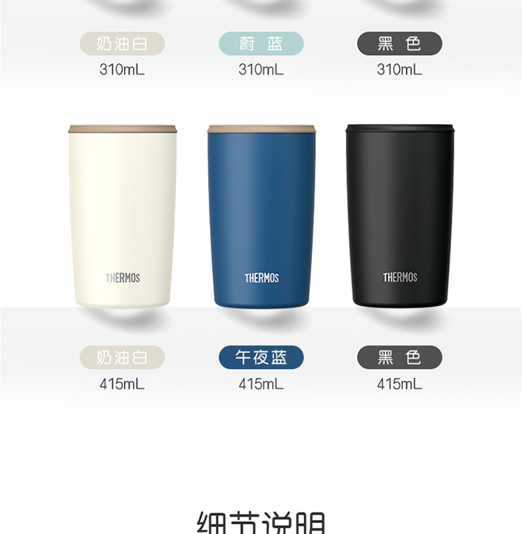 膳魔师(THERMOS)保温杯415毫升咖啡杯男女士情侣学生简约便携水杯子 TCDP-400 BK