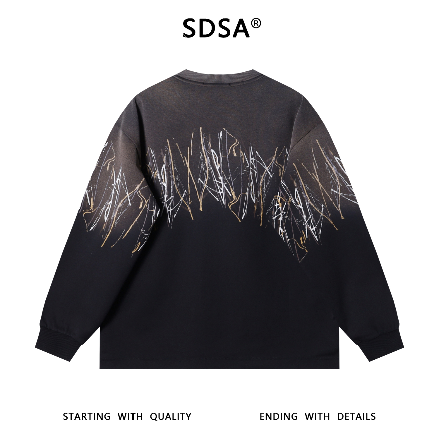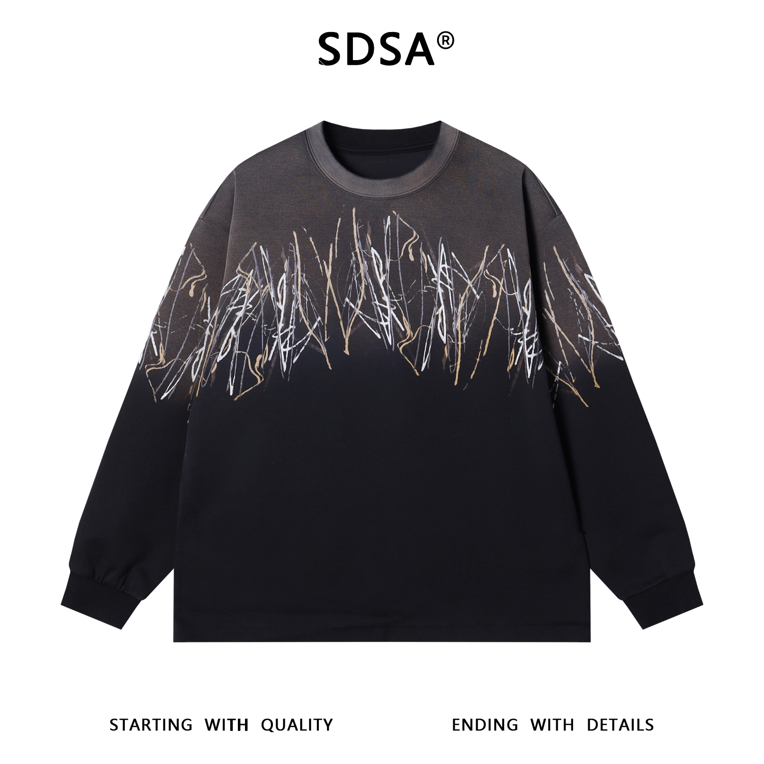 SDSA男士秋冬新款痞帅男装韩版凌乱线条涂鸦圆领卫衣百搭时尚上衣