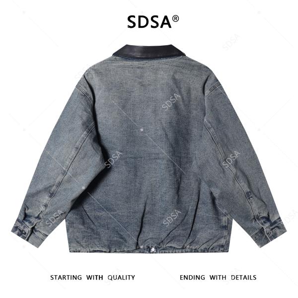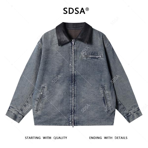SDSA秋冬新款痞帅男装简约时尚拼皮翻领纽扣夹克外套小众设计百搭