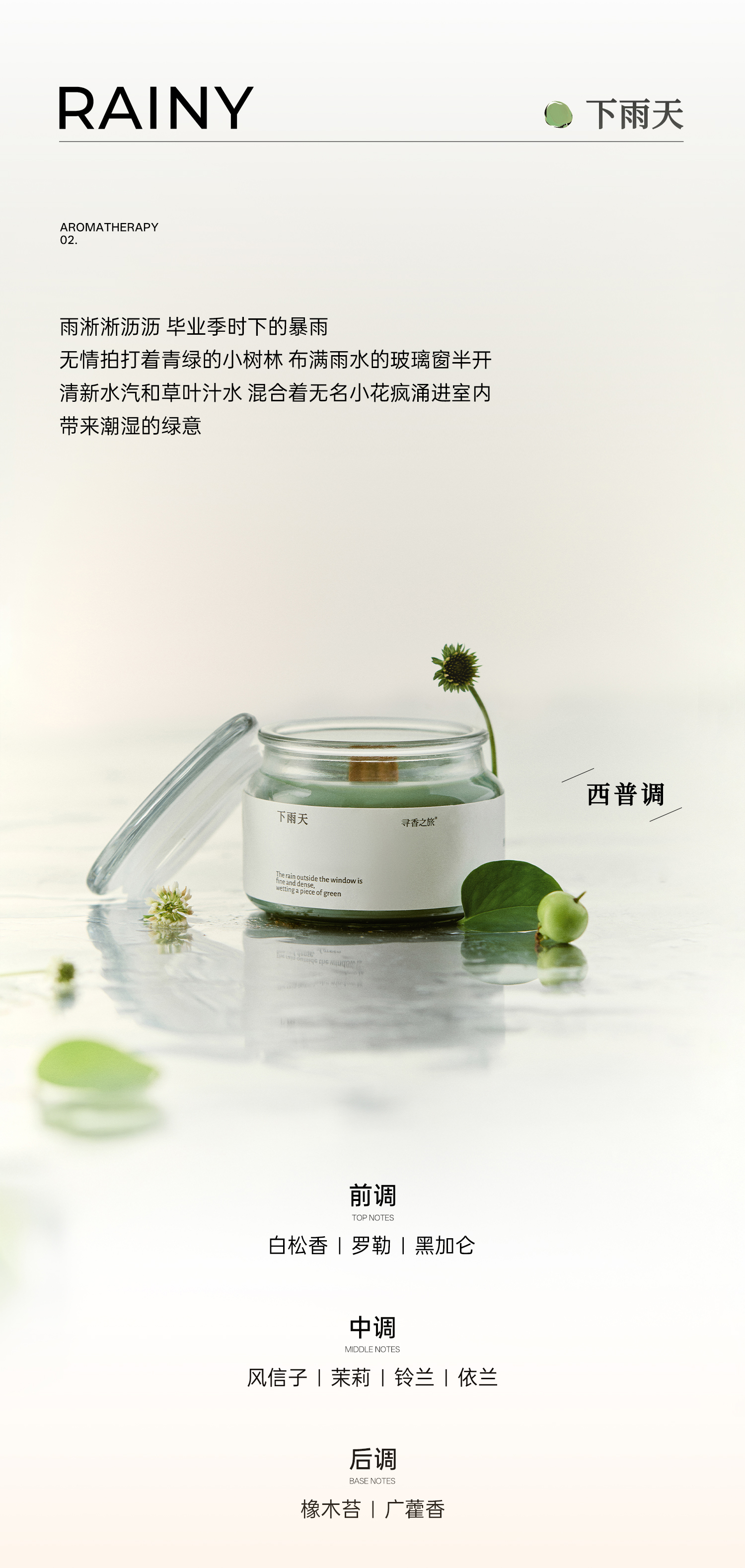 寻香之旅白噪音下雨天香薰蜡烛室内香氛持久散发淡雅香气送礼礼物