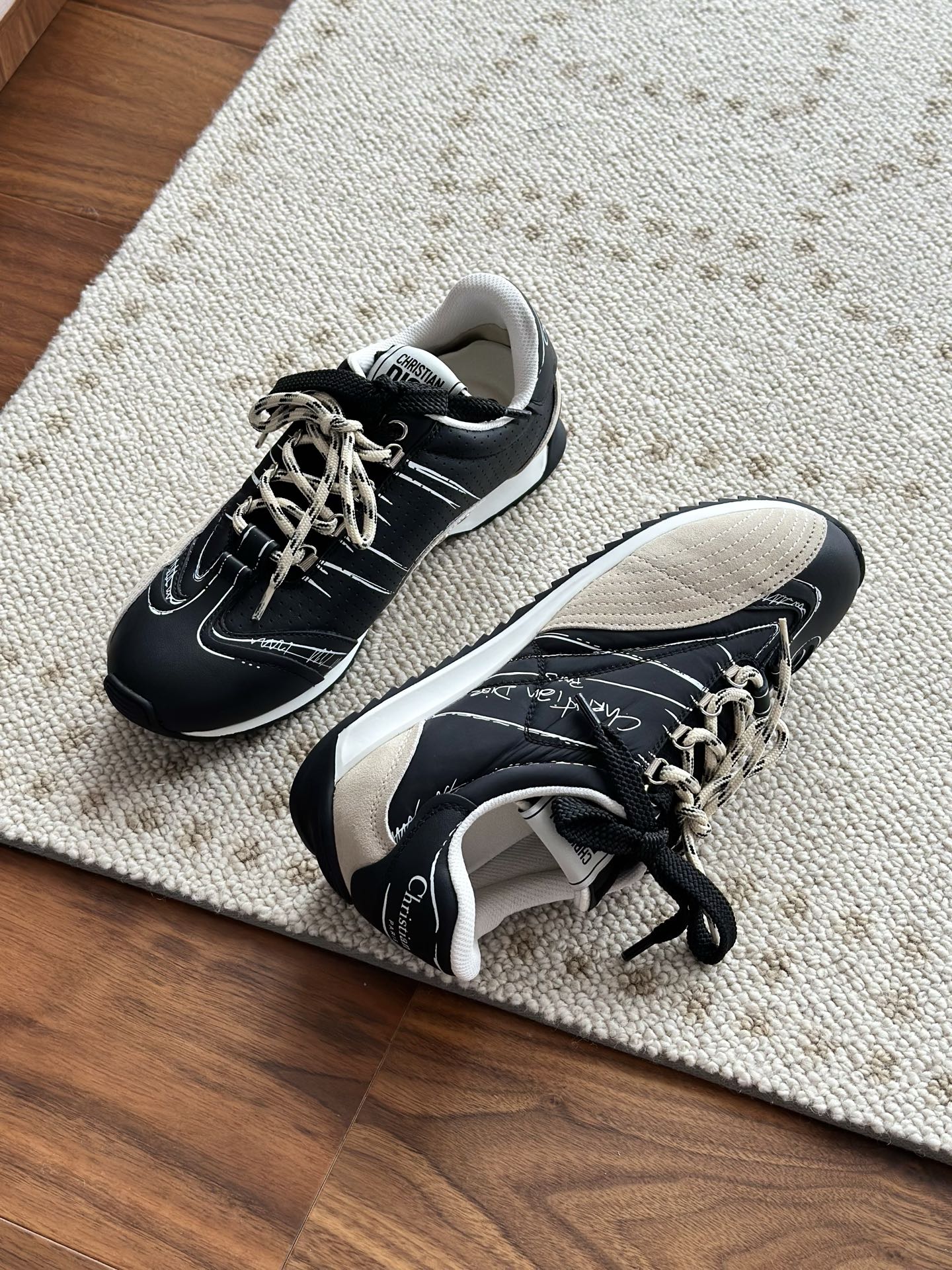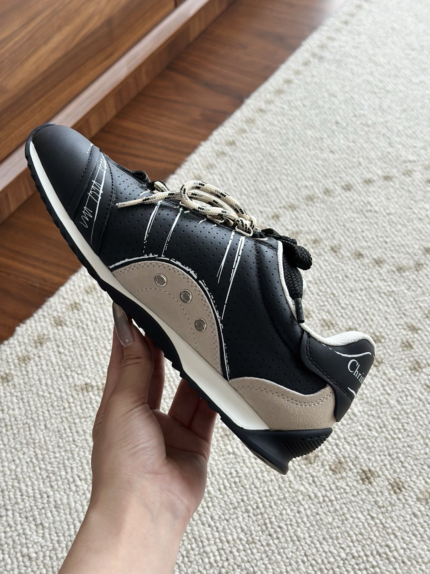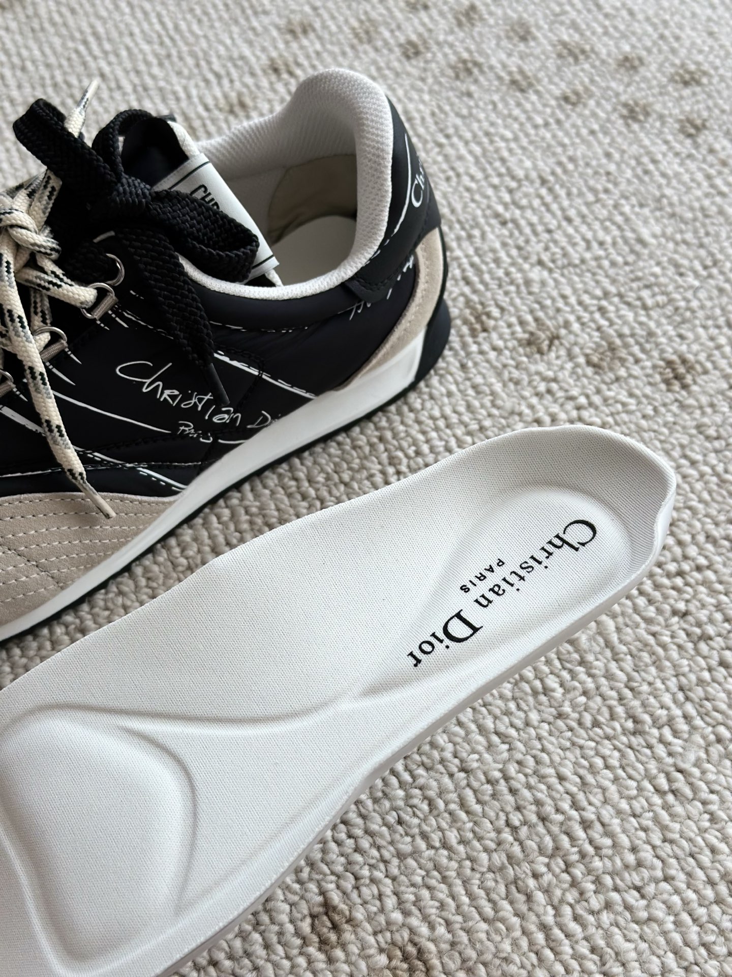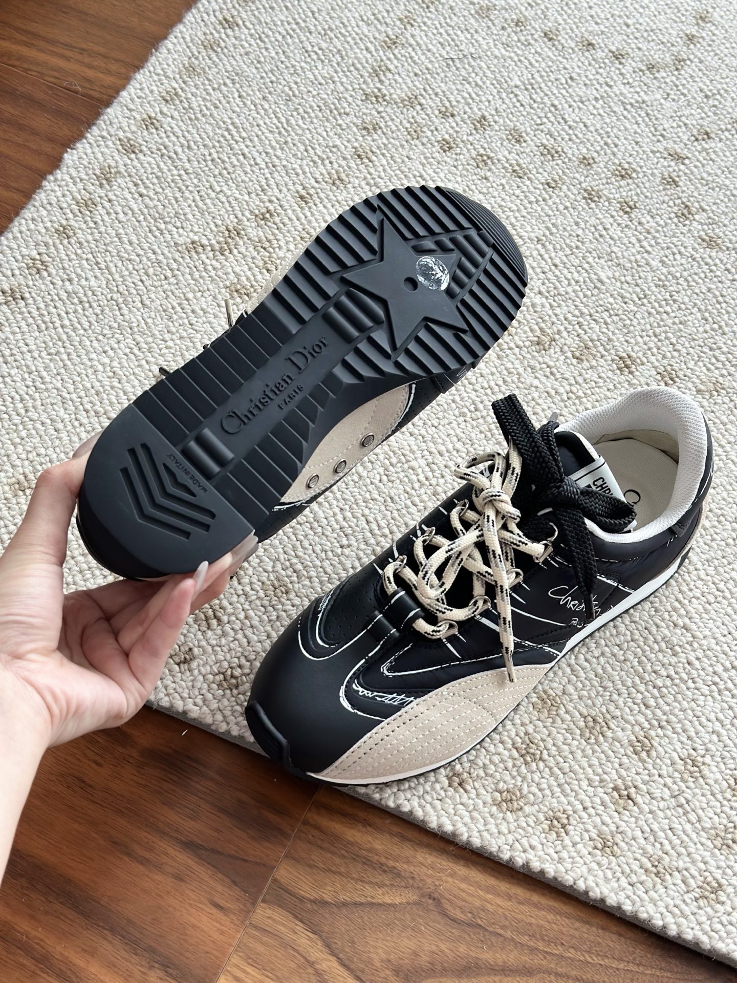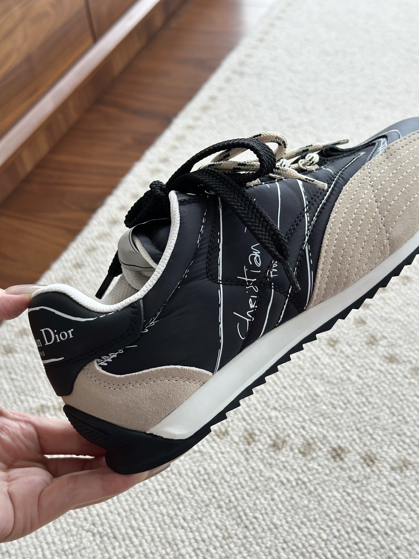 代购单 Dio*迪奥D-Sketch 25ss涂鸦运动跑鞋 迪奥春夏系列发布秀精彩亮相,彰显经典的复古美学。采用白色尼龙和牛皮革精心制作,饰以灵感源自鞋履制作阶段的印花标志,搭配米色绒面牛皮革镶片和双鞋带! 侧面饰以手写风格的Christian Dior Paris标志,鞋跟和鞋舌点缀以Christian Dior Paris标志镶片和标牌! 搭配双色纤薄橡胶鞋底更显精致,可为各式休闲造型增添高定气质! 鞋面:麂皮/进口牛皮/原版尼龙 内里:原版透气网眼材质 鞋底:Tpu原版橡胶鞋底 码数:35-40