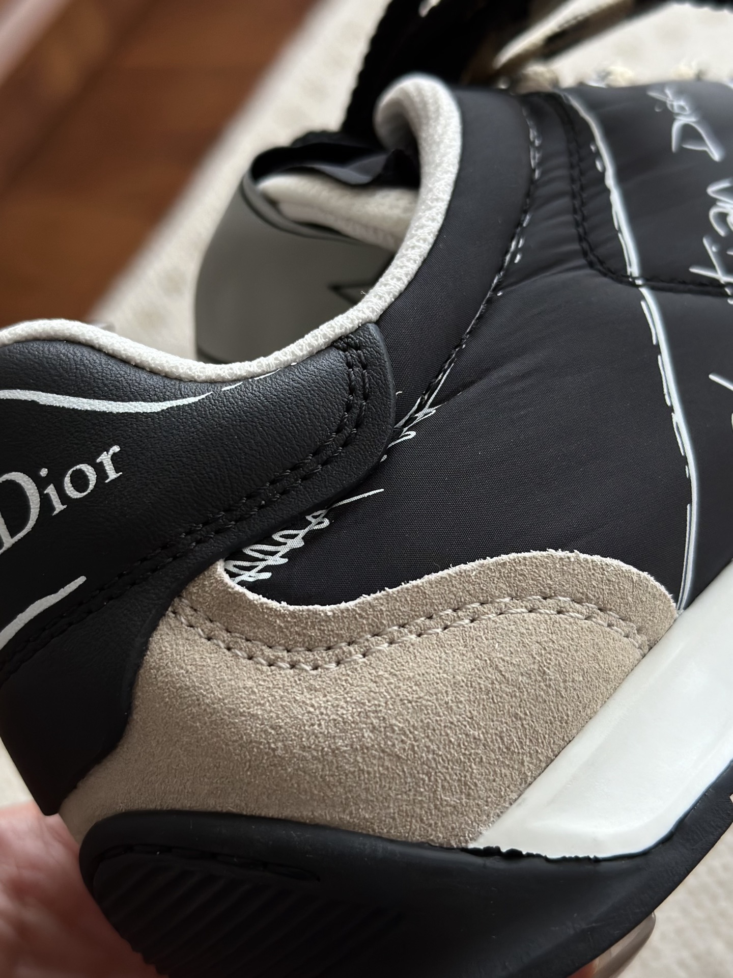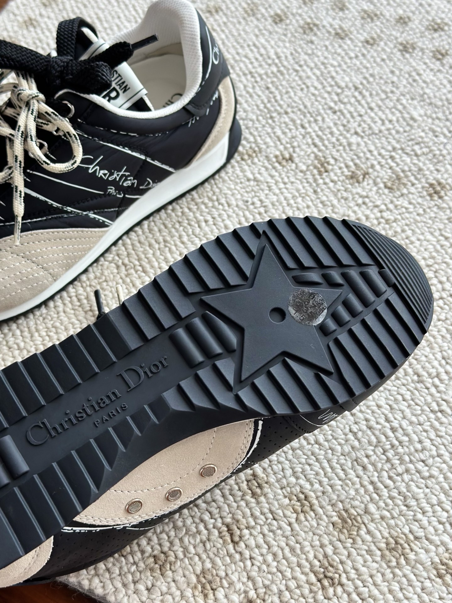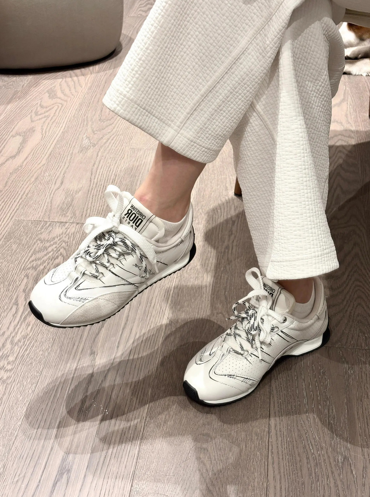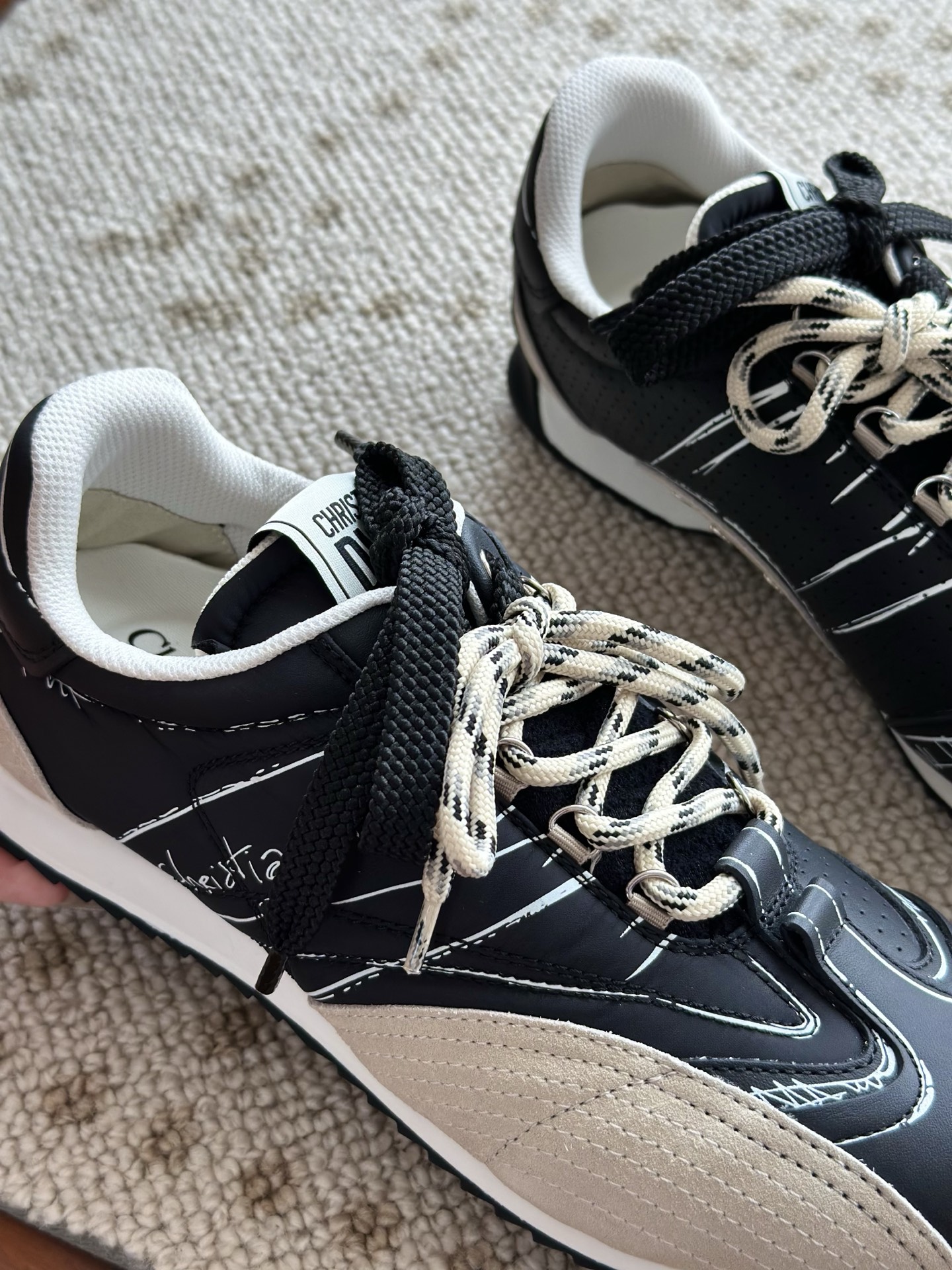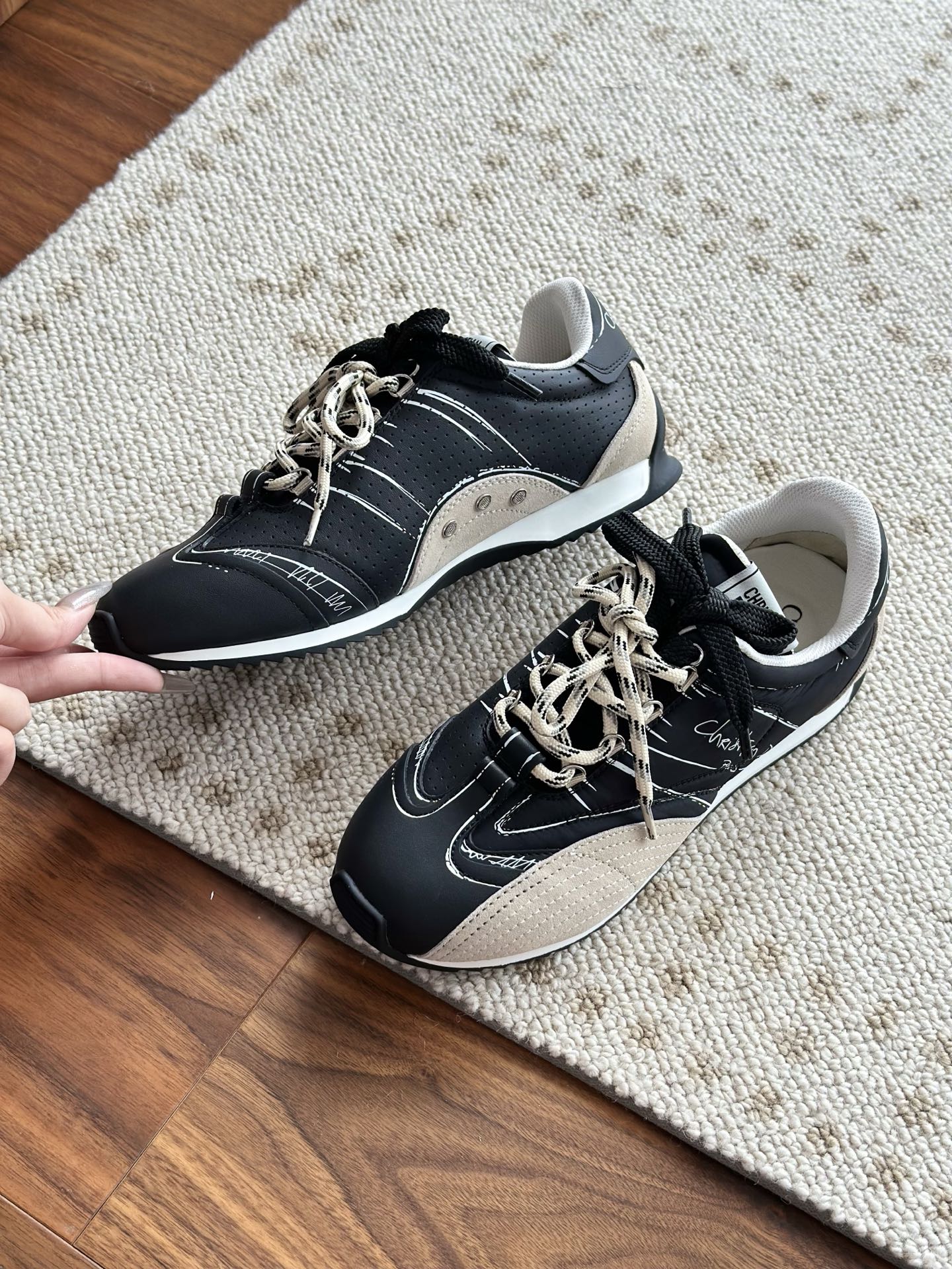 代购单 Dio*迪奥D-Sketch 25ss涂鸦运动跑鞋 迪奥春夏系列发布秀精彩亮相,彰显经典的复古美学。采用白色尼龙和牛皮革精心制作,饰以灵感源自鞋履制作阶段的印花标志,搭配米色绒面牛皮革镶片和双鞋带! 侧面饰以手写风格的Christian Dior Paris标志,鞋跟和鞋舌点缀以Christian Dior Paris标志镶片和标牌! 搭配双色纤薄橡胶鞋底更显精致,可为各式休闲造型增添高定气质! 鞋面:麂皮/进口牛皮/原版尼龙 内里:原版透气网眼材质 鞋底:Tpu原版橡胶鞋底 码数:35-40