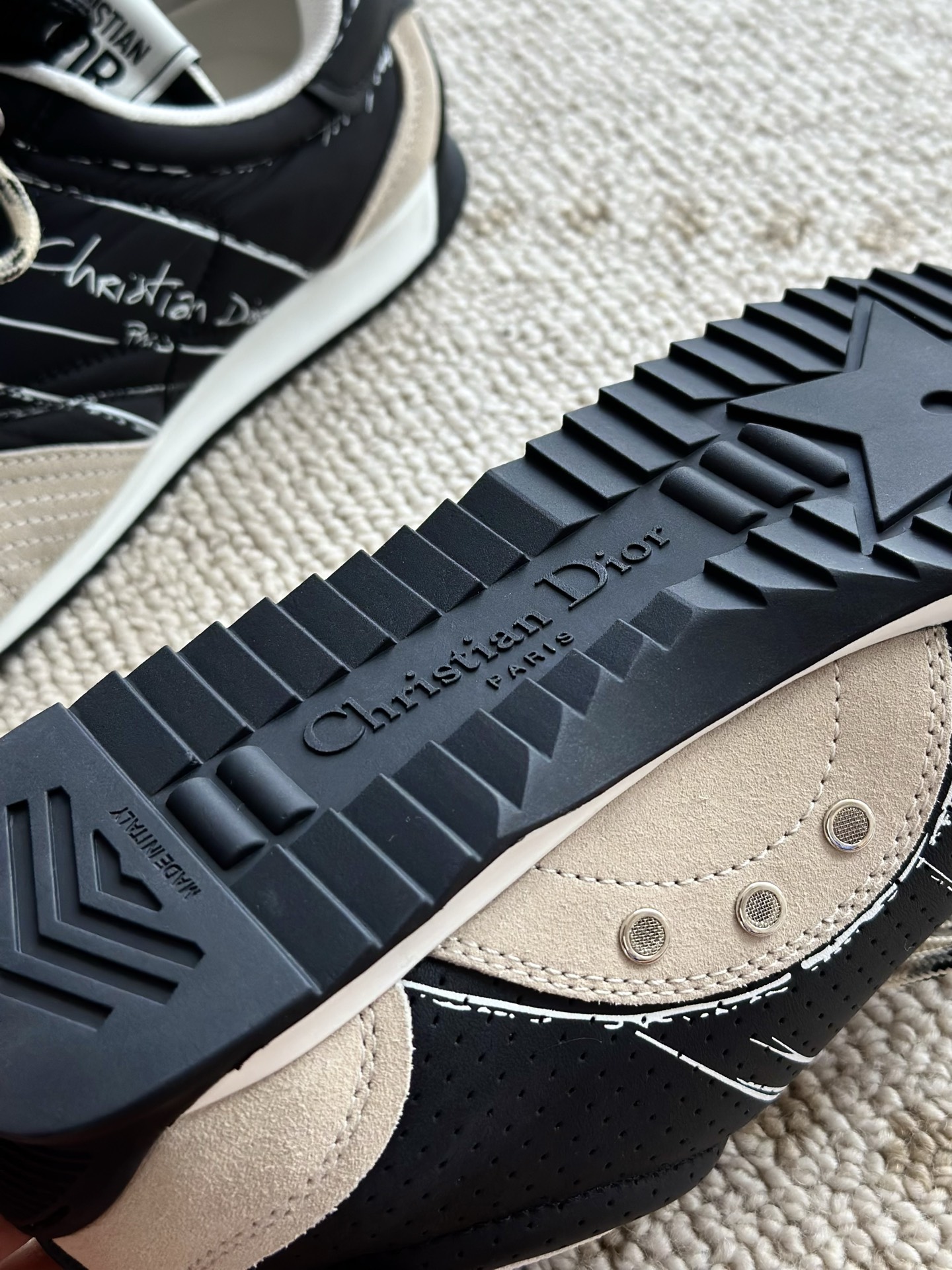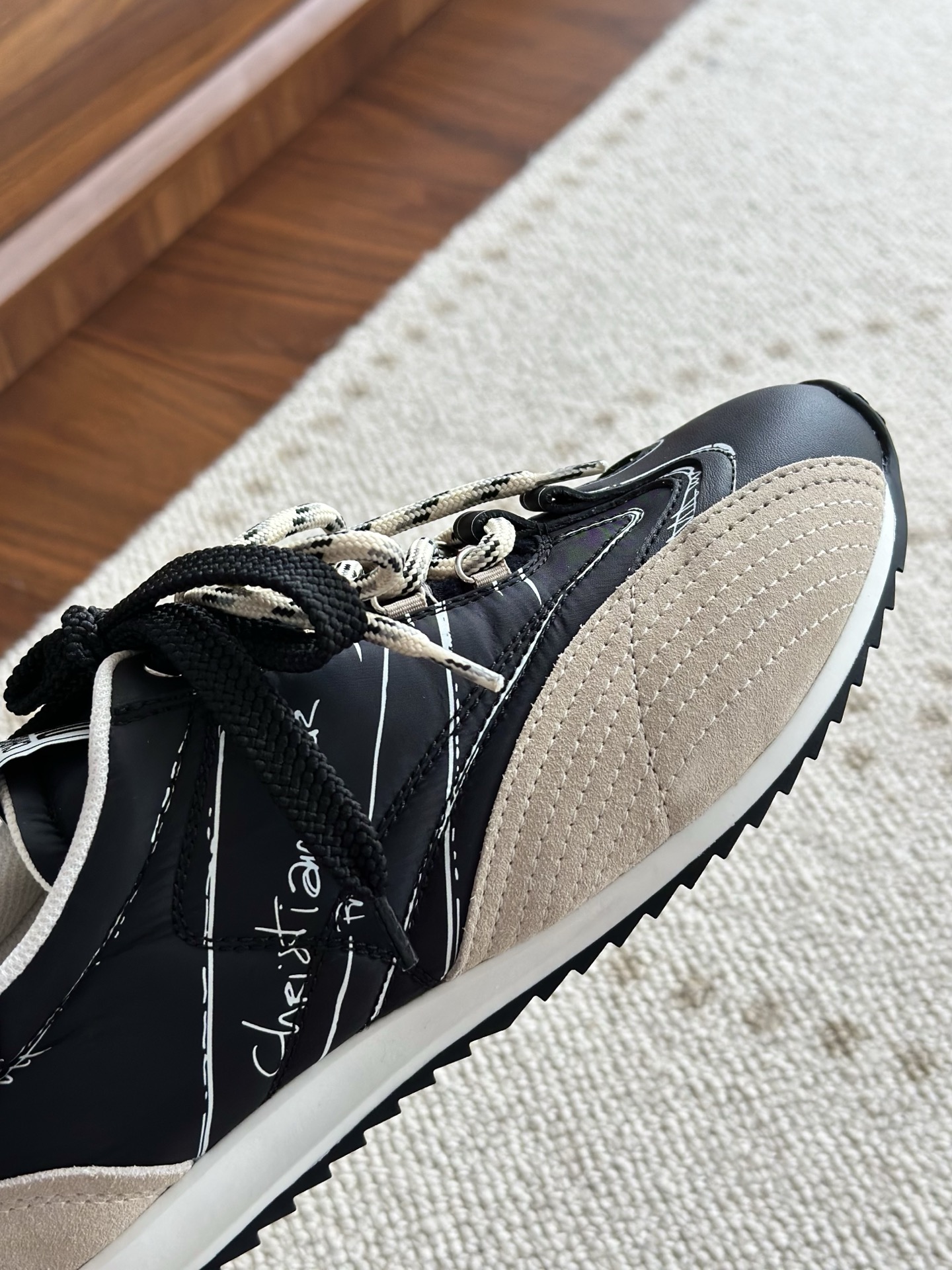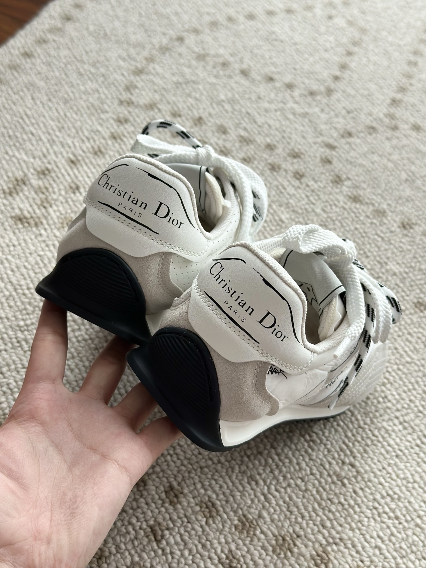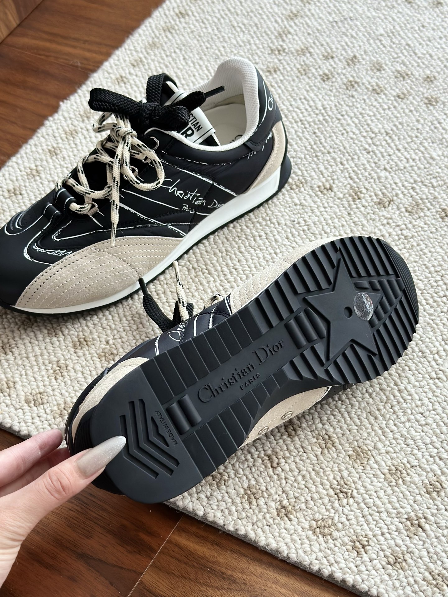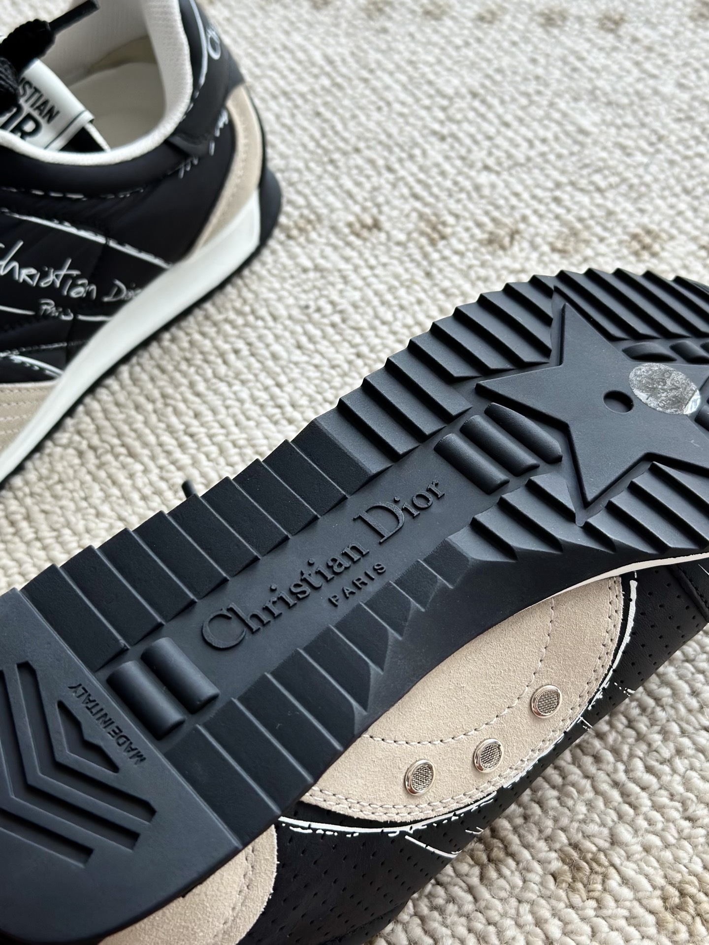 代购单 Dio*迪奥D-Sketch 25ss涂鸦运动跑鞋 迪奥春夏系列发布秀精彩亮相,彰显经典的复古美学。采用白色尼龙和牛皮革精心制作,饰以灵感源自鞋履制作阶段的印花标志,搭配米色绒面牛皮革镶片和双鞋带! 侧面饰以手写风格的Christian Dior Paris标志,鞋跟和鞋舌点缀以Christian Dior Paris标志镶片和标牌! 搭配双色纤薄橡胶鞋底更显精致,可为各式休闲造型增添高定气质! 鞋面:麂皮/进口牛皮/原版尼龙 内里:原版透气网眼材质 鞋底:Tpu原版橡胶鞋底 码数:35-40