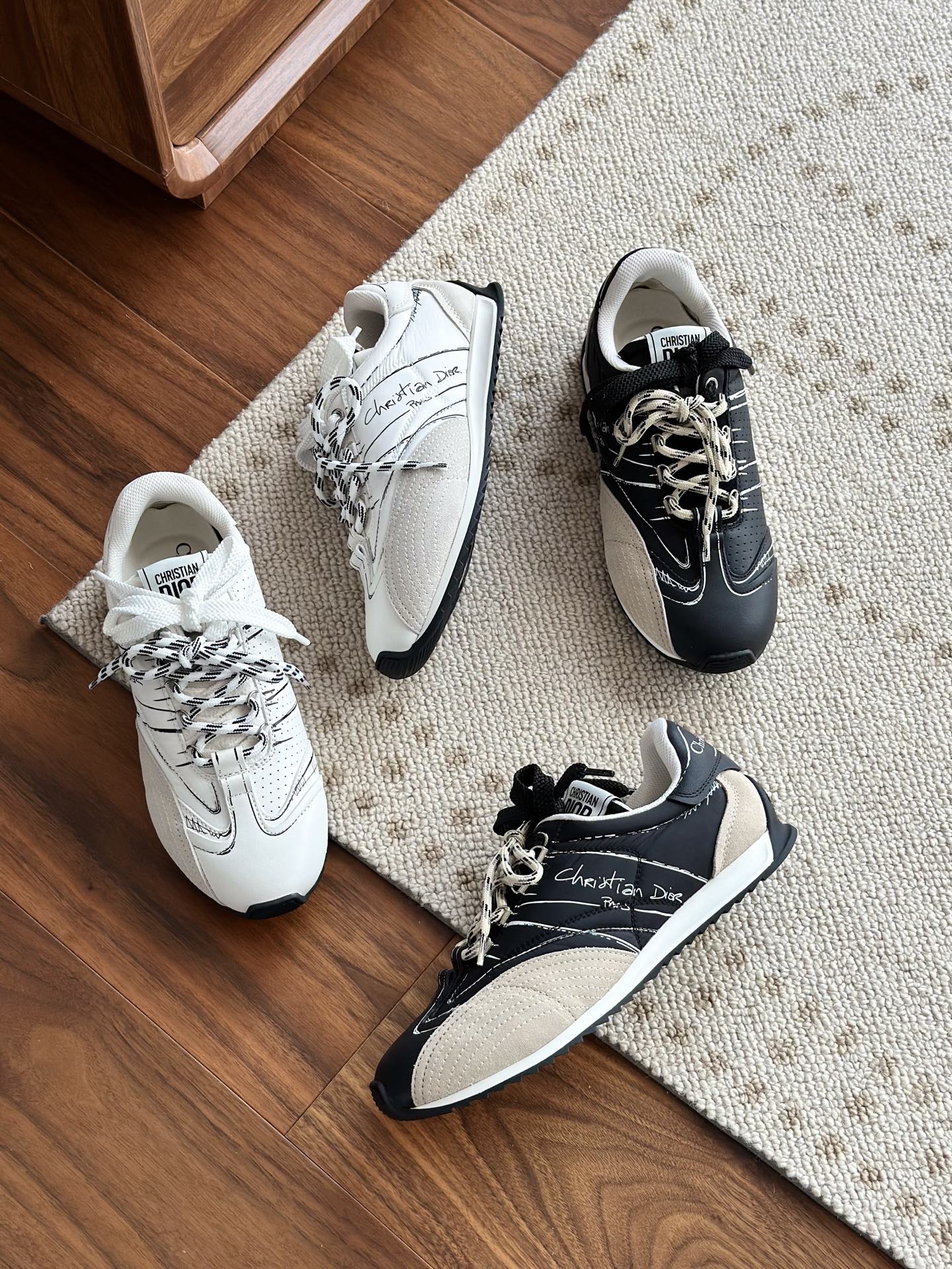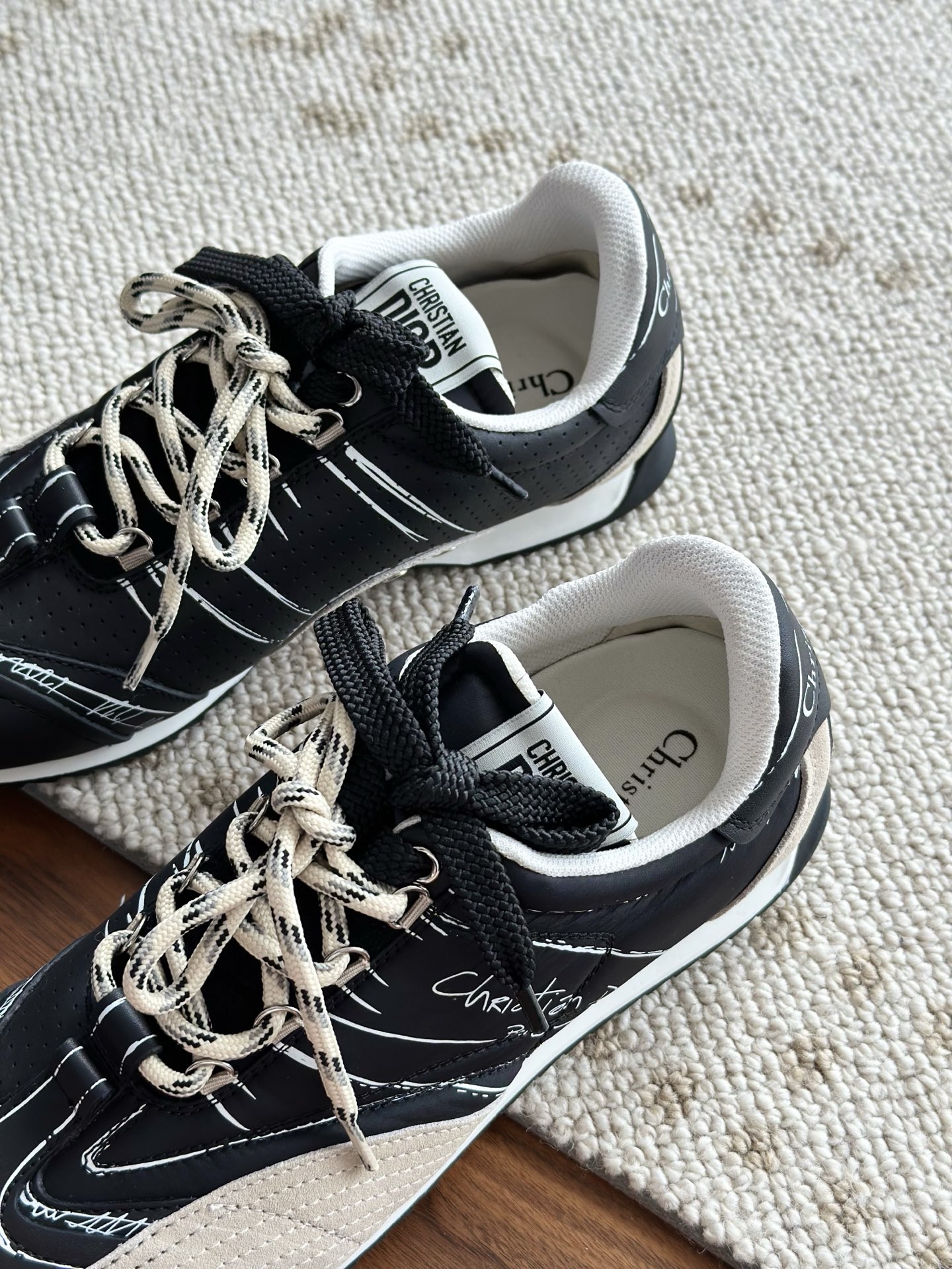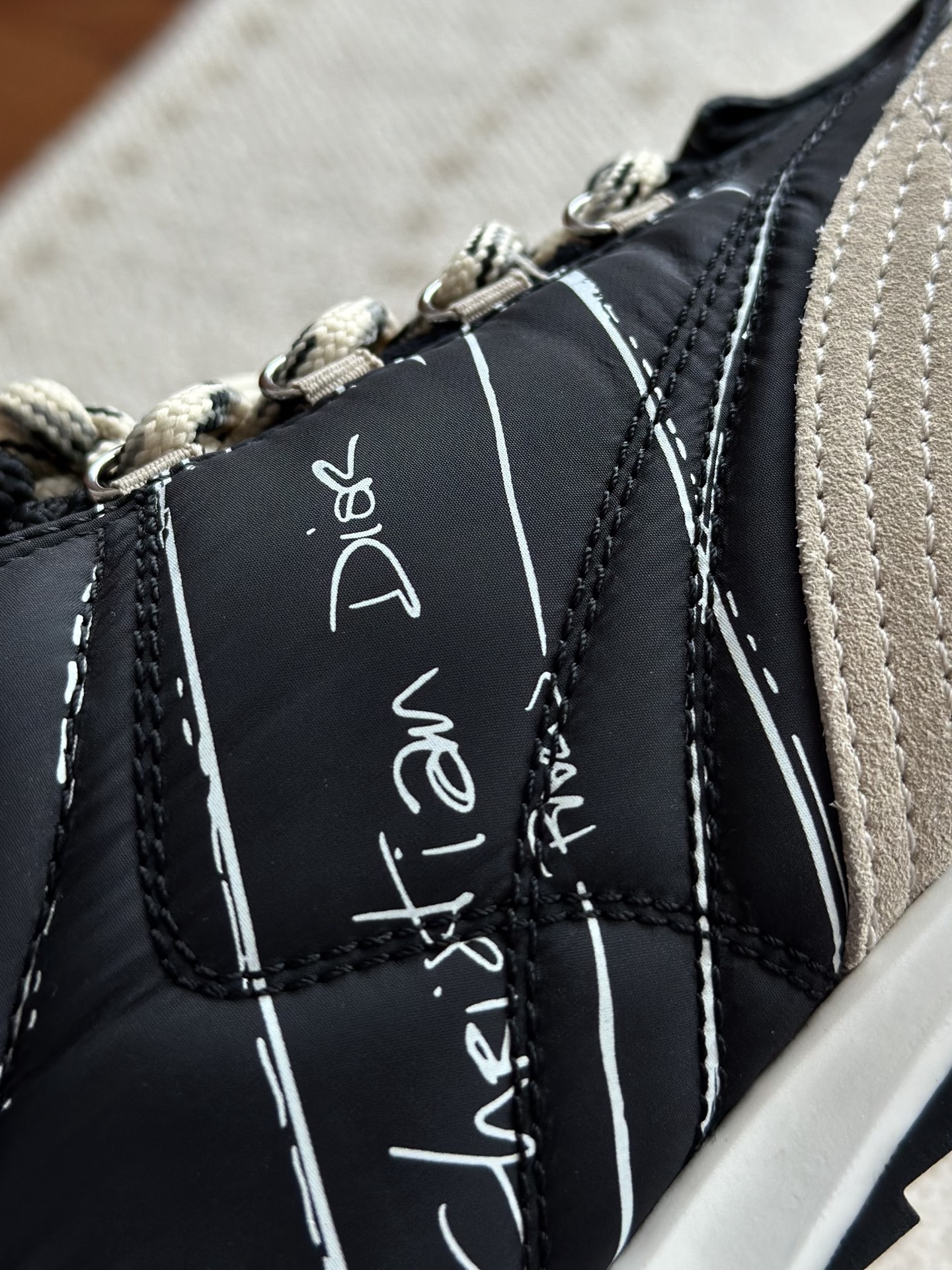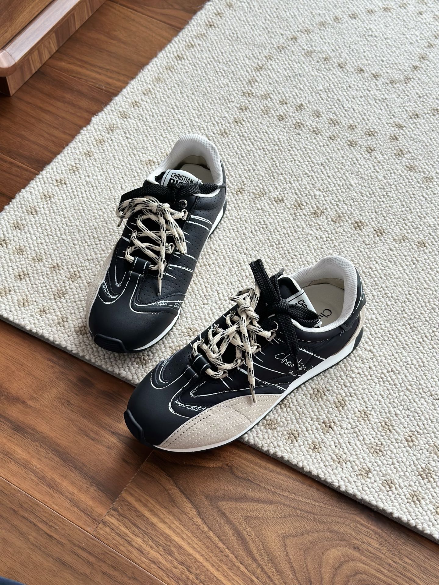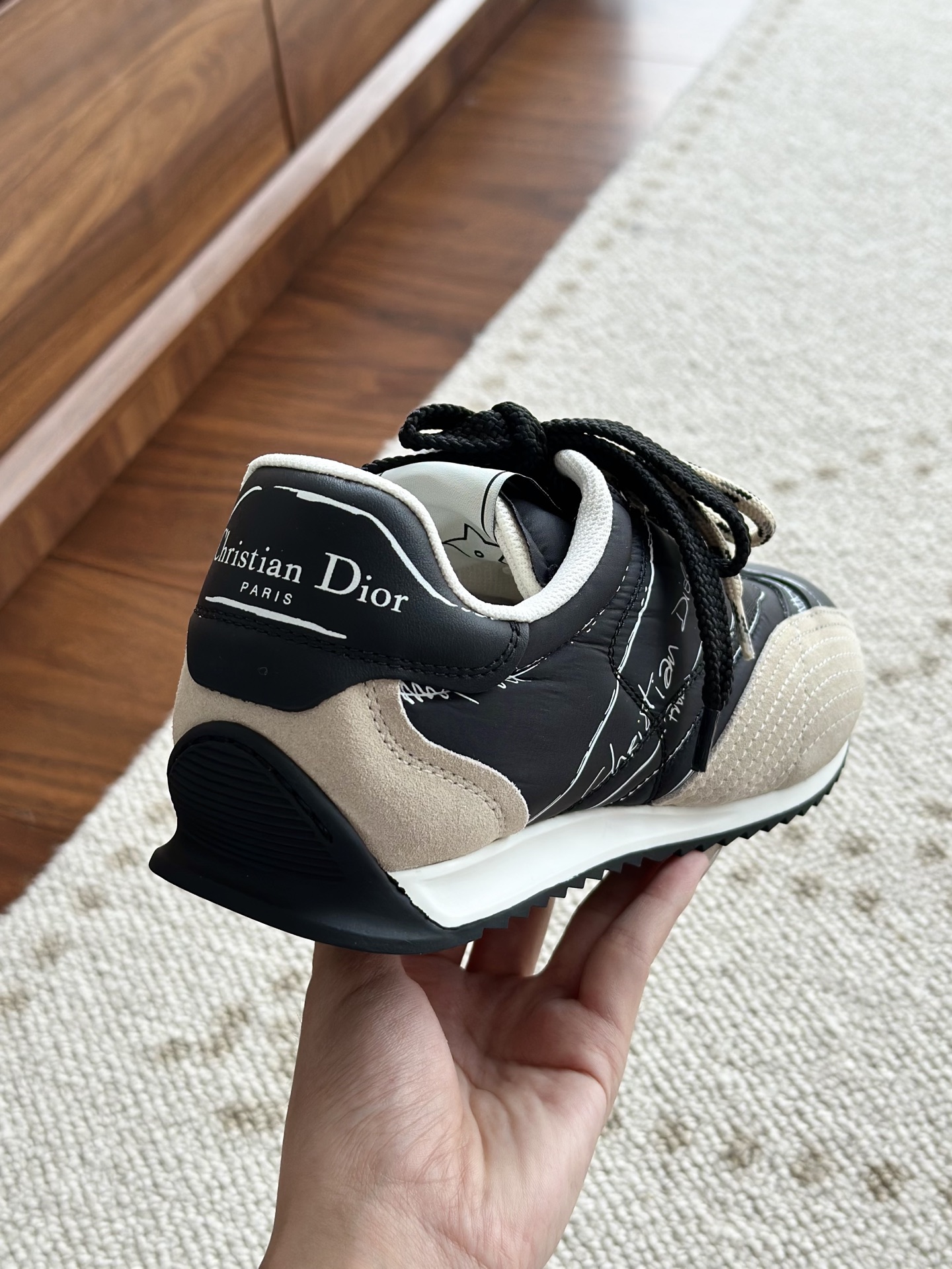 代购单 Dio*迪奥D-Sketch 25ss涂鸦运动跑鞋 迪奥春夏系列发布秀精彩亮相,彰显经典的复古美学。采用白色尼龙和牛皮革精心制作,饰以灵感源自鞋履制作阶段的印花标志,搭配米色绒面牛皮革镶片和双鞋带! 侧面饰以手写风格的Christian Dior Paris标志,鞋跟和鞋舌点缀以Christian Dior Paris标志镶片和标牌! 搭配双色纤薄橡胶鞋底更显精致,可为各式休闲造型增添高定气质! 鞋面:麂皮/进口牛皮/原版尼龙 内里:原版透气网眼材质 鞋底:Tpu原版橡胶鞋底 码数:35-40