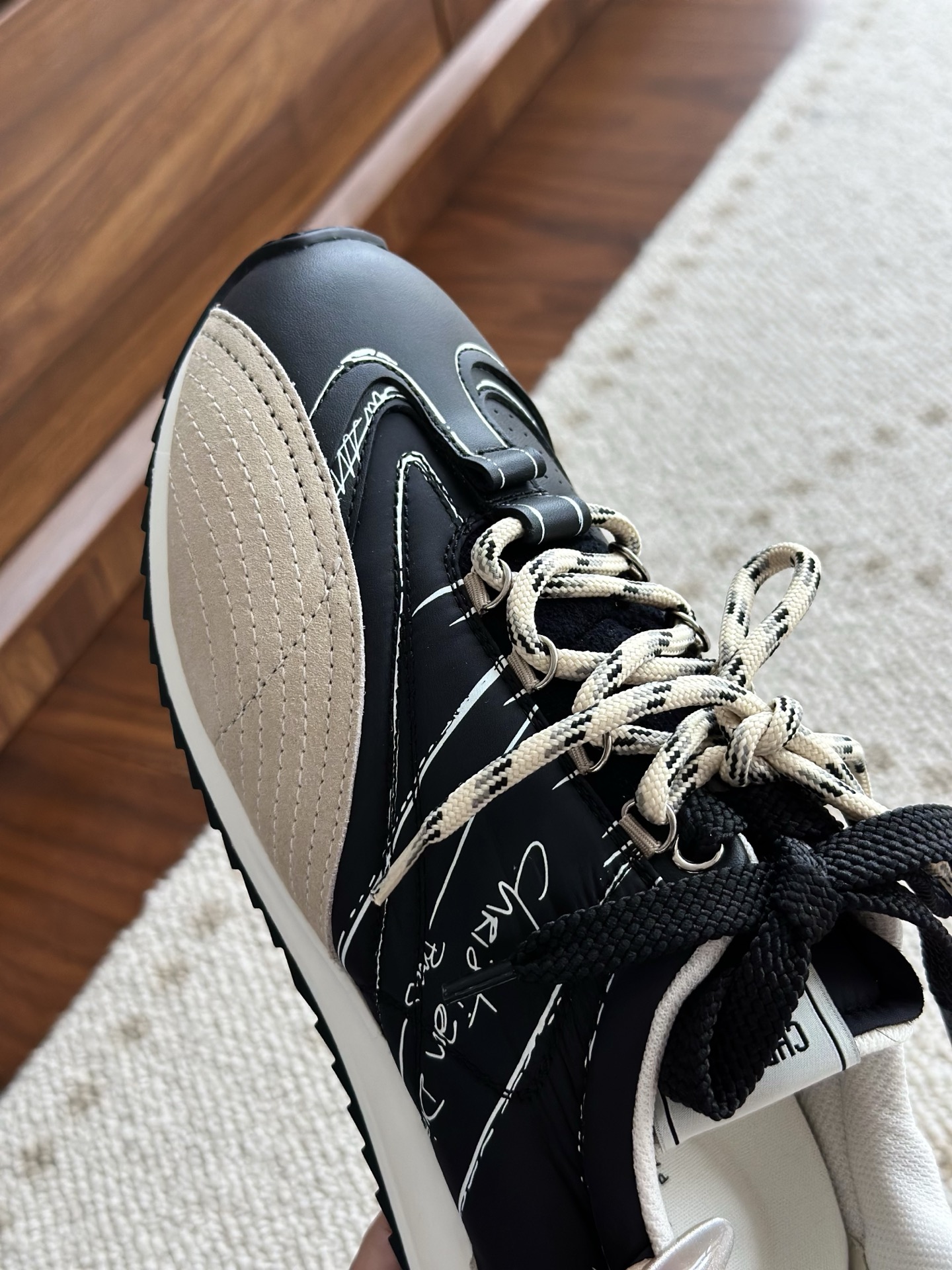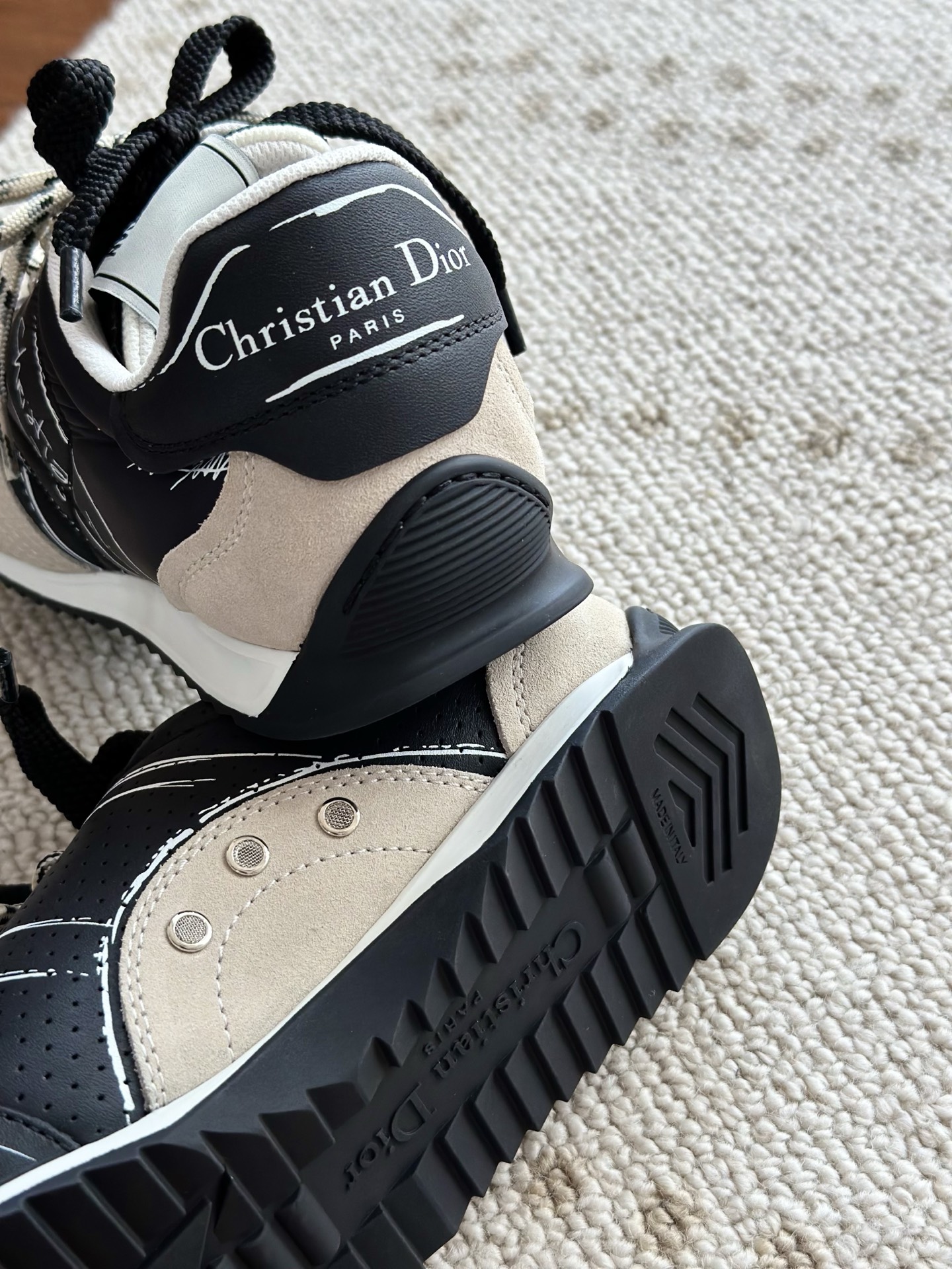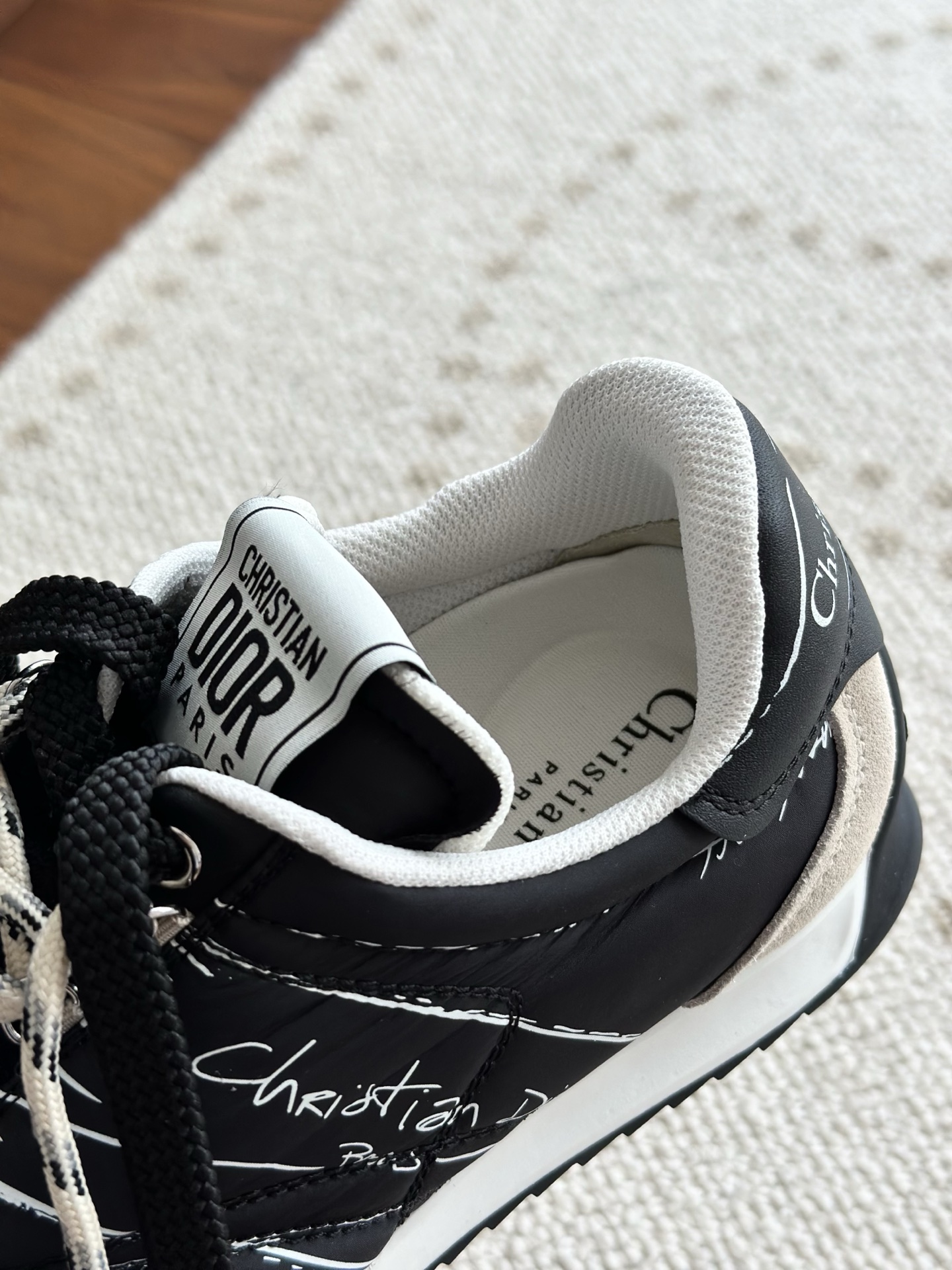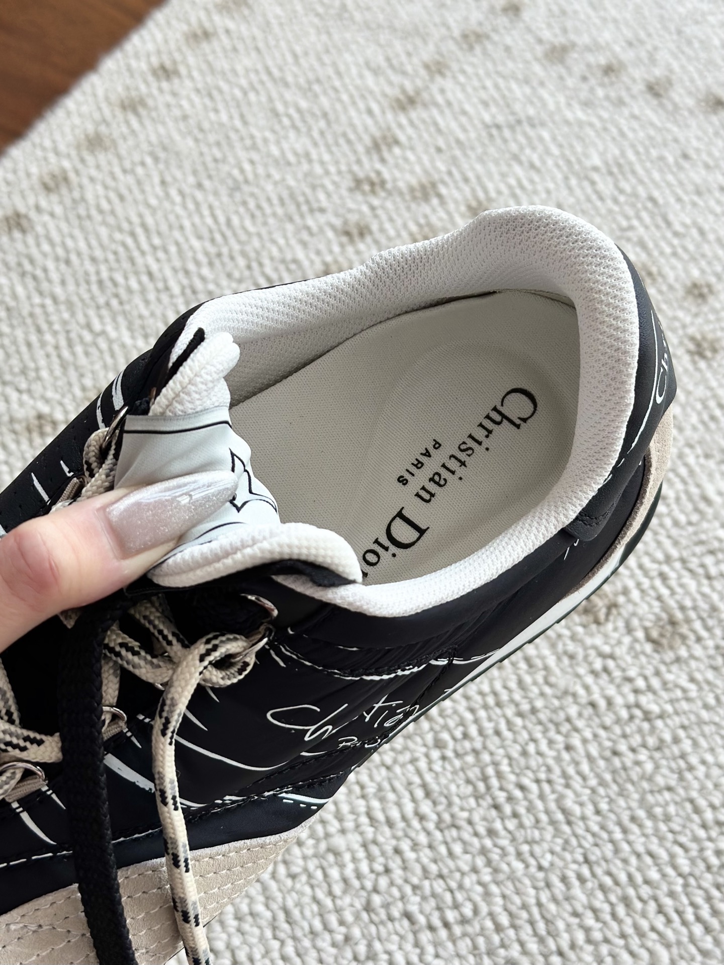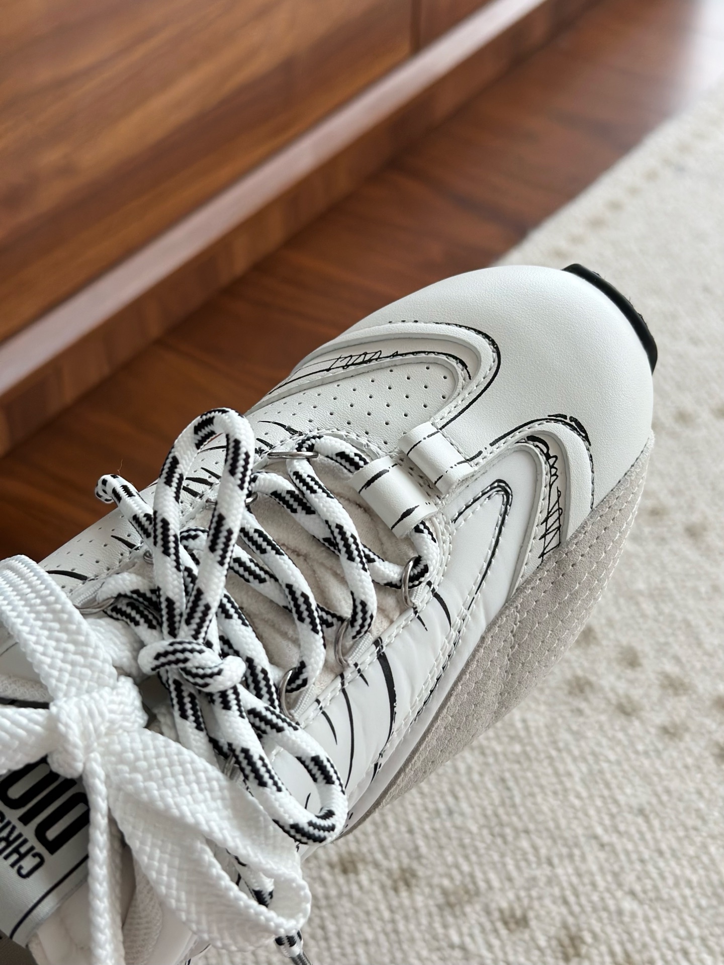 代购单 Dio*迪奥D-Sketch 25ss涂鸦运动跑鞋 迪奥春夏系列发布秀精彩亮相,彰显经典的复古美学。采用白色尼龙和牛皮革精心制作,饰以灵感源自鞋履制作阶段的印花标志,搭配米色绒面牛皮革镶片和双鞋带! 侧面饰以手写风格的Christian Dior Paris标志,鞋跟和鞋舌点缀以Christian Dior Paris标志镶片和标牌! 搭配双色纤薄橡胶鞋底更显精致,可为各式休闲造型增添高定气质! 鞋面:麂皮/进口牛皮/原版尼龙 内里:原版透气网眼材质 鞋底:Tpu原版橡胶鞋底 码数:35-40