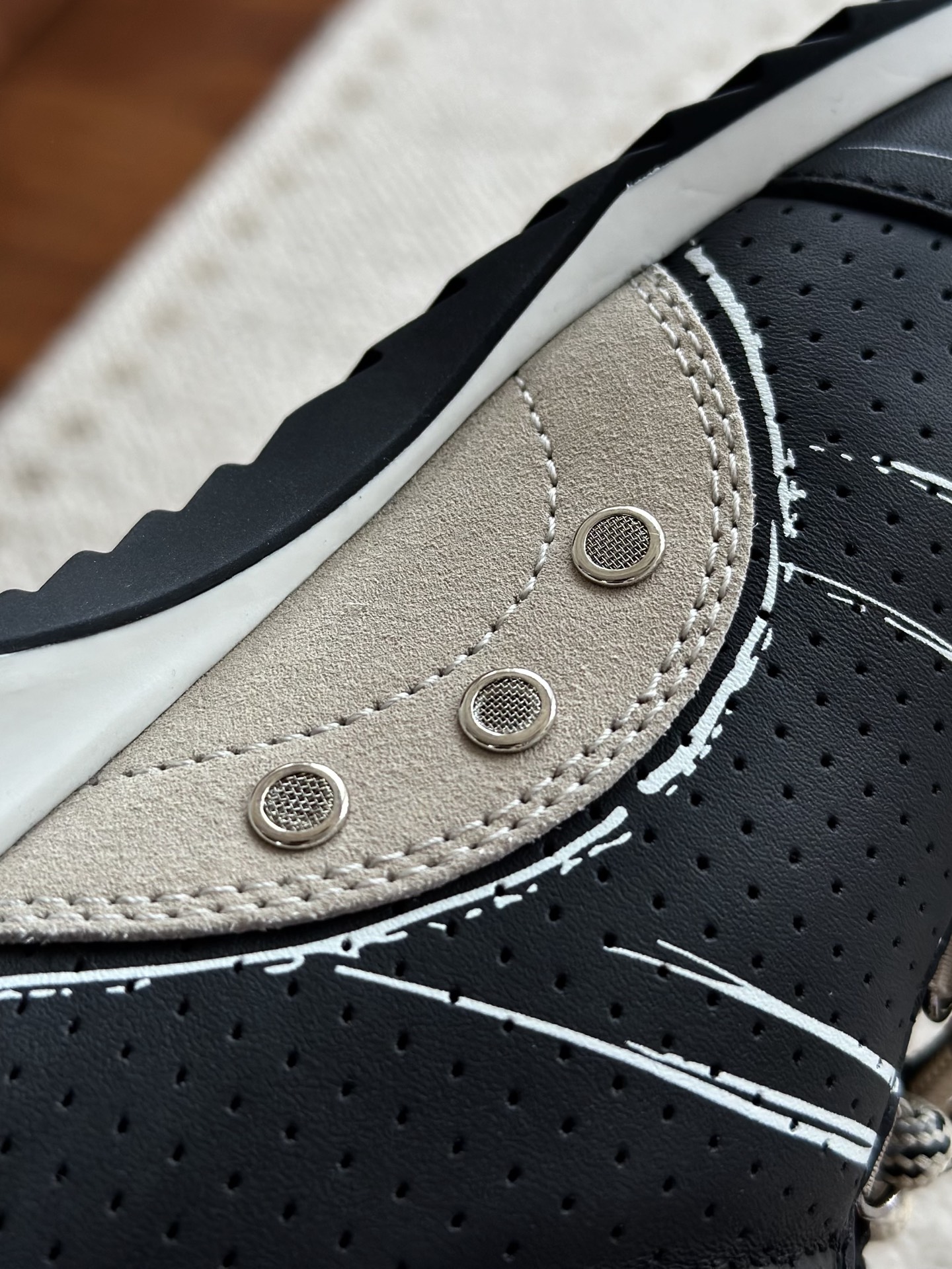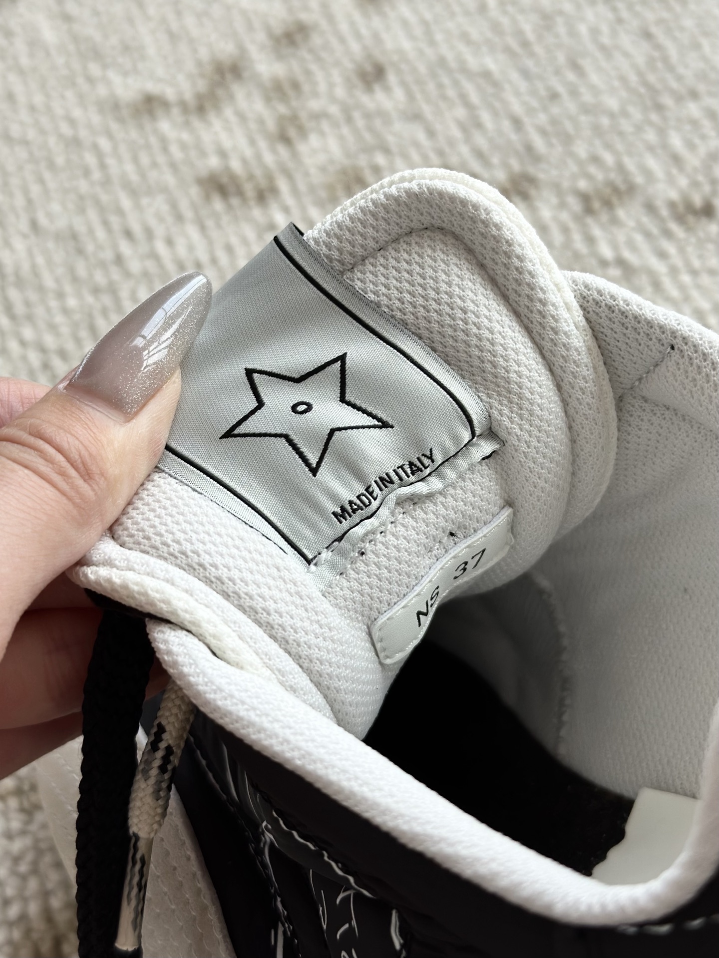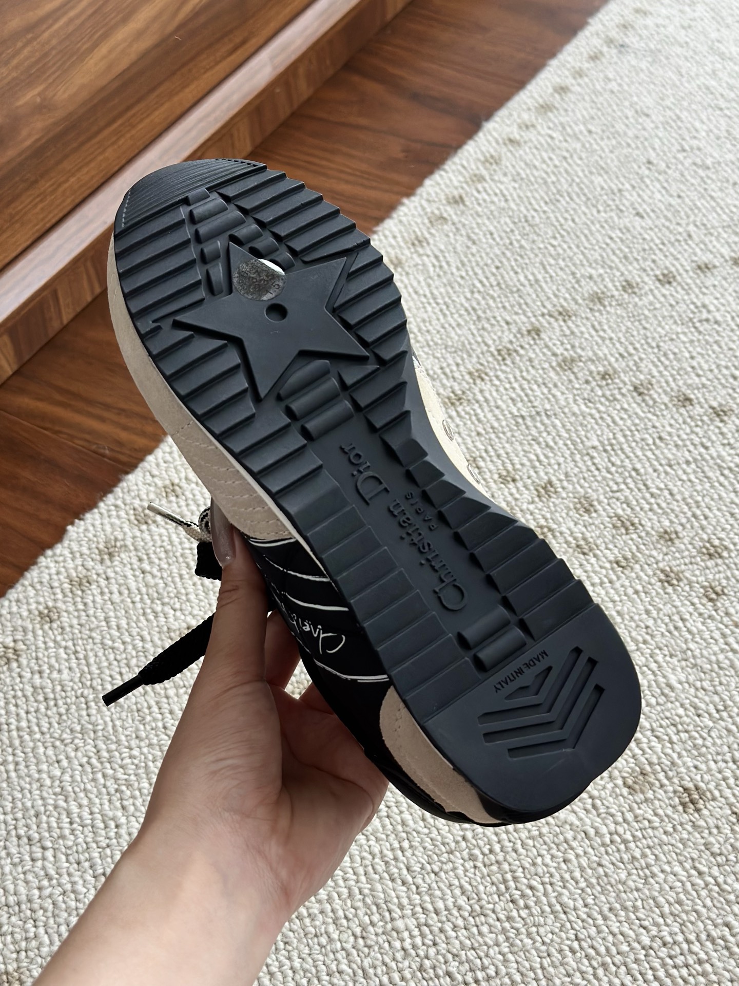 同步正品橡胶大底 具有非常好的耐磨性和抓地力 我们的橡胶用指甲用力刮也不会有任何痕迹 市面含较低的会泛白!注意区分