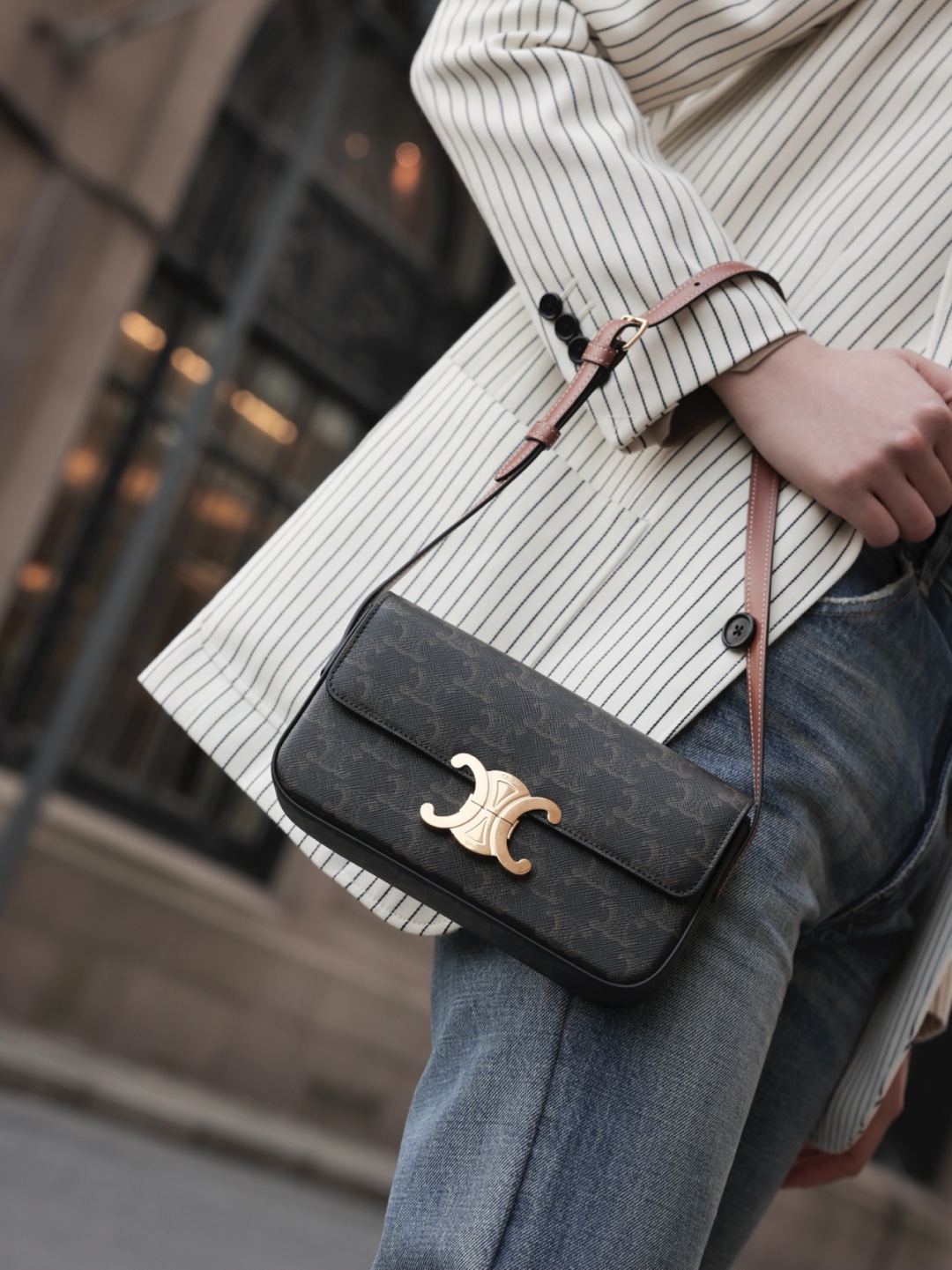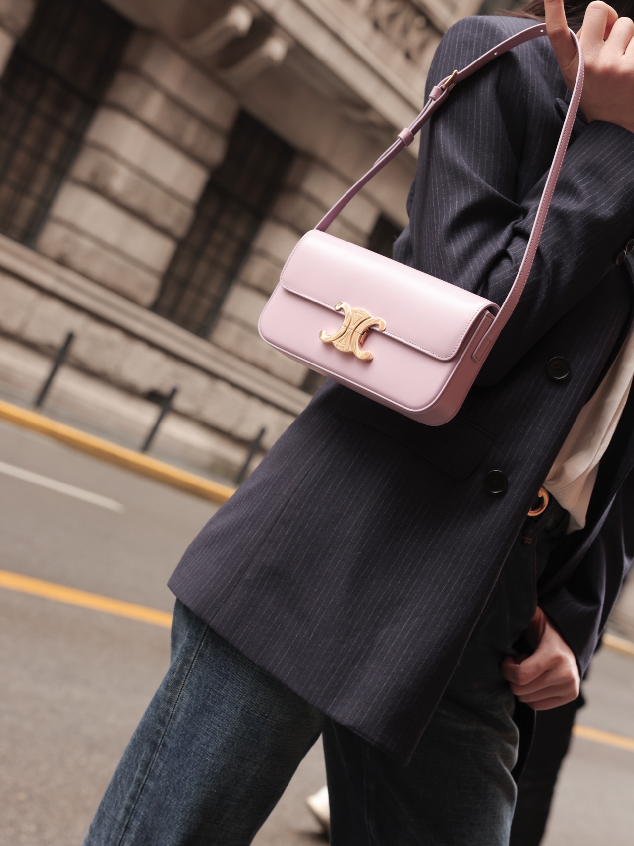 𝗖𝗘𝗟𝗜𝗡𝗘 | 𝗧𝗿𝗶𝗼𝗺𝗽𝗵𝗲 𝗦𝗵𝗼𝘂𝗹𝗱𝗲𝗿 𝗕𝗮𝗴 凯旋门腋下包〰️ 凯旋门与极简的灵感碰撞 美到心坎 包型简直黄金比例 小而精致 粉色 颜色太好看了! 上身时髦又百搭 满满的度假风 今年必买的包包清单上一定要有它的名字! 𝑠𝑖𝑧𝑒:𝟮𝟬*𝟭𝟬*𝟰𝒄𝒎