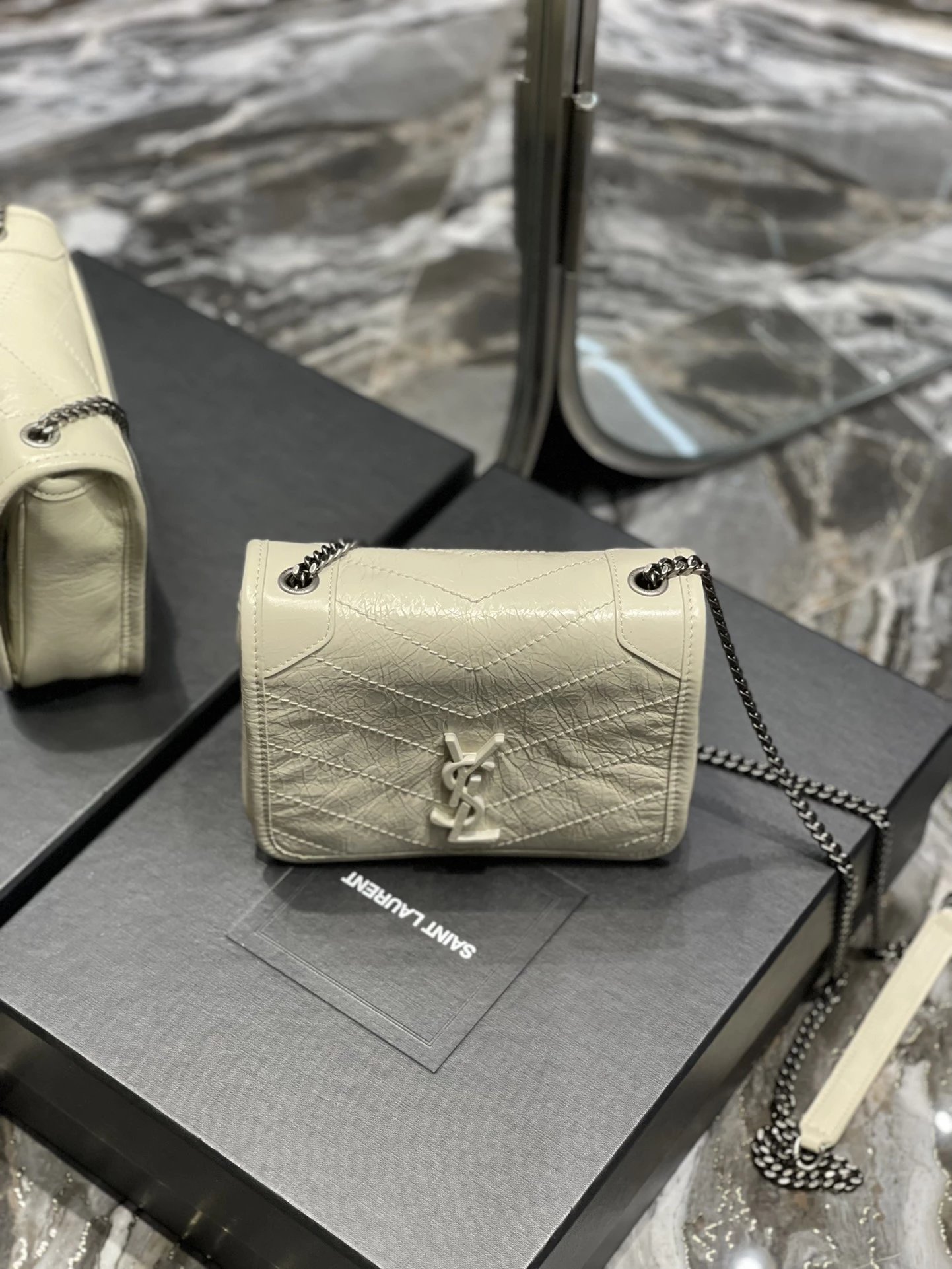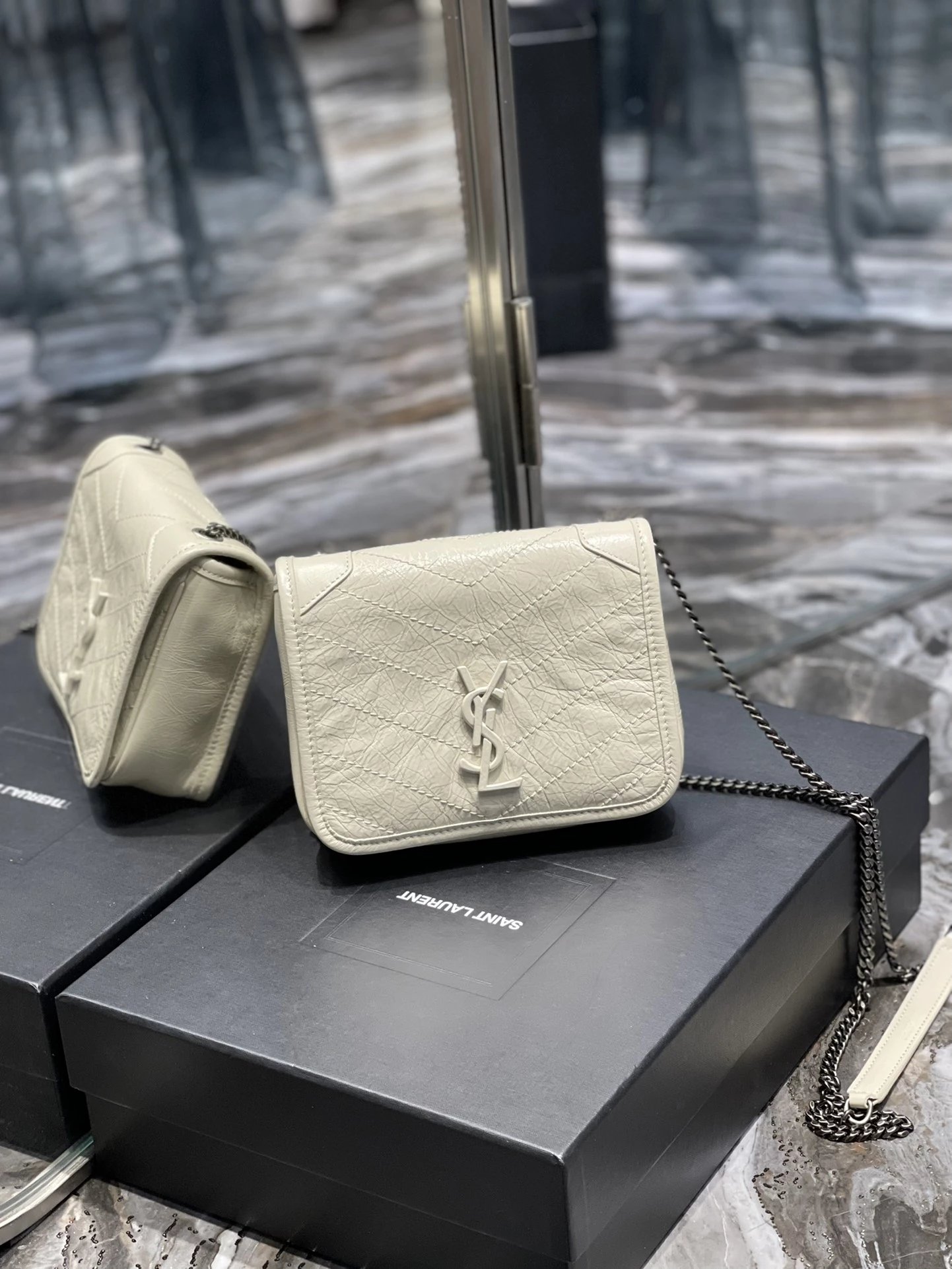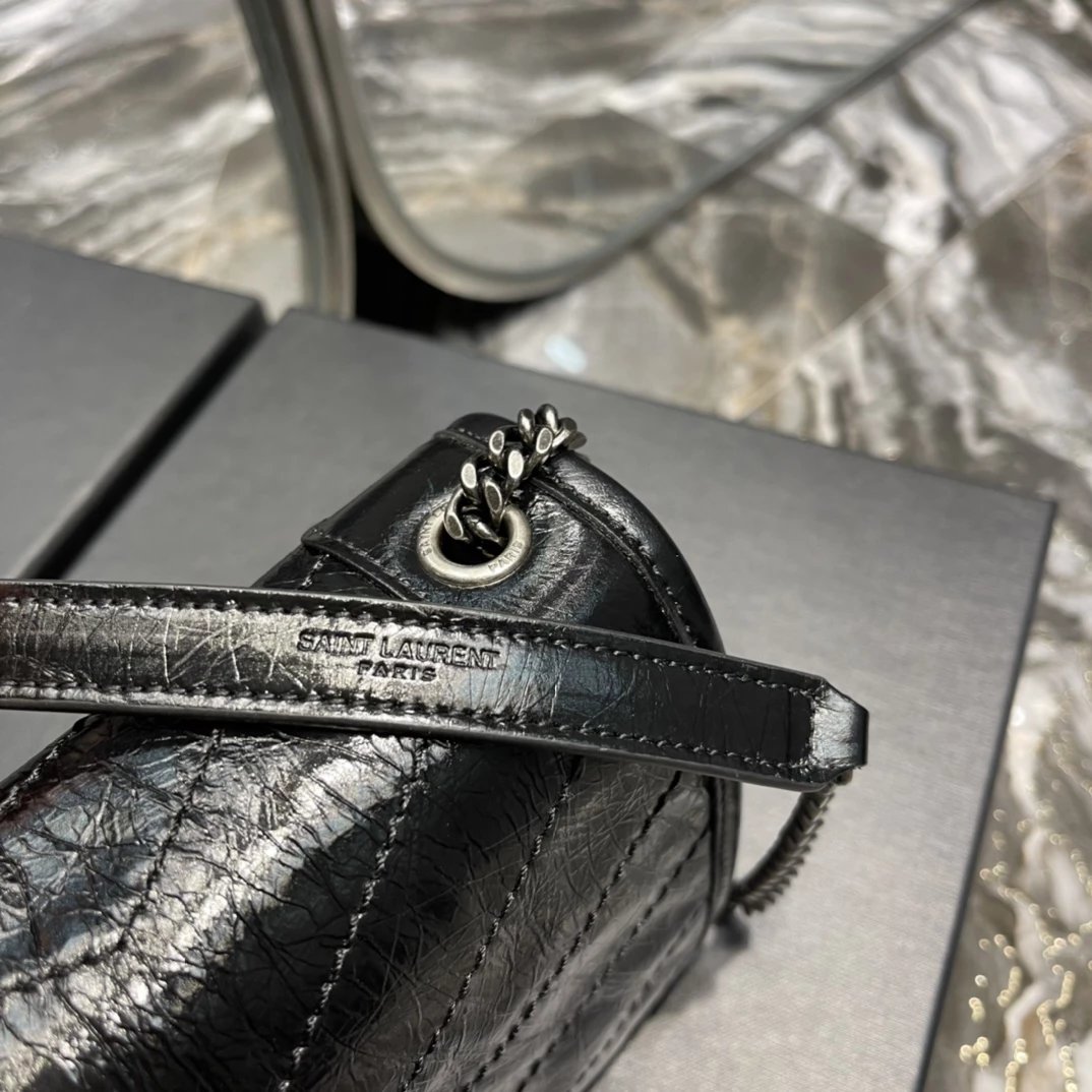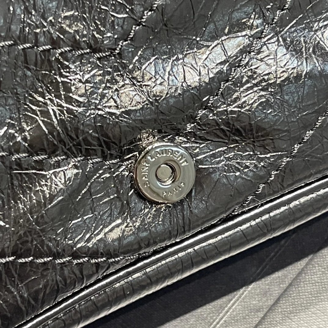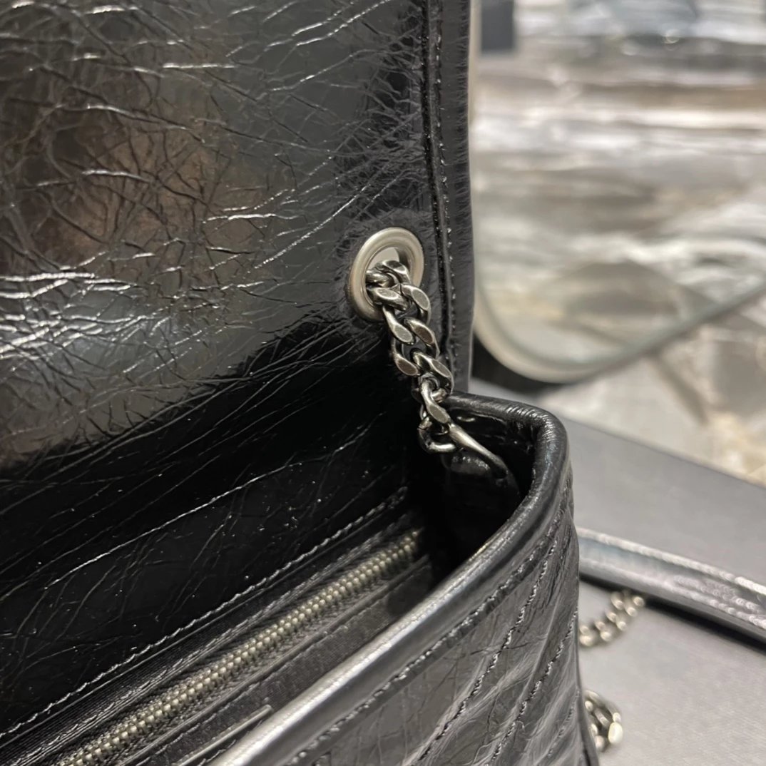 杨树林 Niki 百搭黑标Logo复古褶皱银链 牛皮 链条钱包斜挎单肩包 常规 女款(HH)