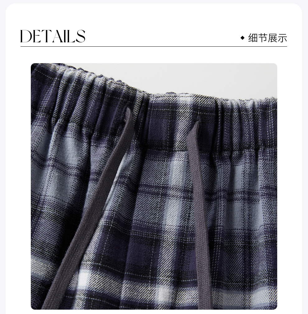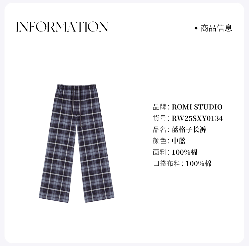 ROMI STUDIO“慵懒随性”纯棉磨毛松紧腰直筒格纹休闲裤RW25SXY0134