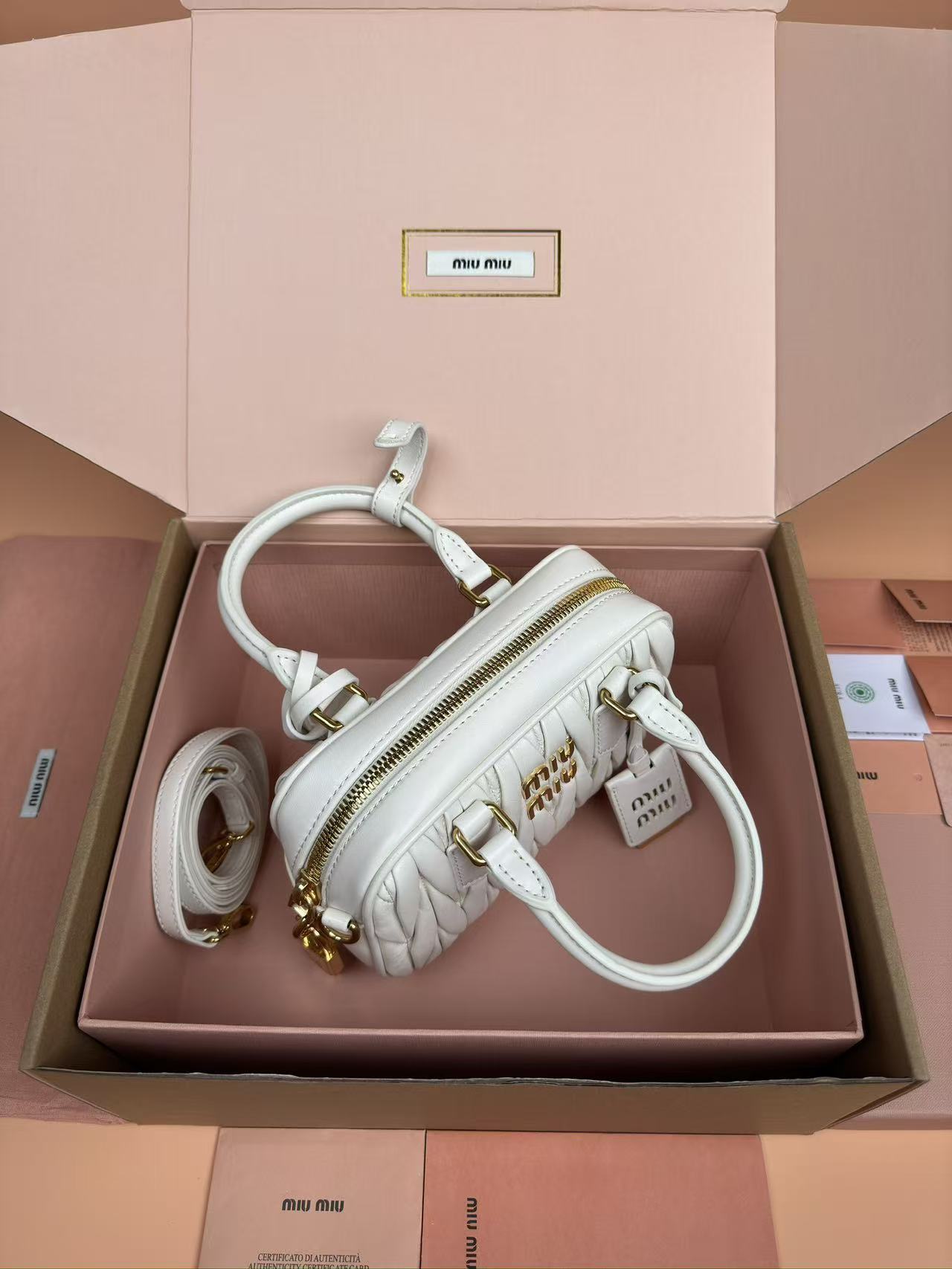 缪缪 too pretty 褶皱保龄球手袋 白色 羊皮(LZ)