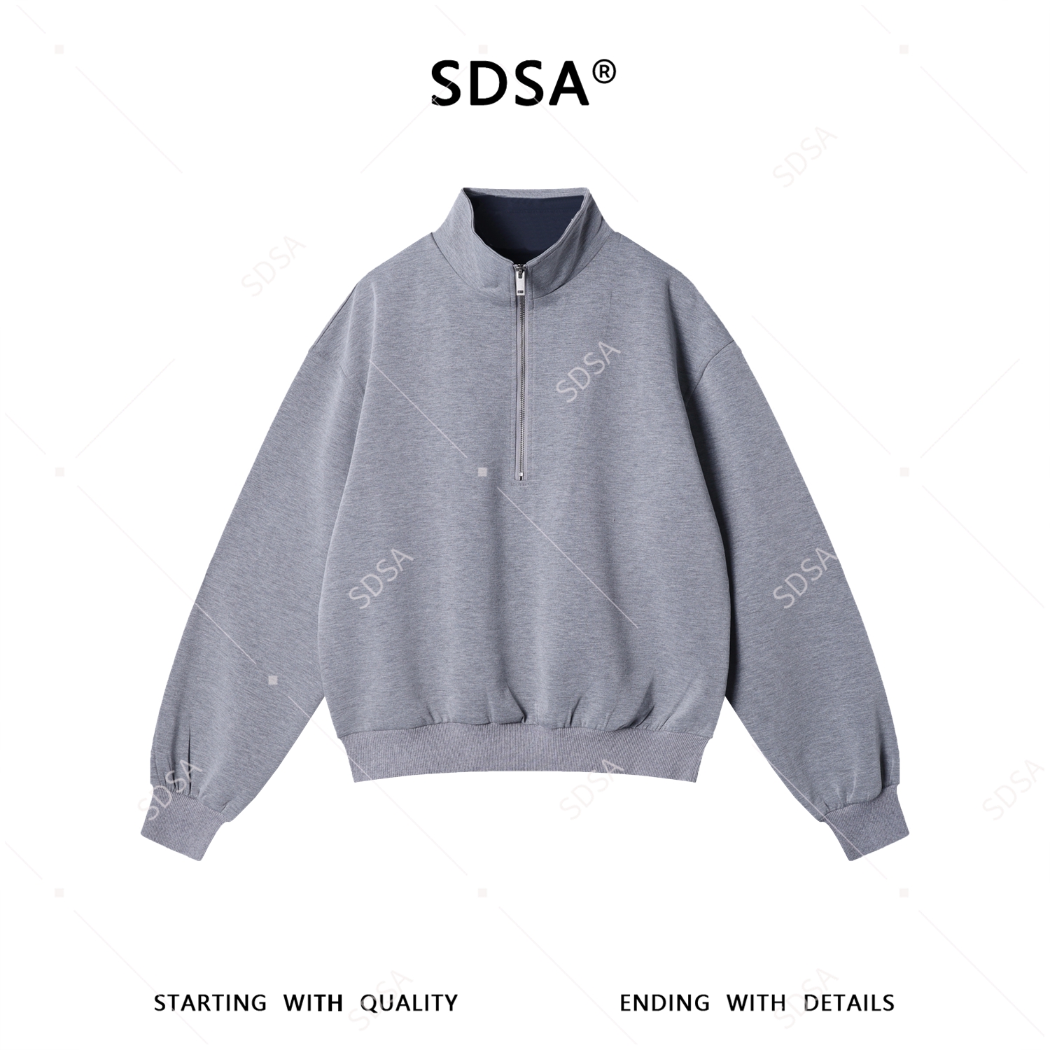 WY730SDSA春夏新款痞帅男装美式潮牌半拉链立领假两件卫衣百搭宽松上衣