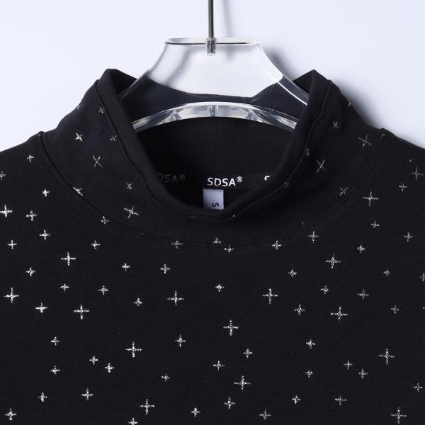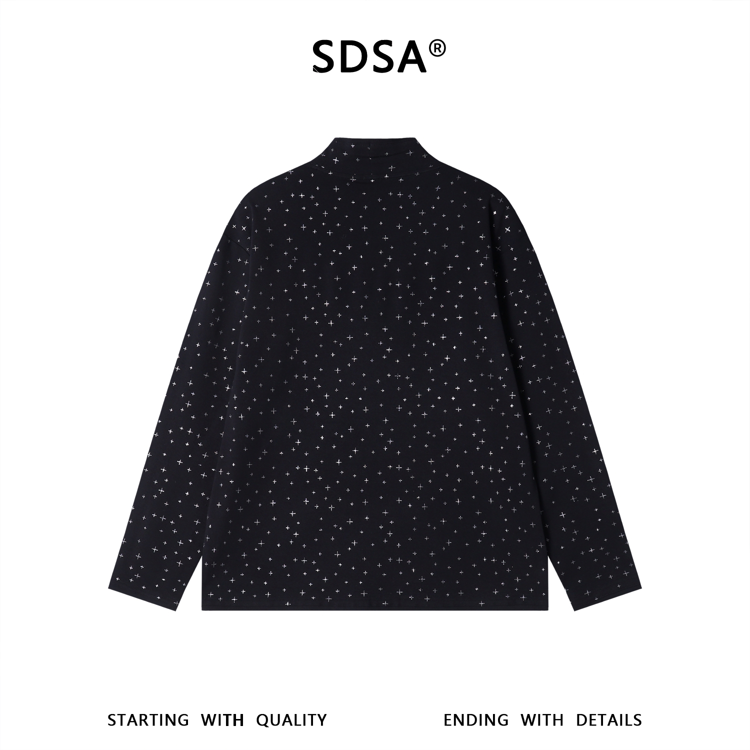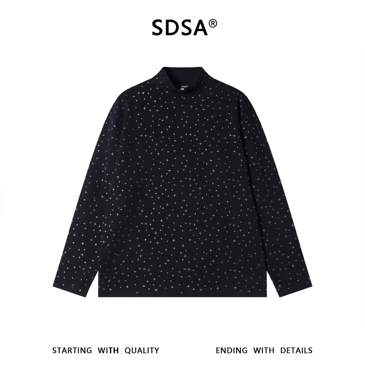 SDSA男士秋冬新款痞帅男装美式高街满印十字印花立领长袖T恤百搭