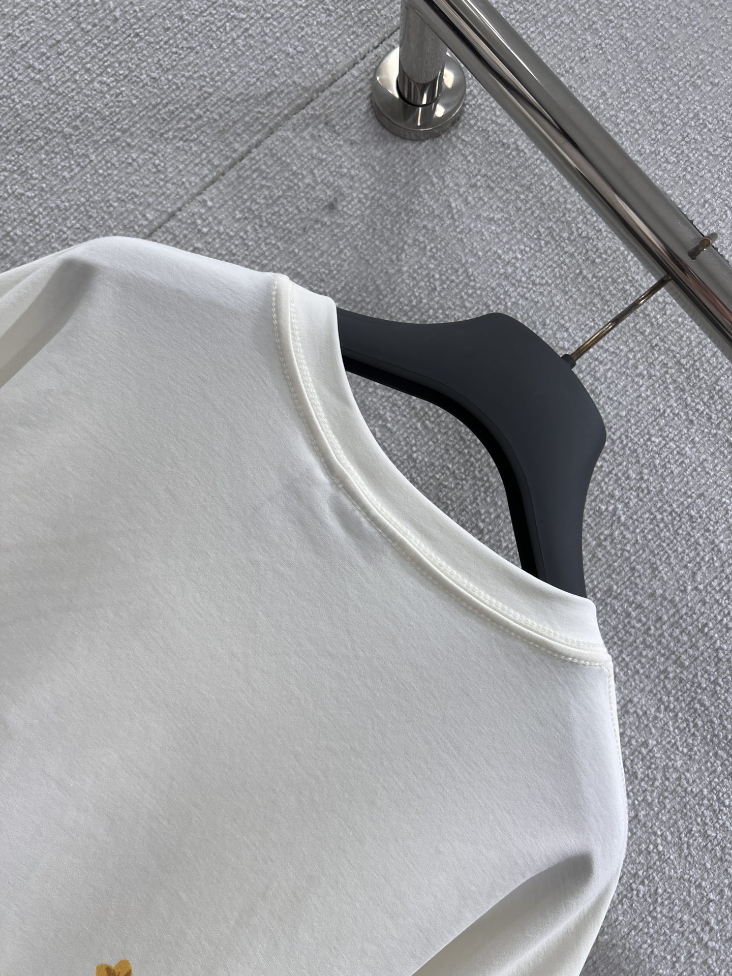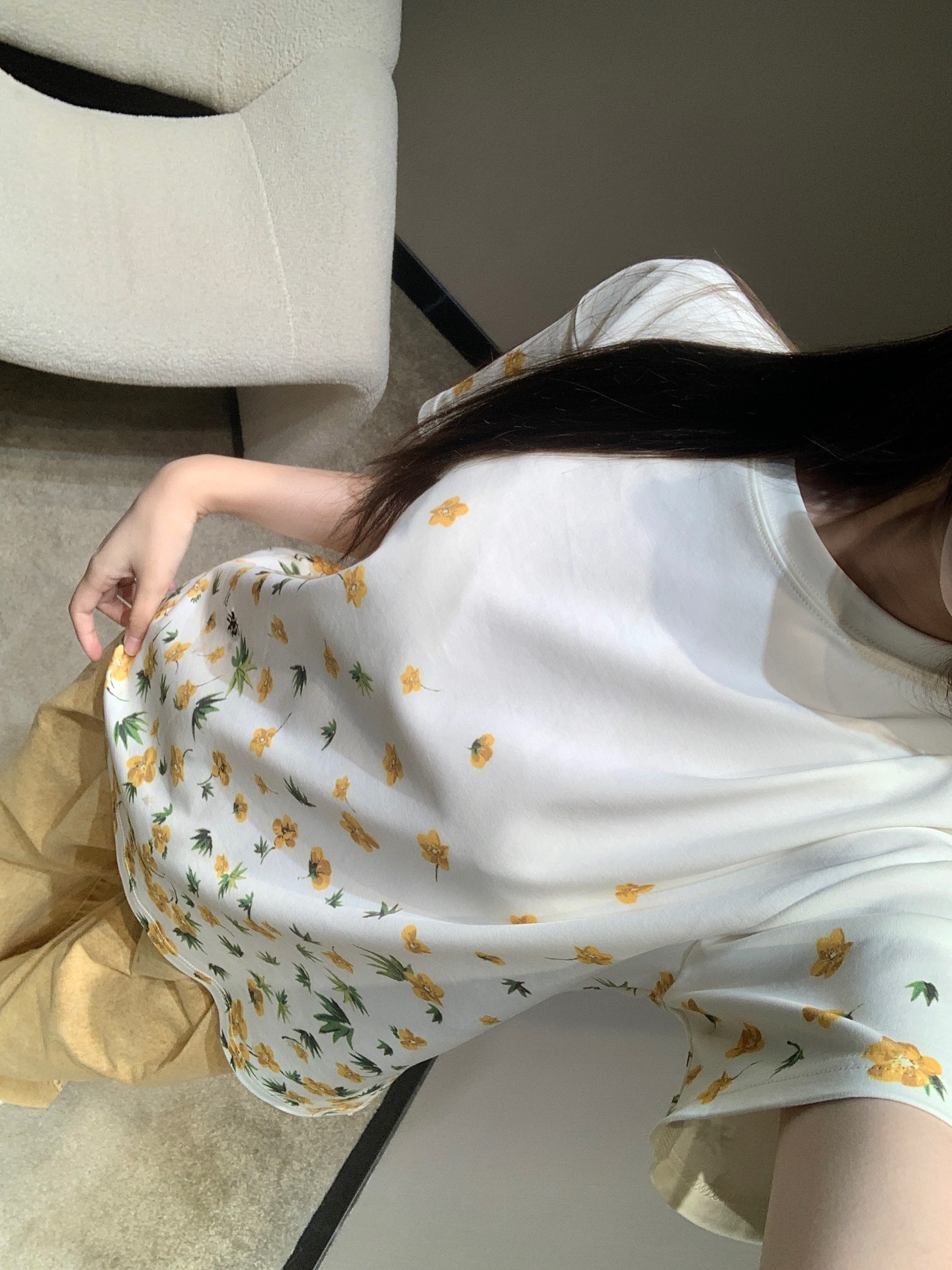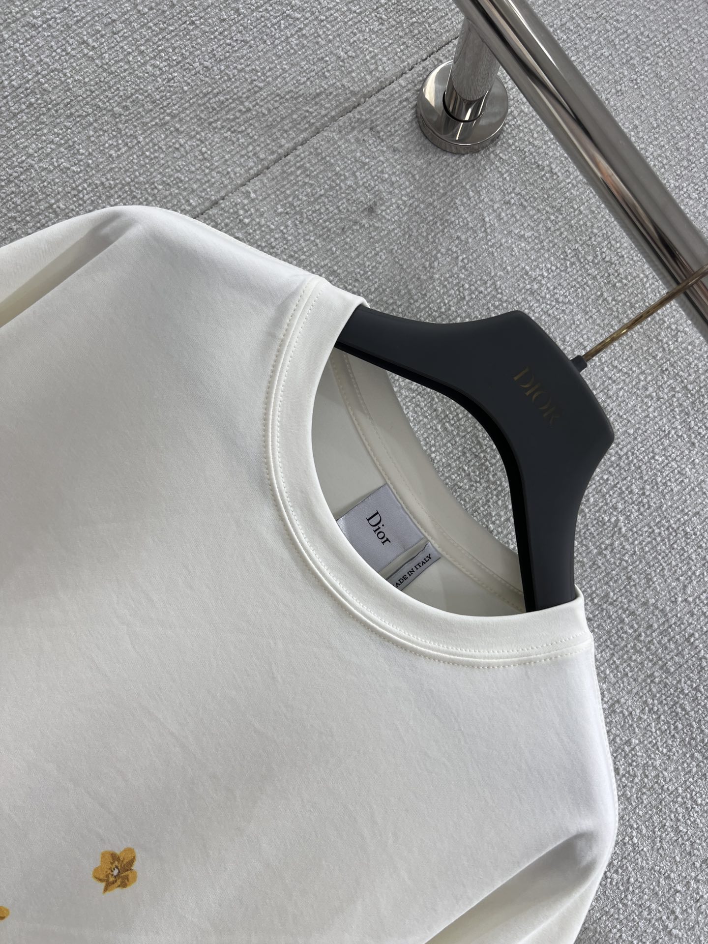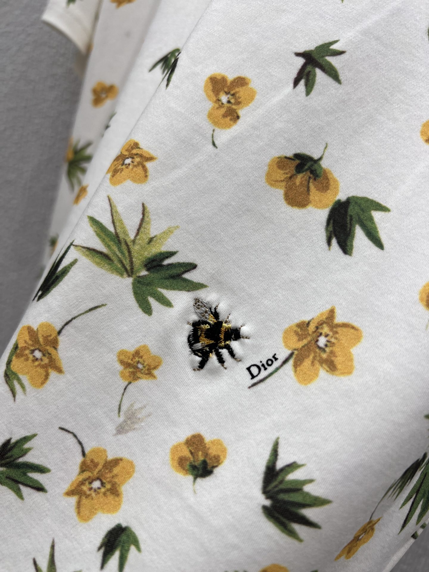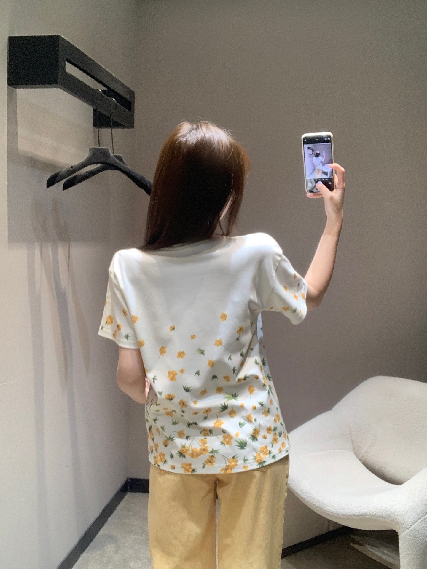 Dio* 26Ss早春新款 碎花圆领短袖T恤丨⚠独家yb开发!顶级高版出品!甄选高支精梳棉面料,触感柔软透气,经典圆领贴合颈部线条,宽松的短袖廓形带来无束缚的穿着体验。错落分布的黄色碎花搭配嫩绿枝叶,从领口延伸至下摆,细腻的印花工艺让图案鲜活立体,后背纯净的白底色形成视觉反差,简约中暗藏设计巧思。现货发售S/M/L