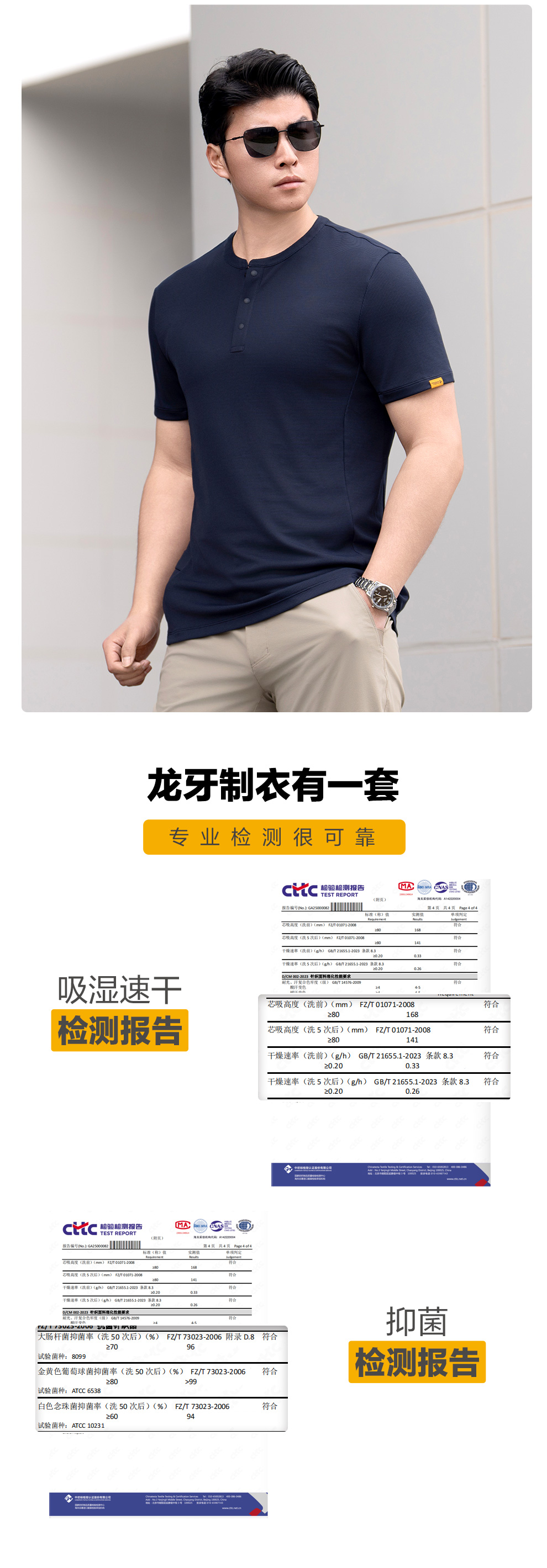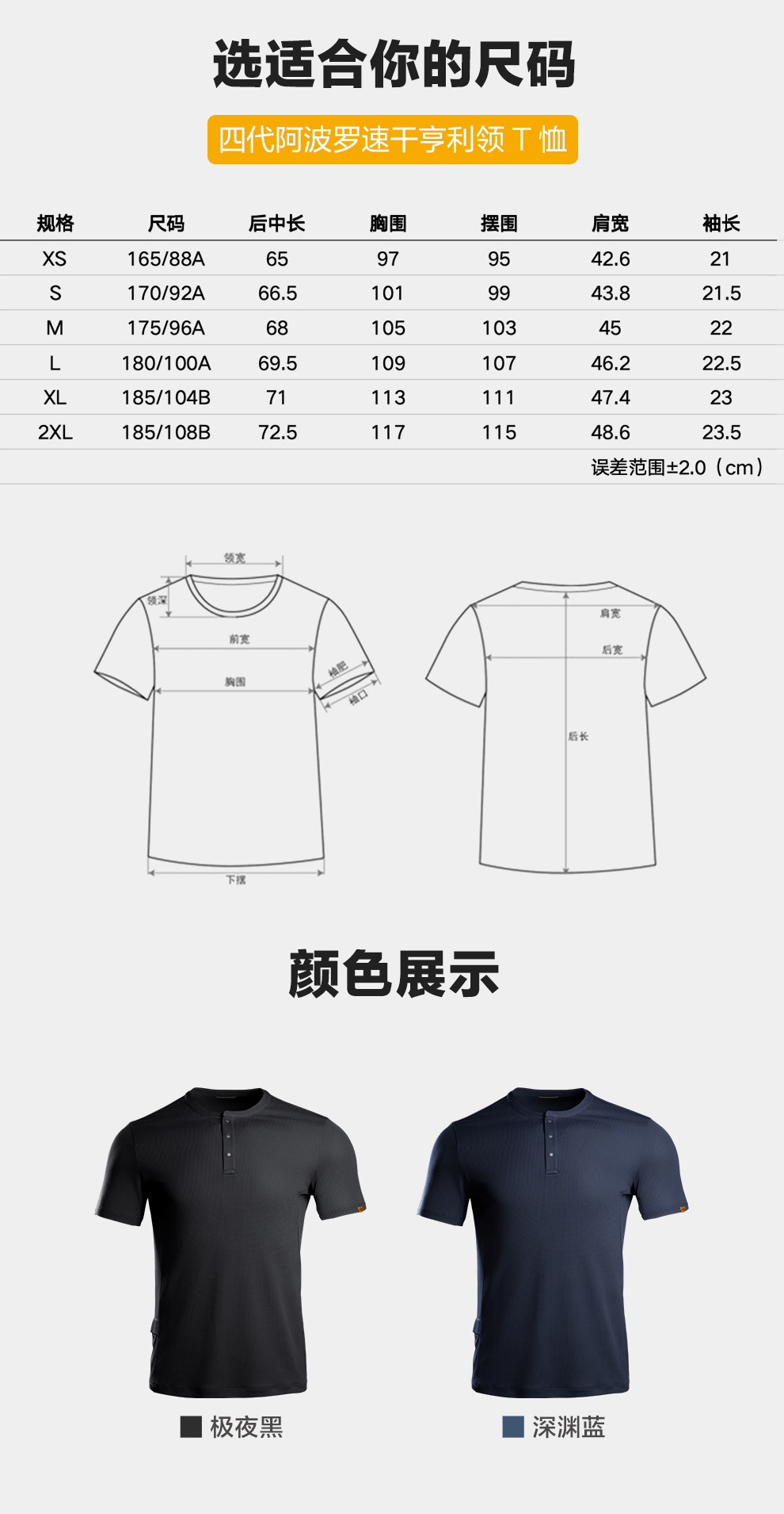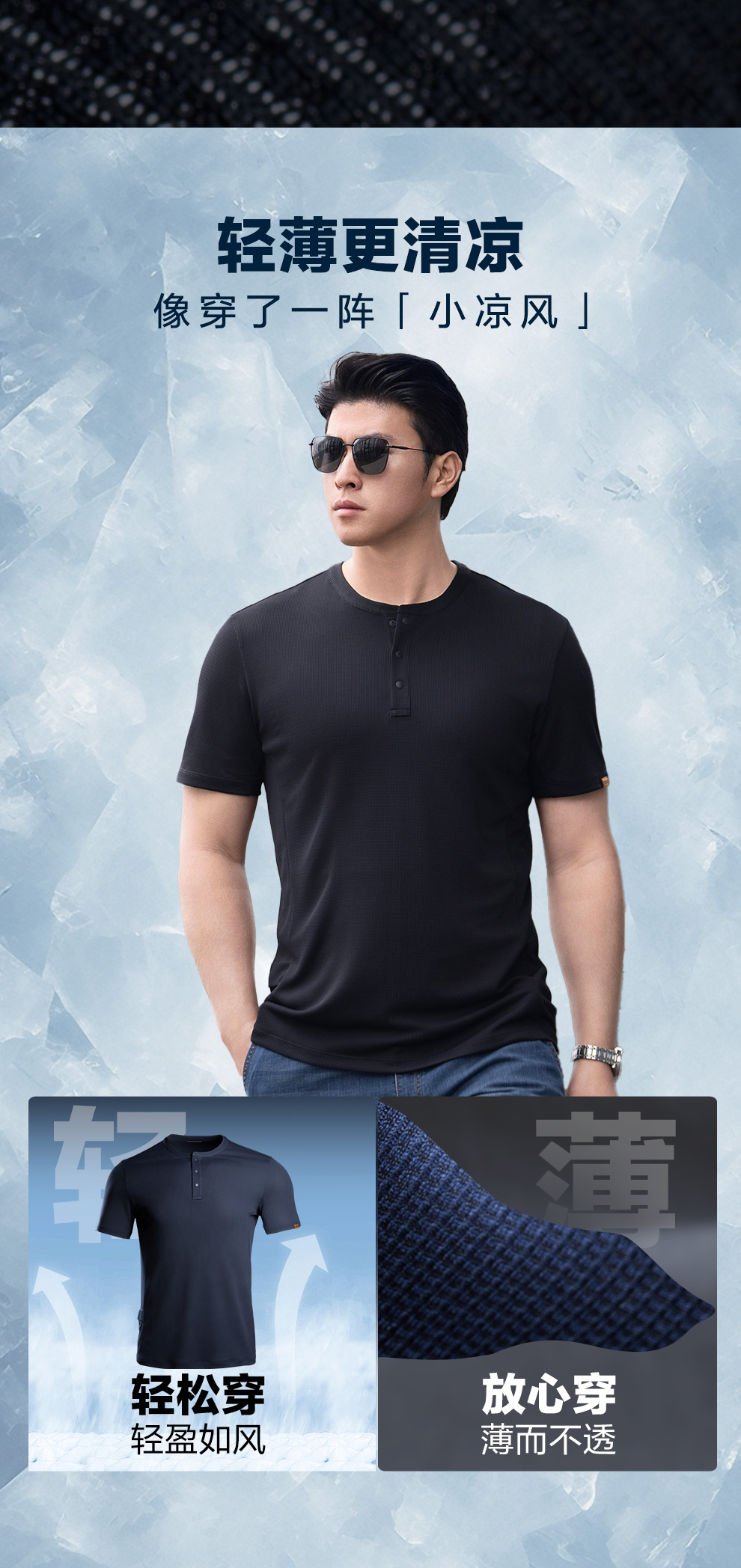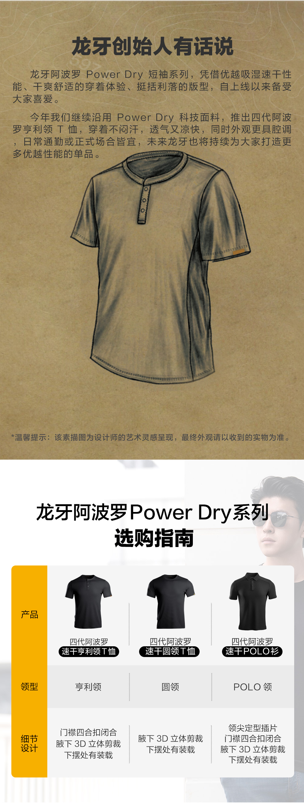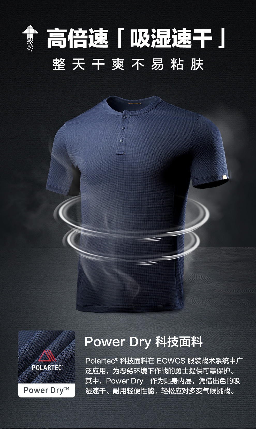 四代龙牙阿波罗POWER DRY速干亨利领短袖T恤