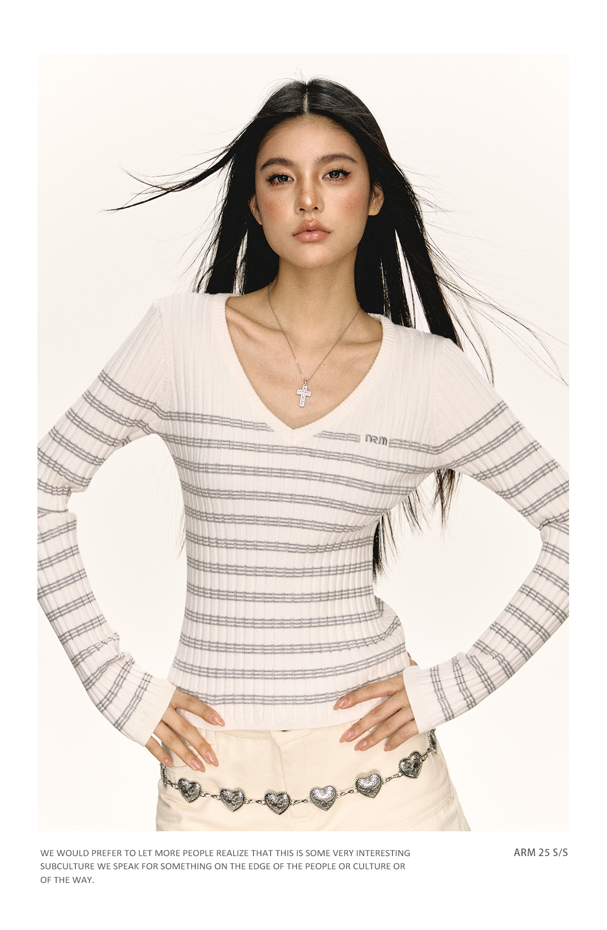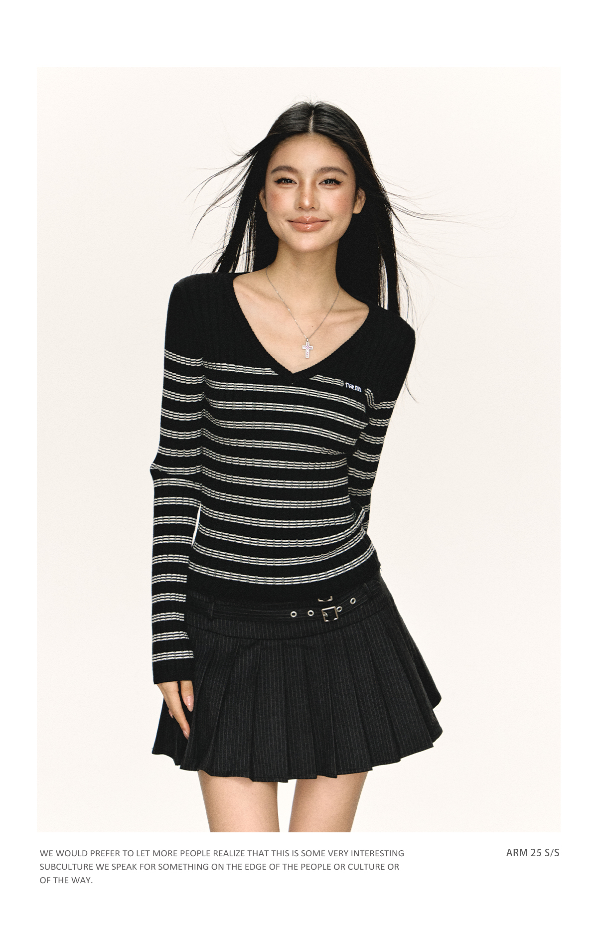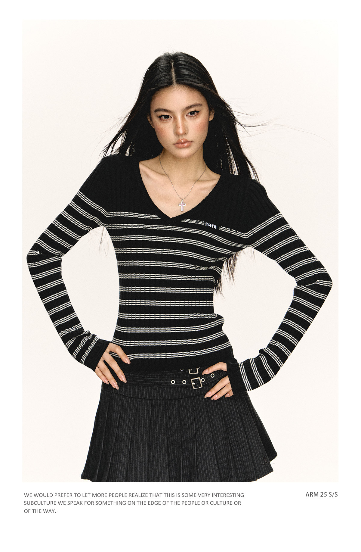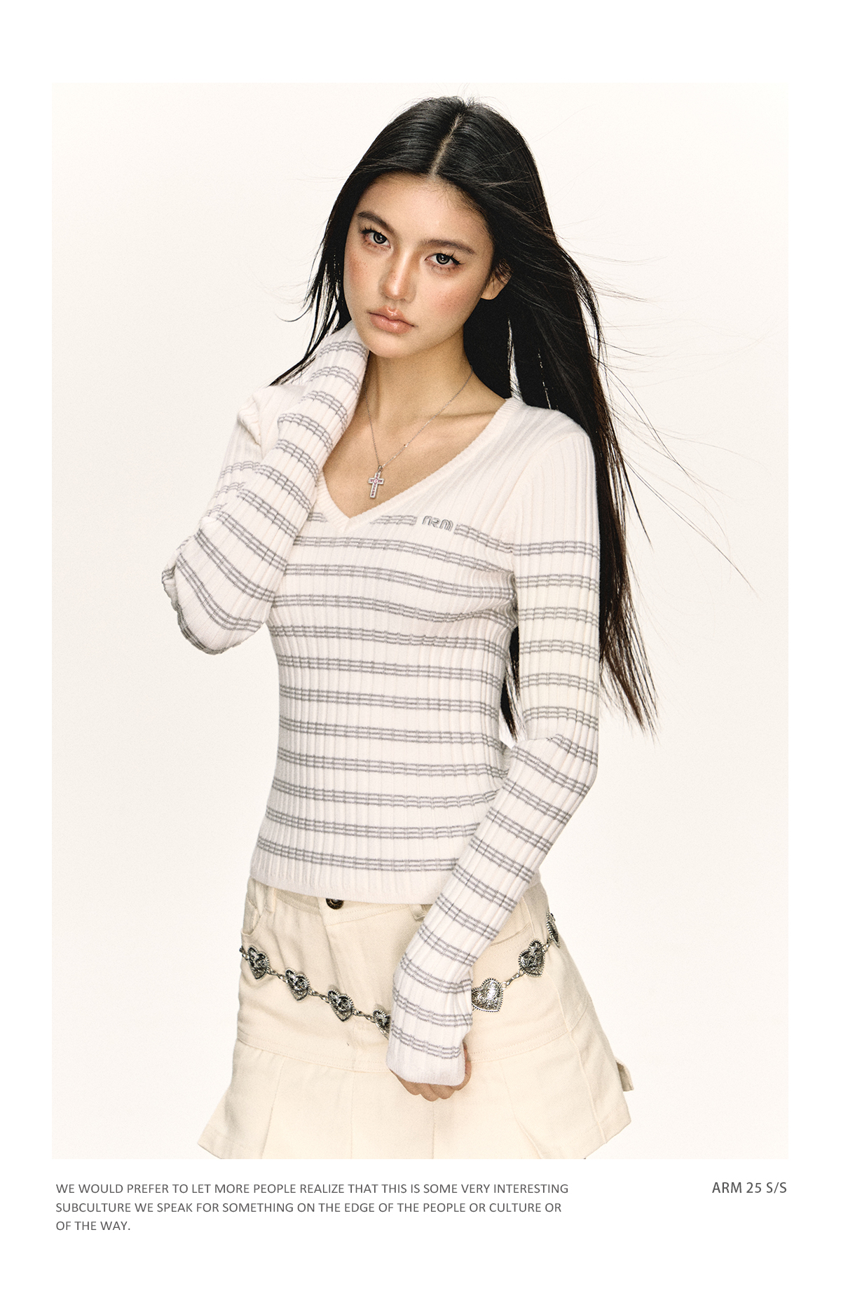 Ariseism 美式复古设计感毛针织衫女秋季新款辣妹修身上衣