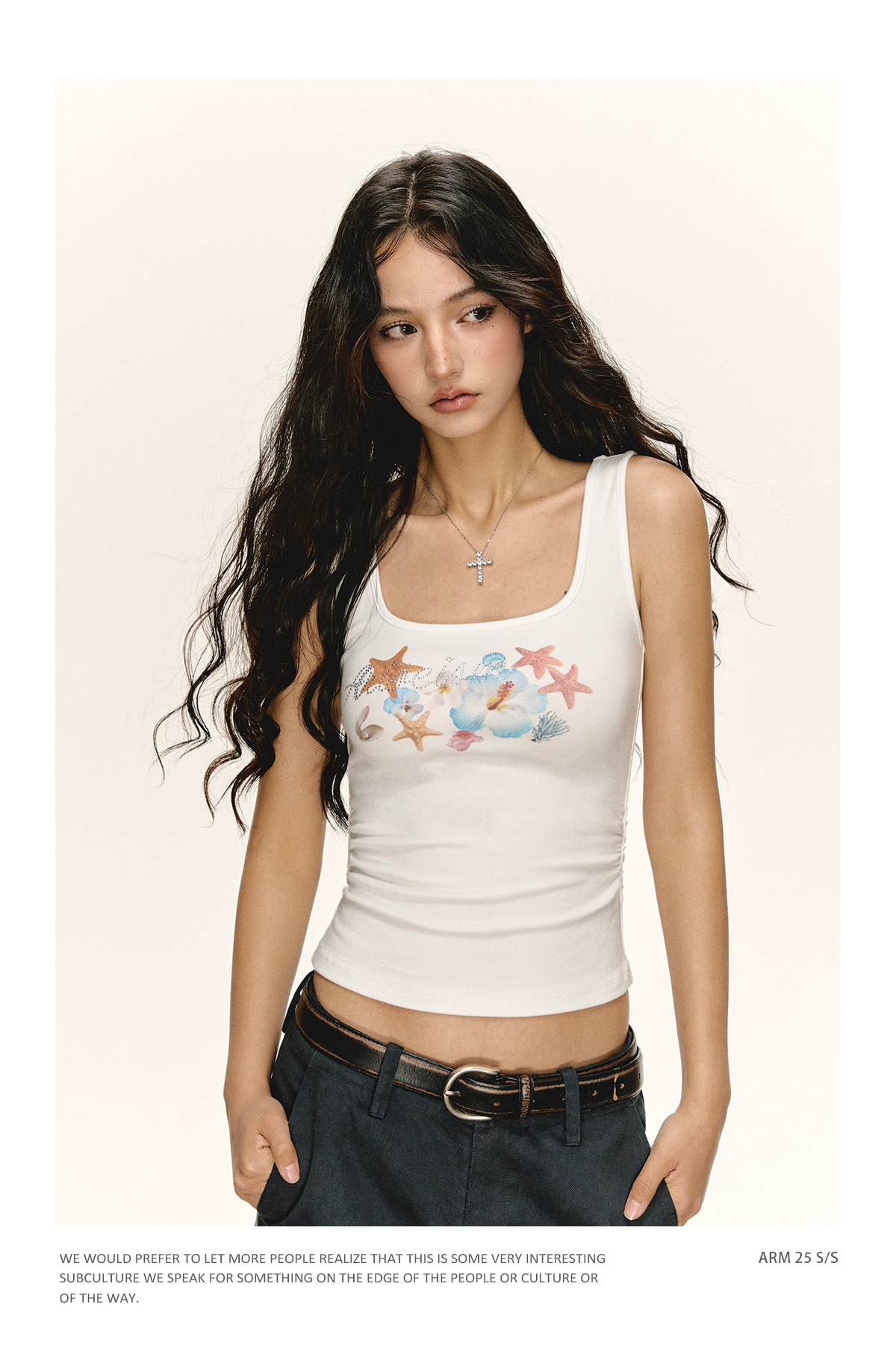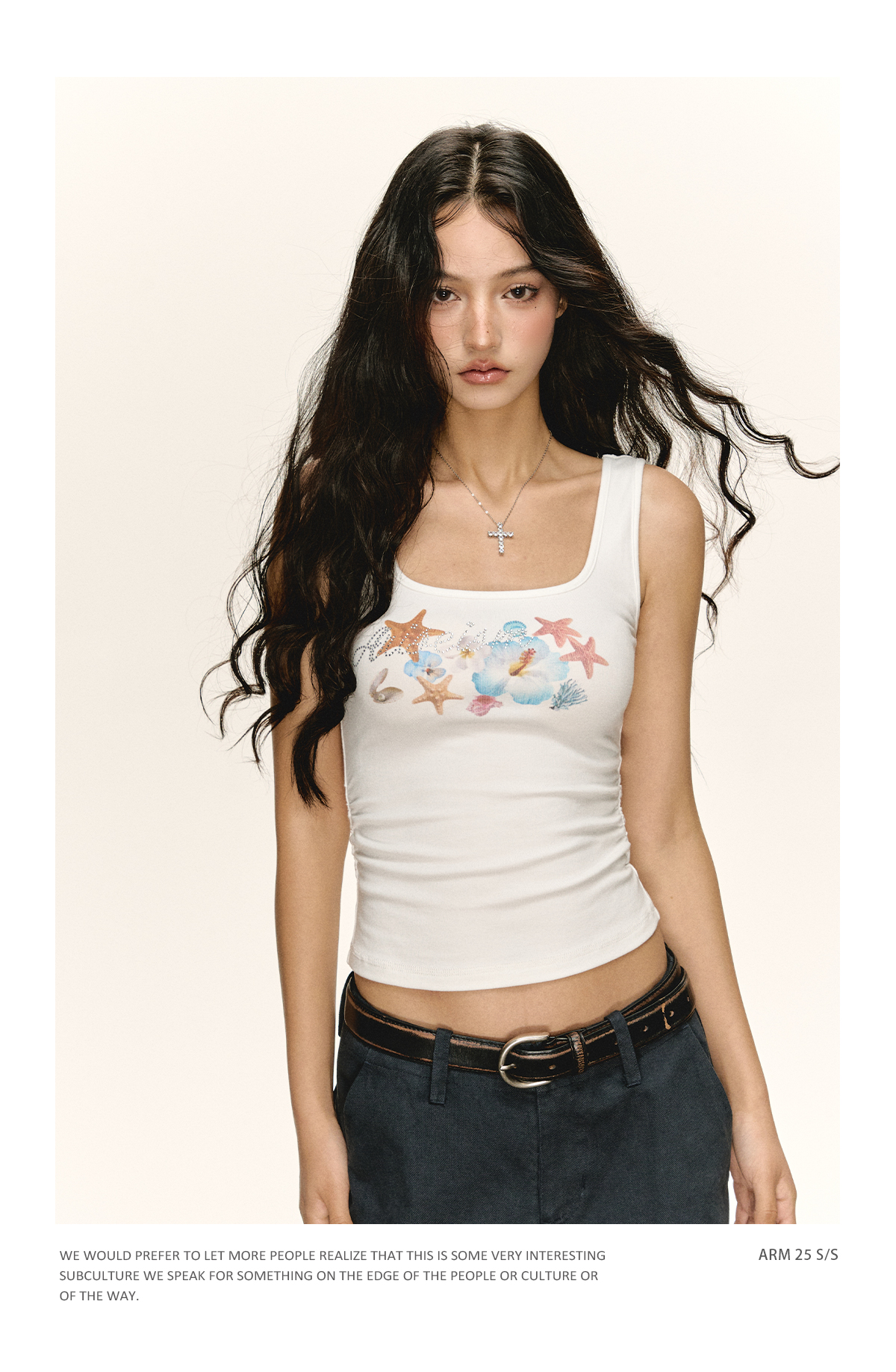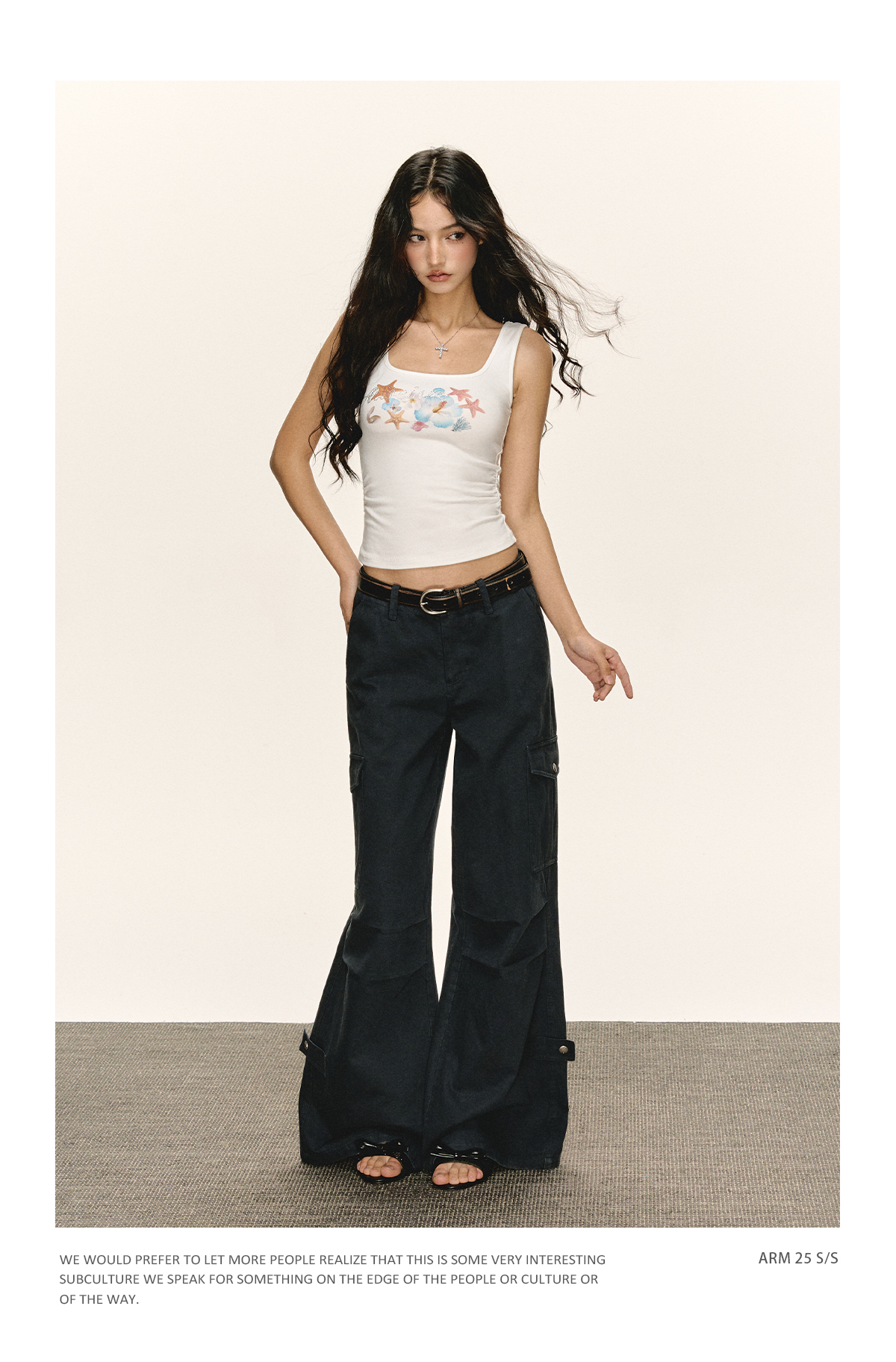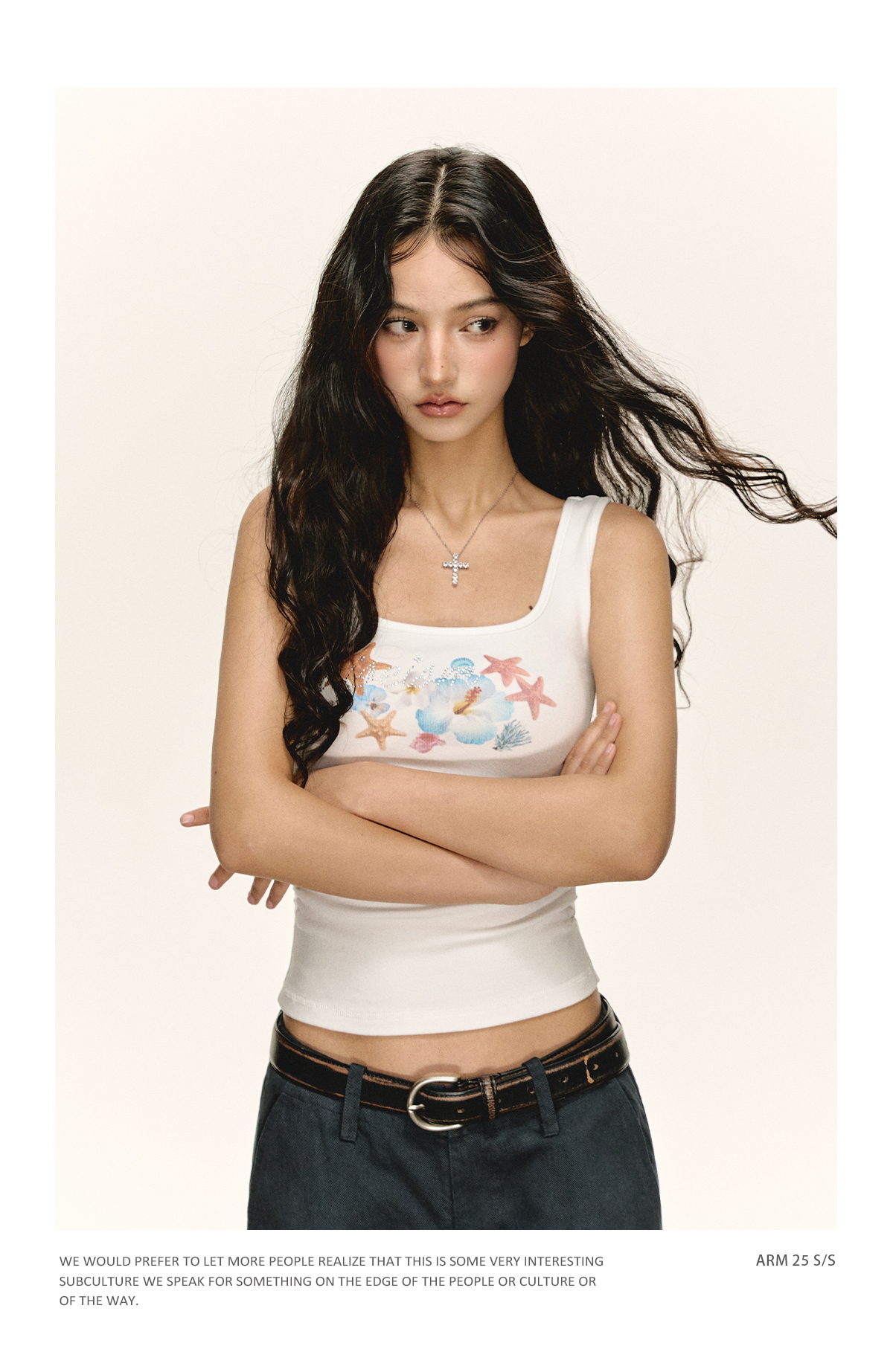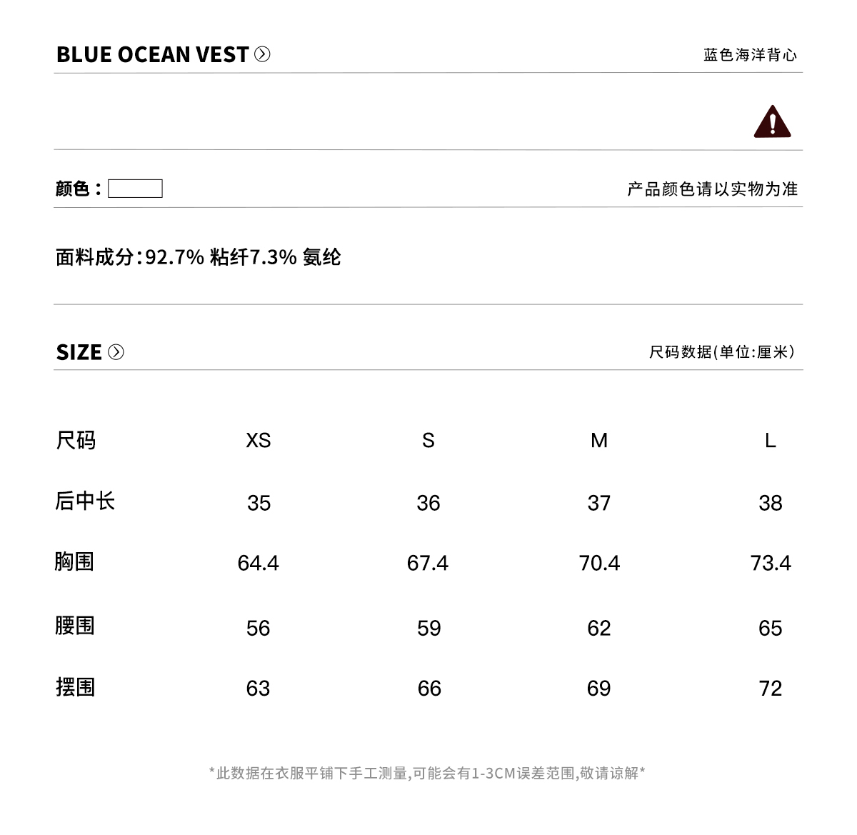 Ariseism 美式复古设计感蓝色海洋背心女夏季新款修身上衣