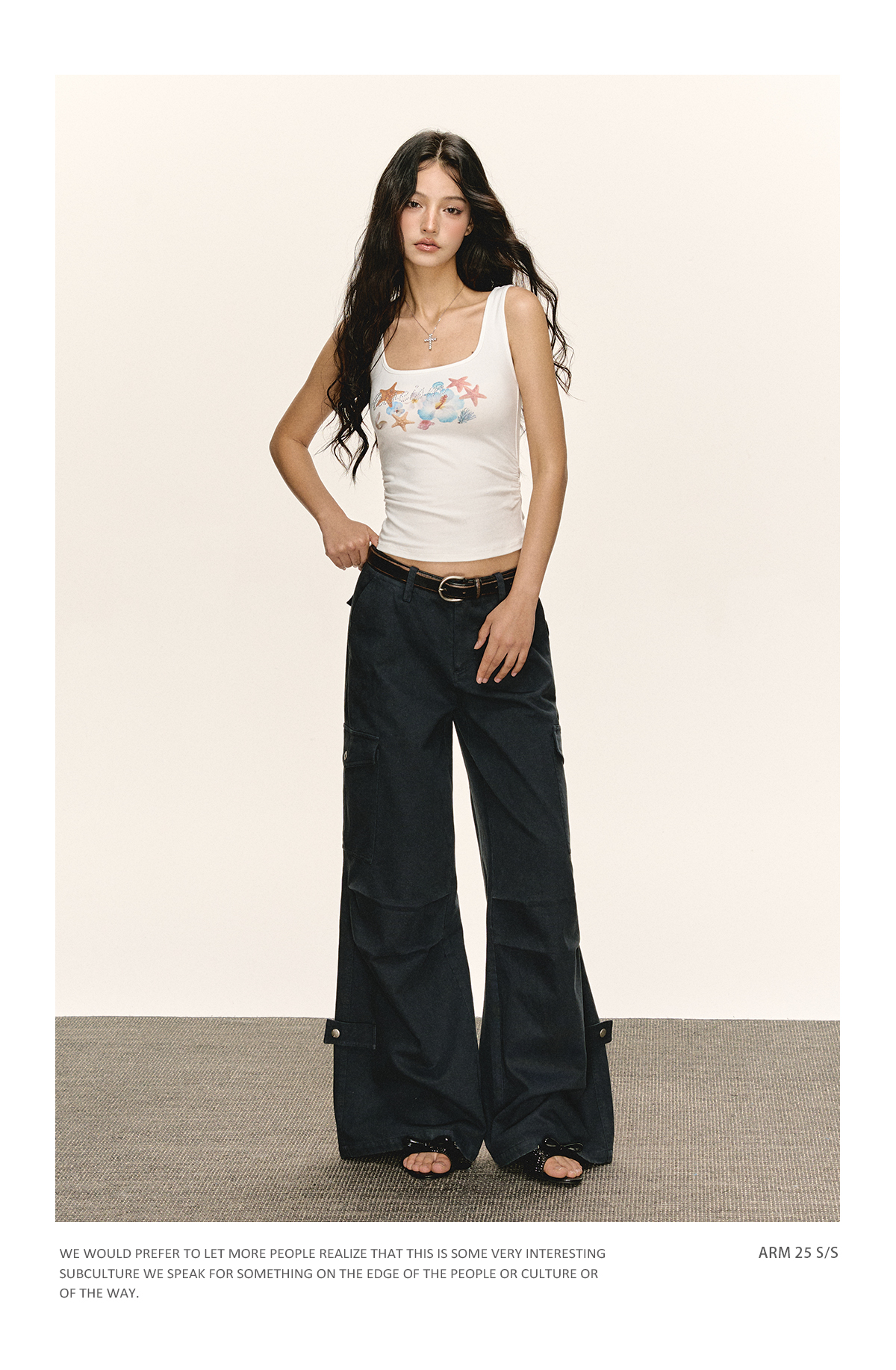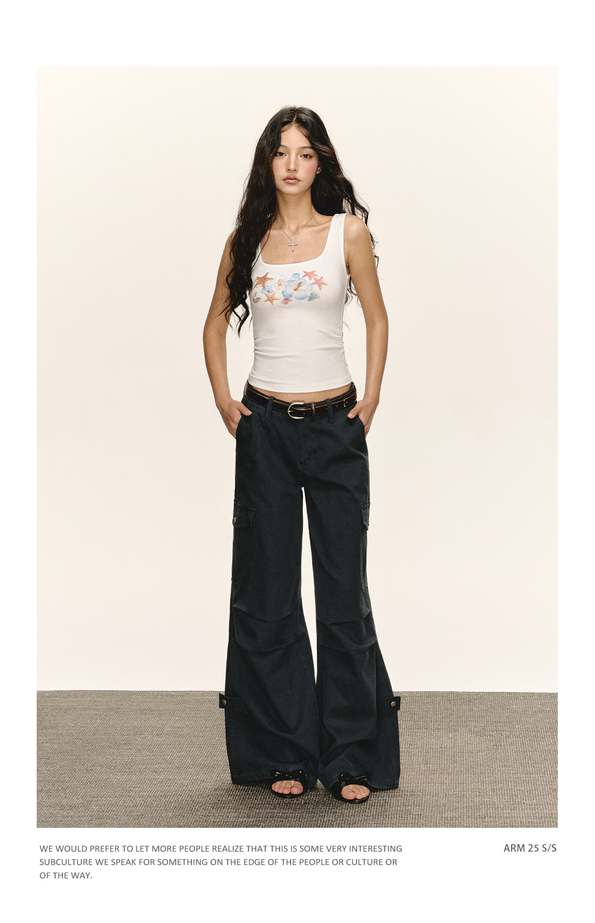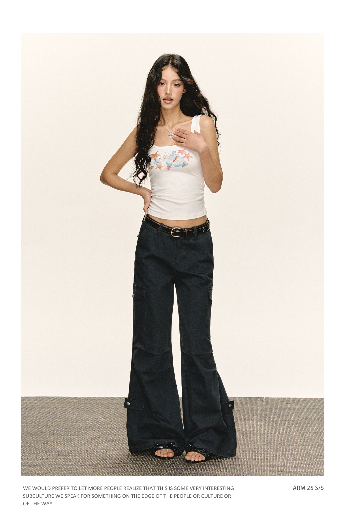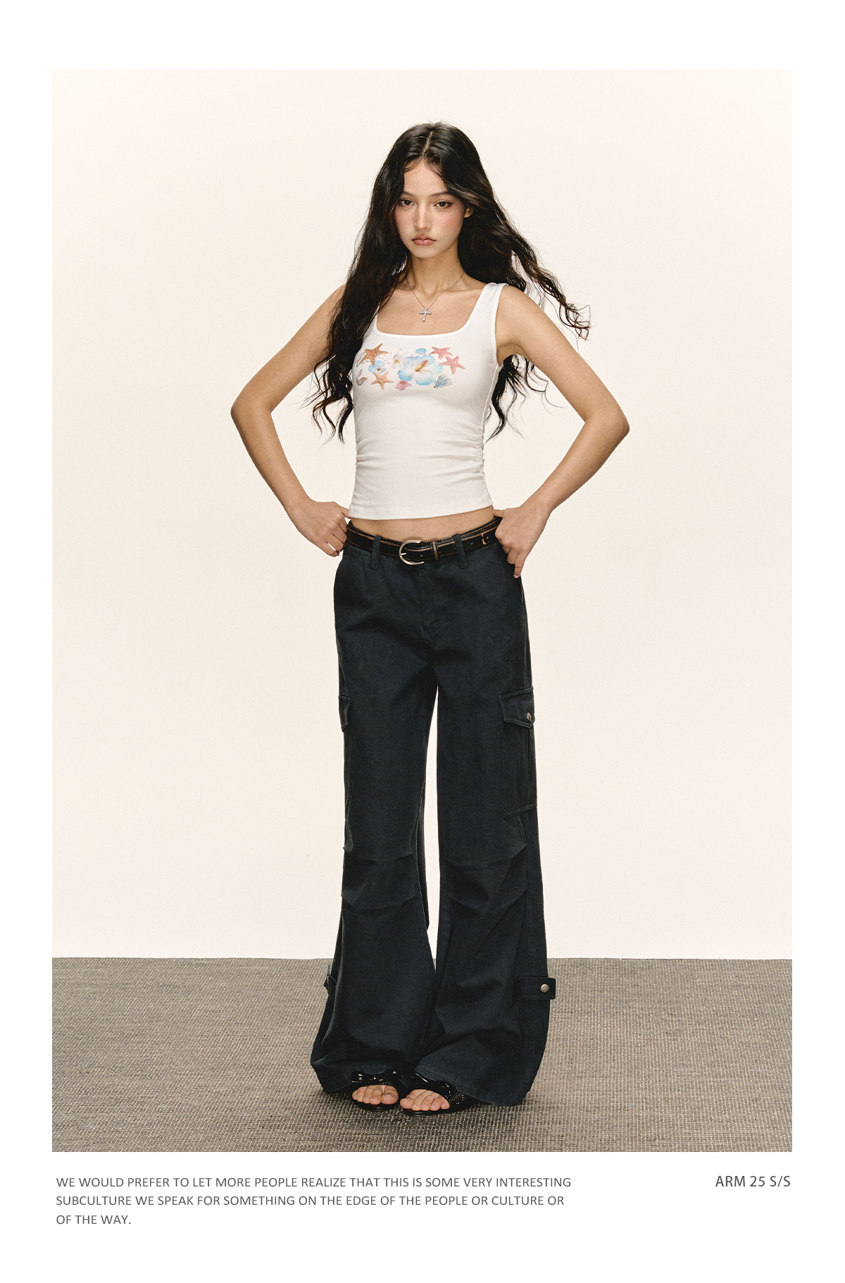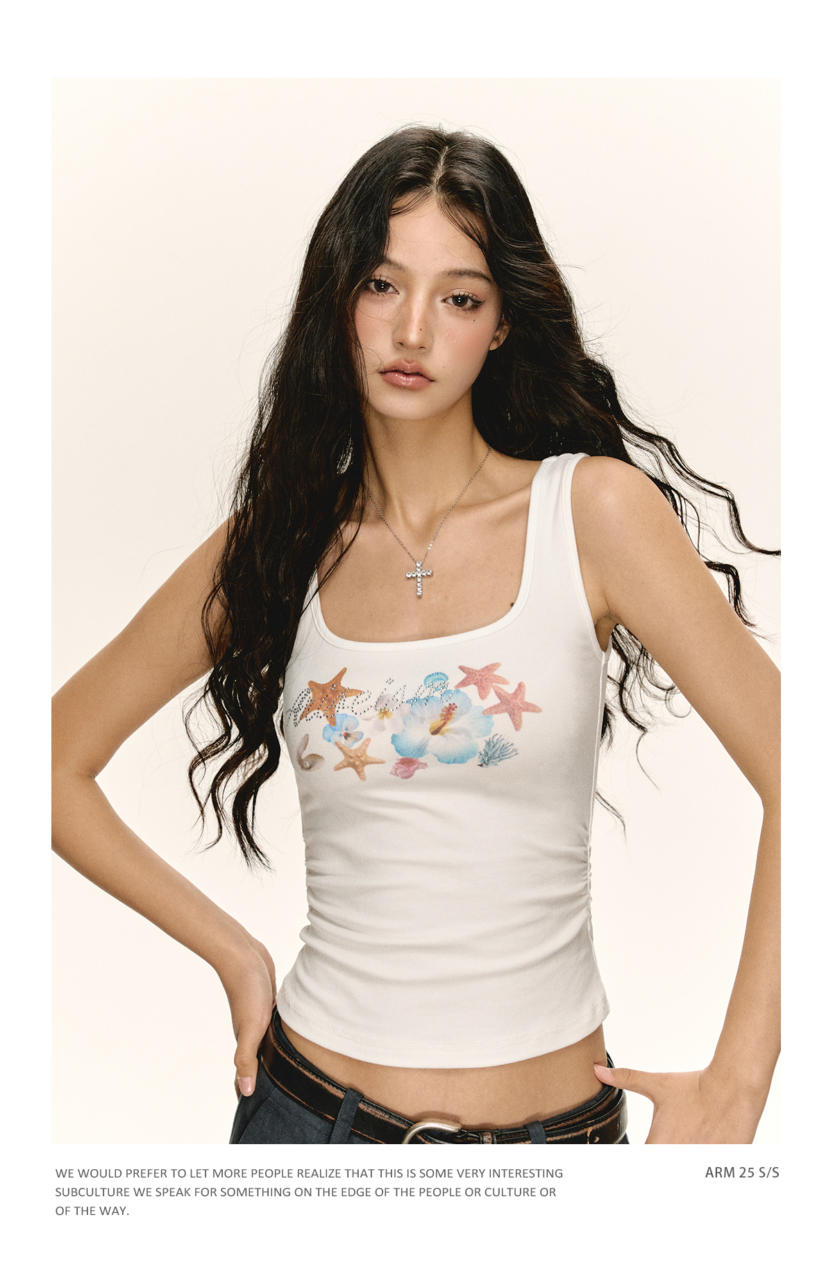 Ariseism 美式复古设计感蓝色海洋背心女夏季新款修身上衣
