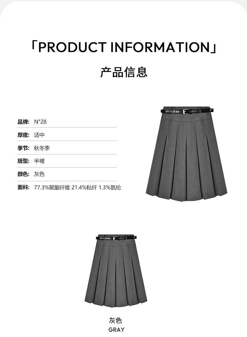 N°28 时尚A字百褶裙百搭腰带款女装半裙89A5A1Q005