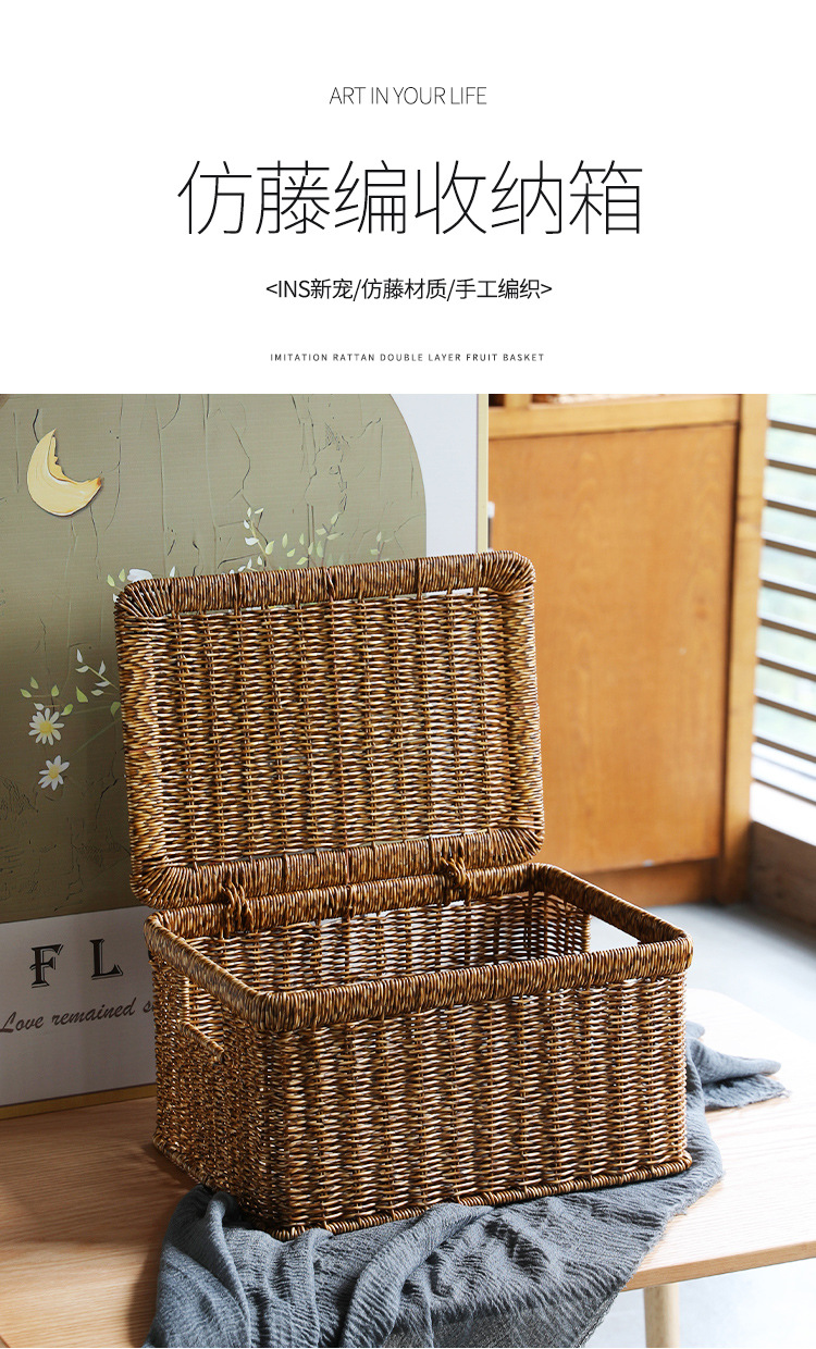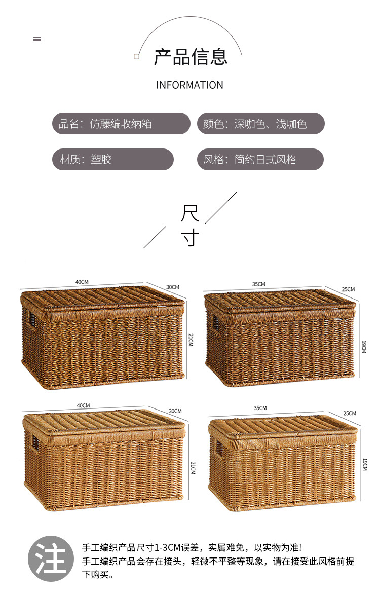 【浅色/深色】娜家仿藤大号翻盖收纳箱